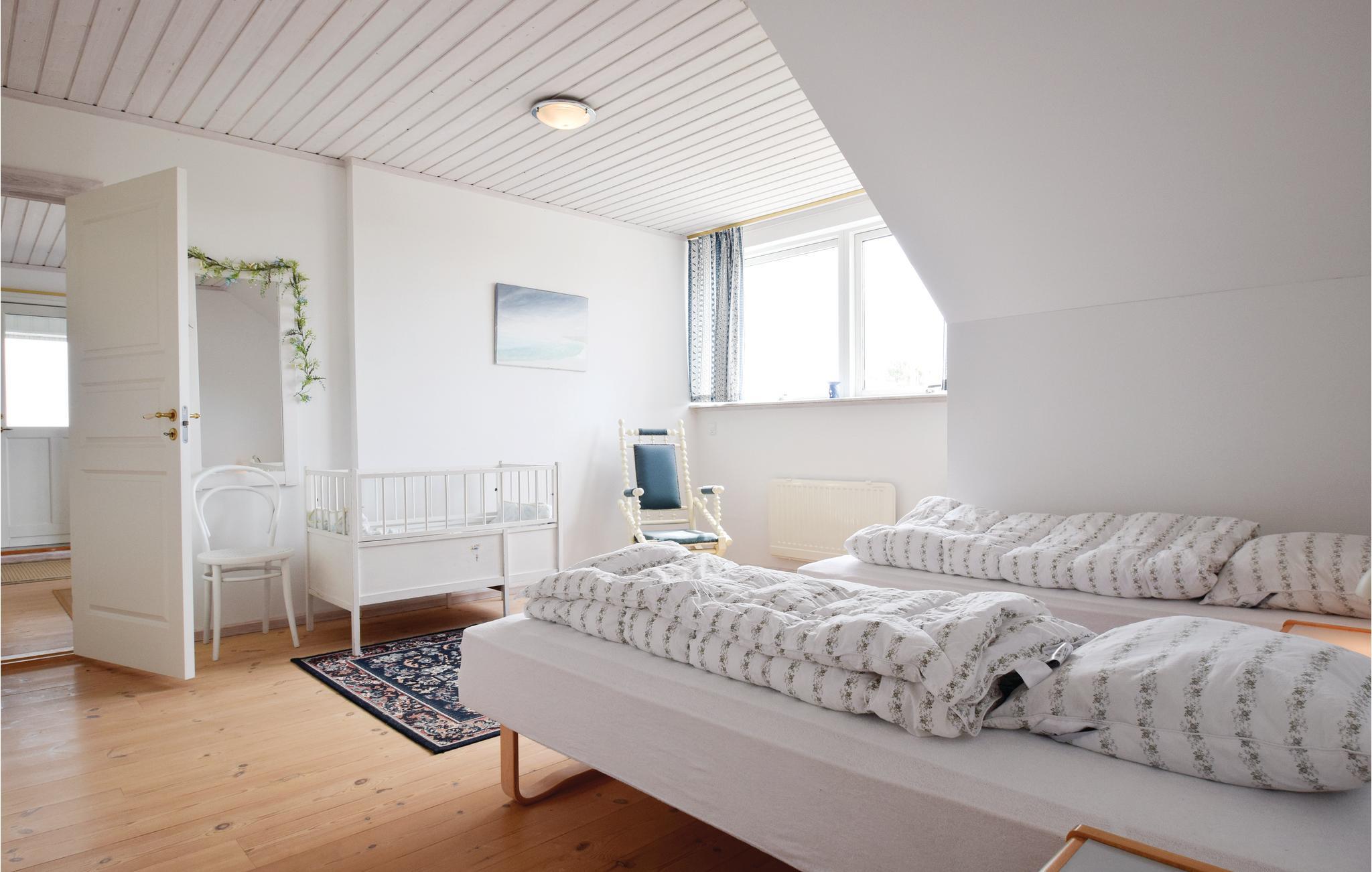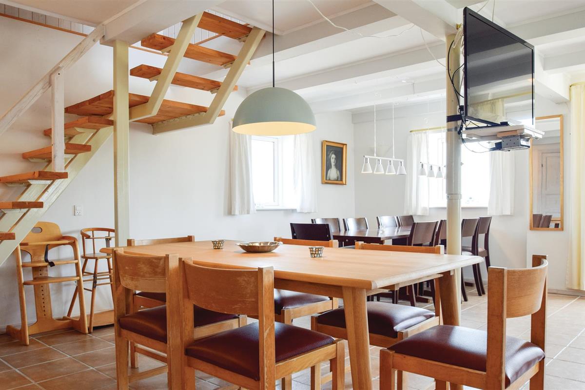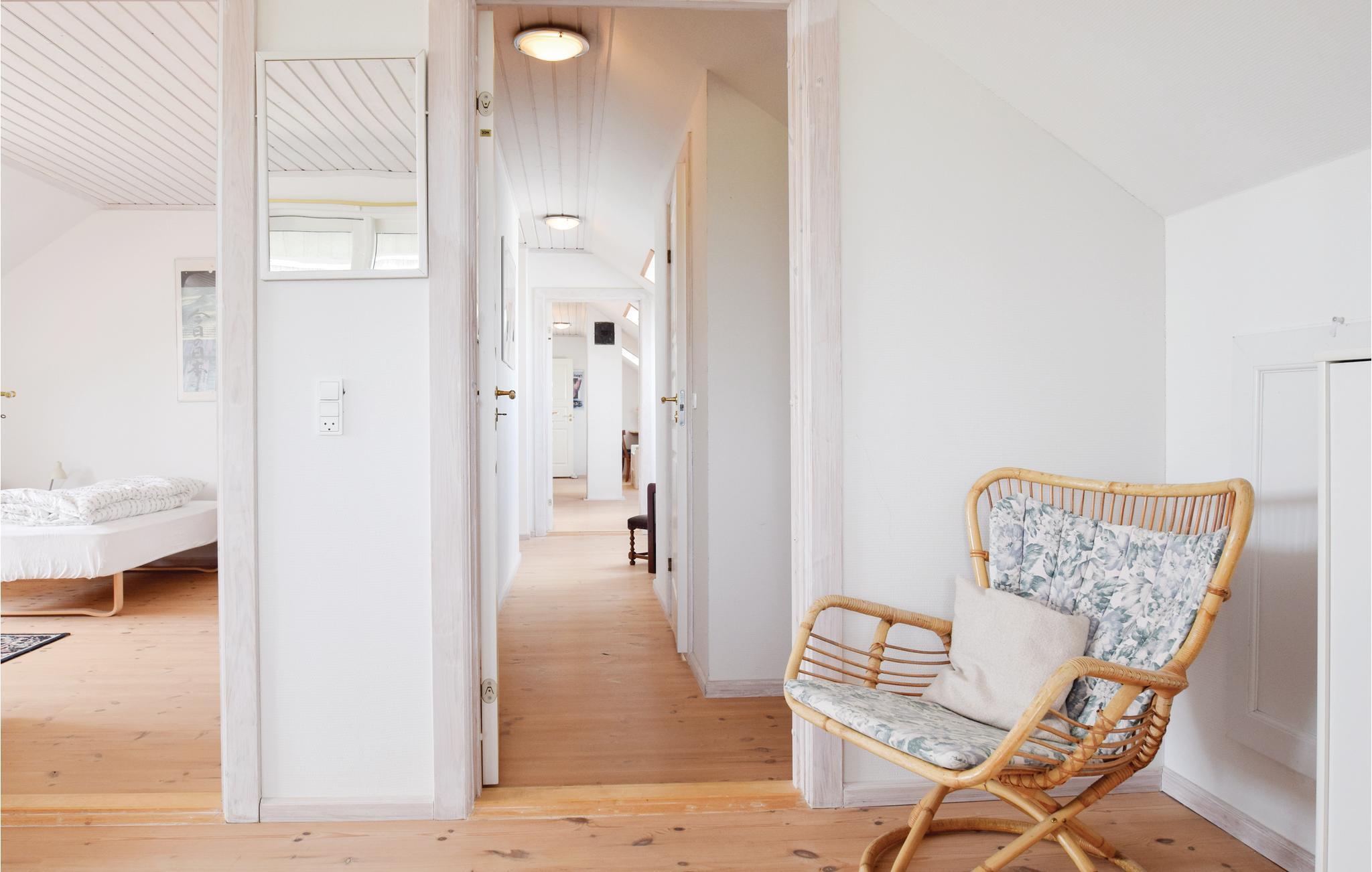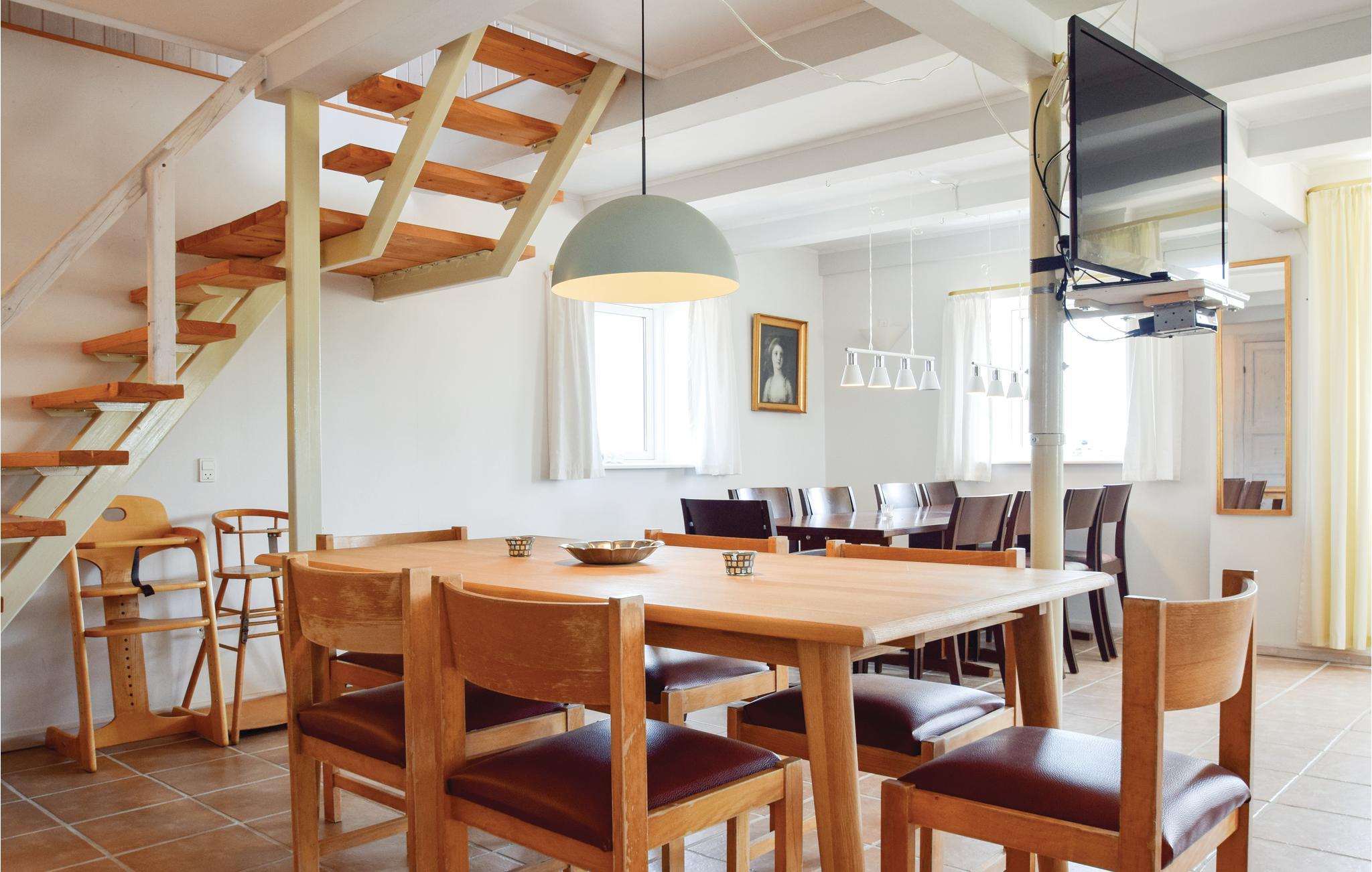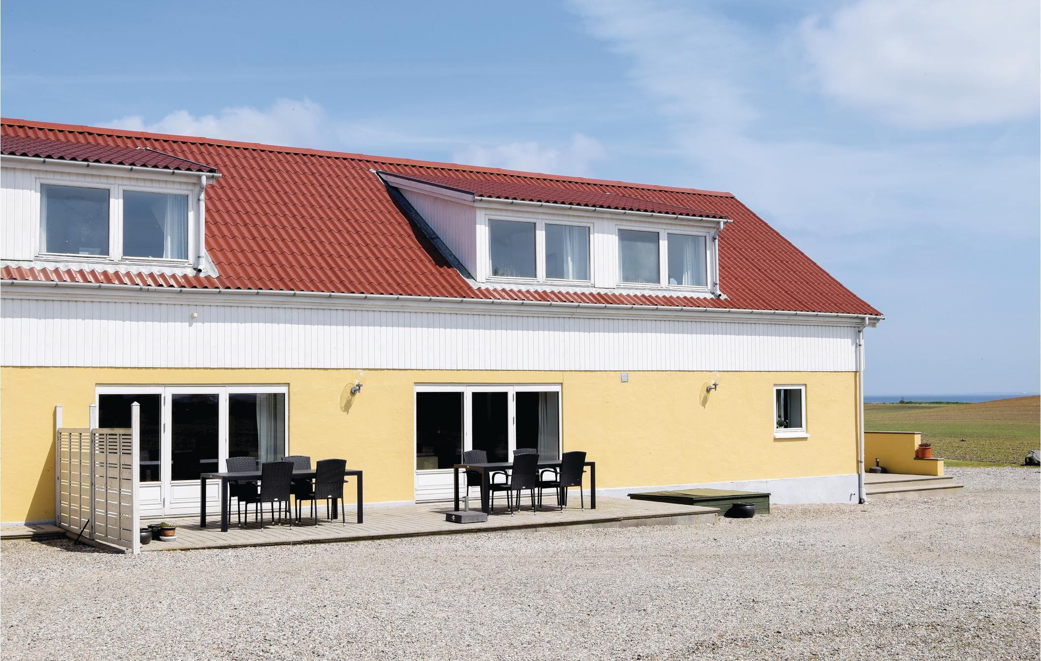 Zeer goed ingerichte, ruime vakantiewoning op 2 niveaus. U bewoont een voormalige boerderij. Geniet van het uitzicht op de Langeland Belt, waar veel scheepvaartverkeer is. Dit uitzicht heeft u vanaf het balkon op de 1e verdieping en de terrassen. U woont op het platteland van Zuid-Langeland, 5 km van Lindelse. Mooie keuken met eethoek en klinkervloer, gezellige woonkamer met veel zitplaatsen en vloerbedekking. Badkamer en gastentoilet hebben tegelvloeren, de slaapkamers hebben houten vloeren met losse vloerbedekking. Voor één slaapkamer is een overdekt balkon. In de tuin kunnen uw kinderen spelen, er is ook een grasveld. De eigenaar woont in de andere vleugel van het huis.