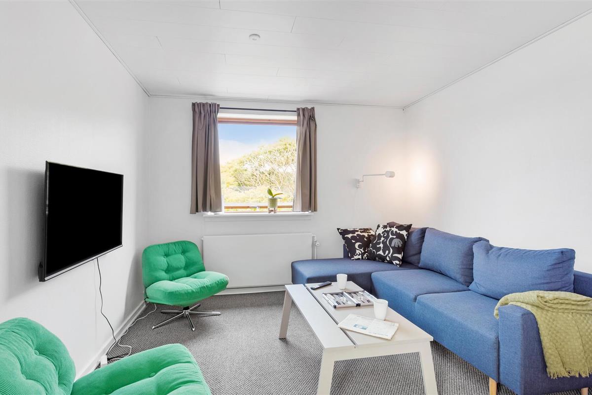 Verheug je op je vakantiehuis, dat niet alleen indruk maakt met zijn idyllische ligging, maar ook met het uitzicht op zee vanaf de eerste verdieping. Dit vakantiehuis biedt je de ideale combinatie van landelijke rust en nabijheid van de natuur, terwijl de zee altijd binnen handbereik is. Het huis, omgeven door groene velden, maakt indruk met zijn praktische inrichting en gezellige decor. De woonkamer is licht en vriendelijk, met comfortabele stoelen die het hele gezin uitnodigen om te ontspannen. In de praktische keuken kun je samen de dagelijkse maaltijden bereiden.
