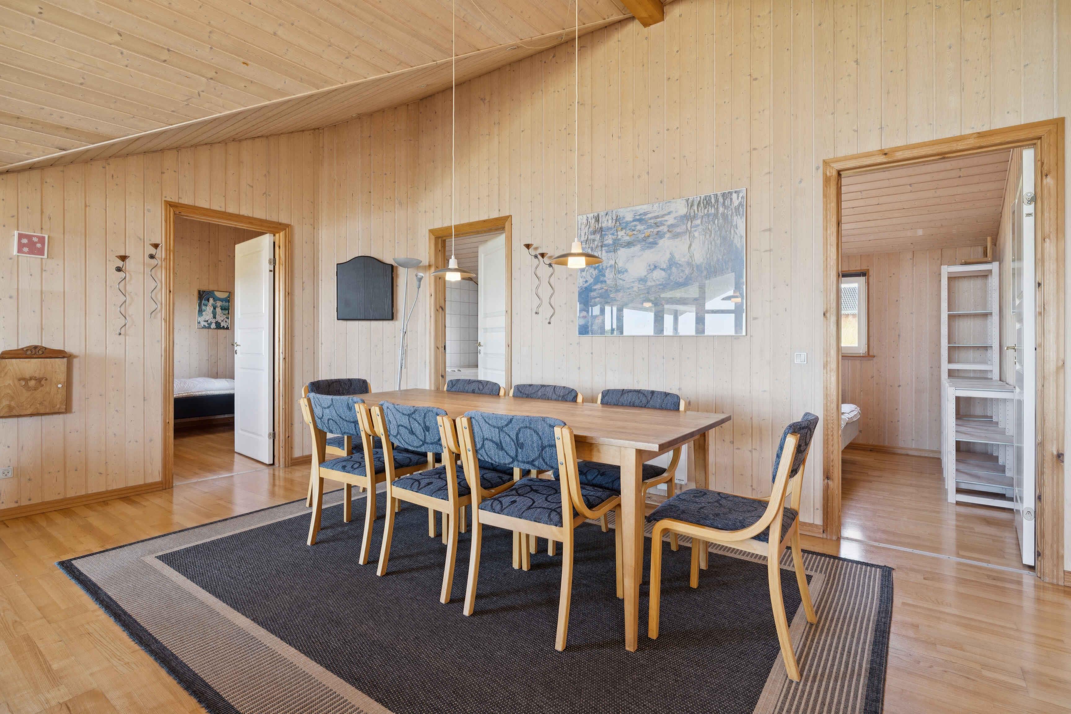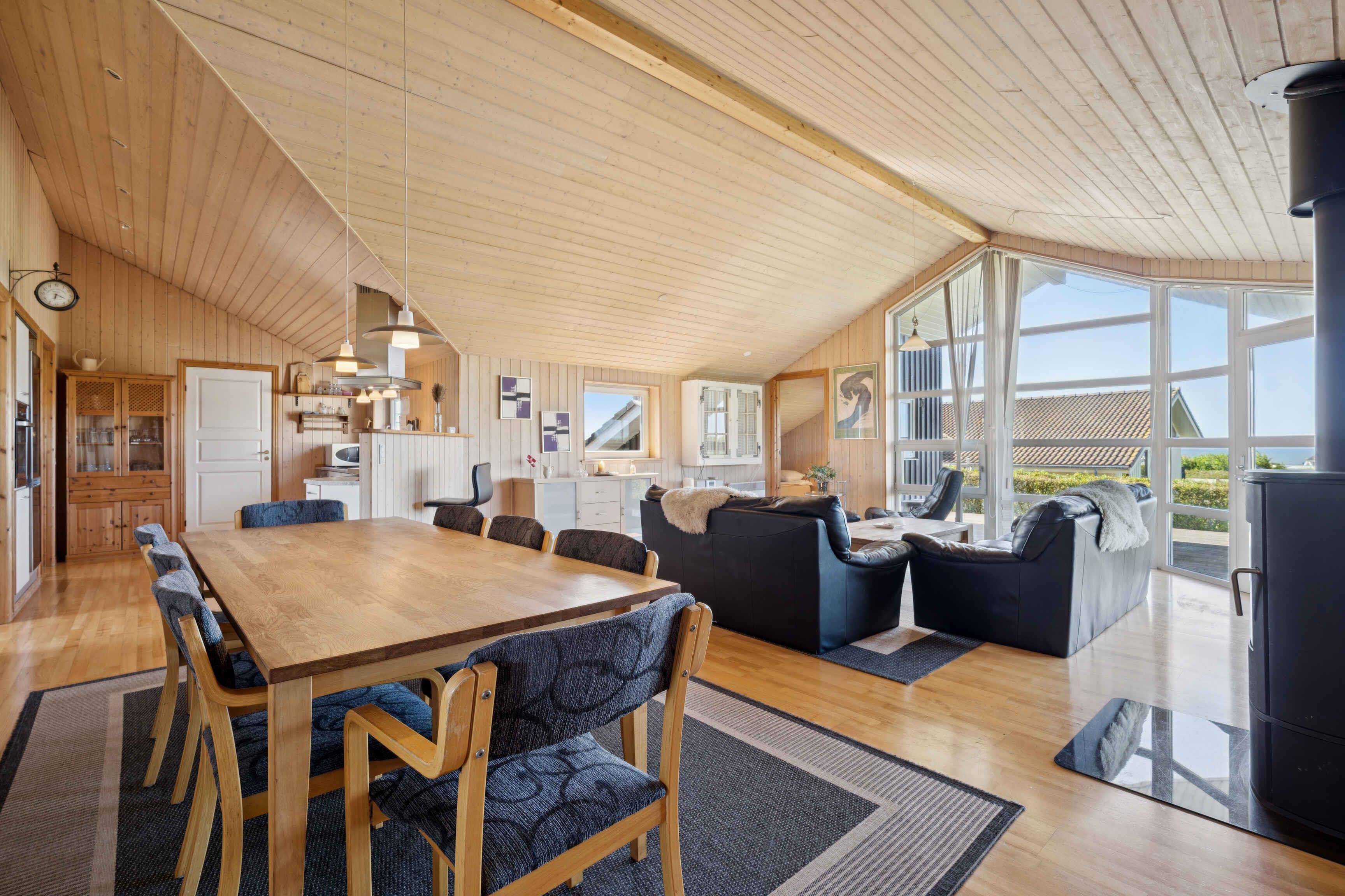 Deze ruime vakantiewoning van 134 m² heeft 4 slaapkamers en in totaal 8 slaapplaatsen. Geschikt voor zowel grote als kleine gezelschappen die samen tijd willen doorbrengen, ongeacht het seizoen. Op slechts 400 meter ligt de Limfjord, waar het strand van Ejsingholm ondiep water en rustige omstandigheden voor kinderen biedt. Het is ook een bekende plek voor kitesurfers en paraglidervliegers, met volop ruimte voor ontspanning en buitenactiviteiten. In de omgeving zijn er goede vismogelijkheden en op korte rijafstand ligt de Handbjerg Marina. Hier kunt u het havenleven beleven, langs de kade wandelen en genieten van een maaltijd met uitzicht op de fjord. Voor wie meer golven zoekt, is de Noordzee bereikbaar voor een dagtocht. Wandel- en fietsroutes door het open landschap geven een goed beeld van de afwisselende natuur. Naast het huis ligt een camping waar gasten gratis gebruik kunnen maken van de activiteiten. Dit biedt extra mogelijkheden voor plezier en gezamenlijke ervaringen dicht bij huis. Binnen vindt u een open woonkamer waar keuken, eetgedeelte en zitruimte in elkaar overgaan. Grote ramen laten veel licht binnen en verbinden de ruimte met de tuin, waar het terras uitnodigt tot maaltijden en gezellige momenten in de buitenlucht.