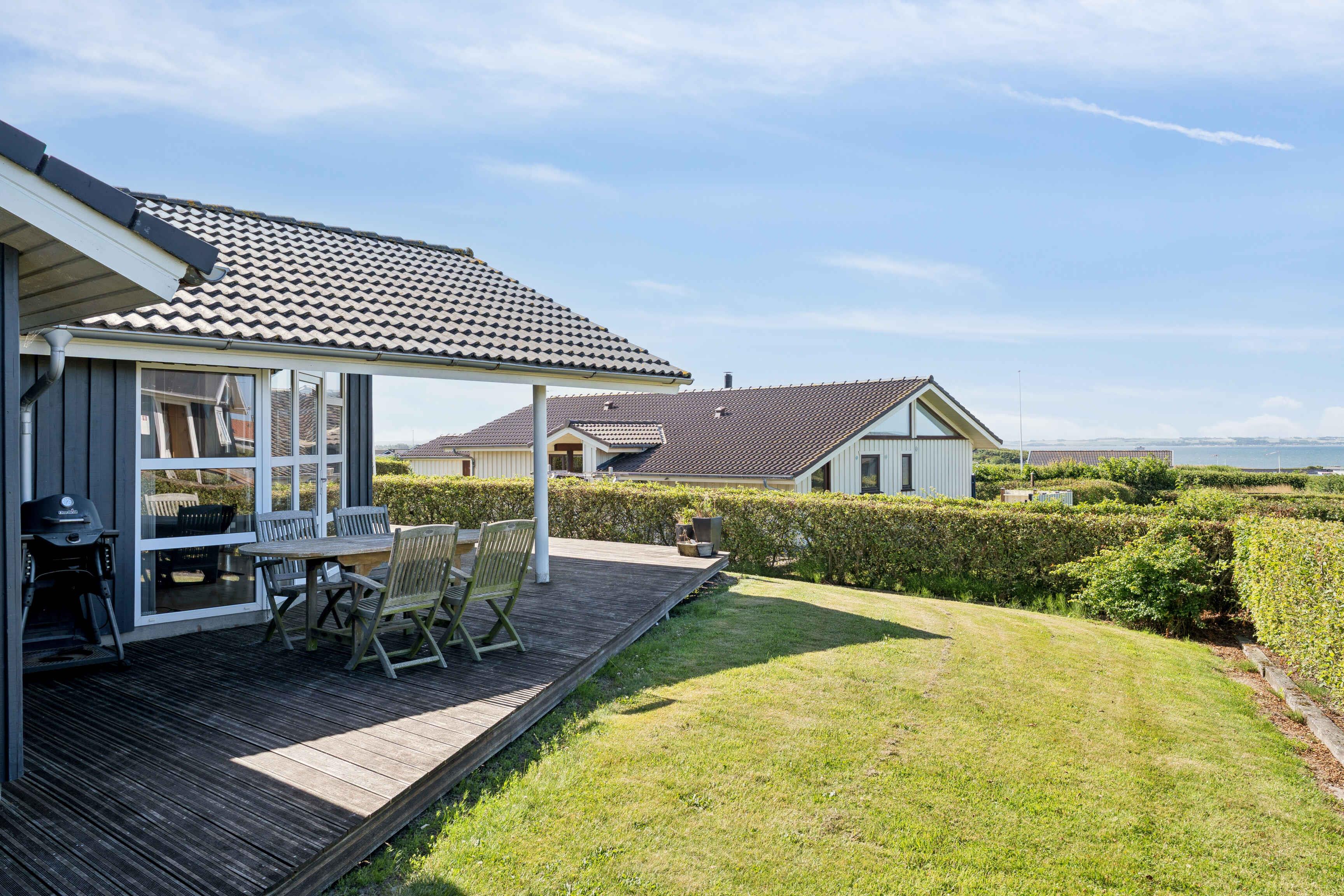 Ruim vakantiehuis van 134 m² met 4 slaapkamers en 8 bedden. 400 m van de Limfjord en kindvriendelijk strand. Dicht bij Handbjerg Marina, vissen, fietsroutes en camping met gratis activiteiten.