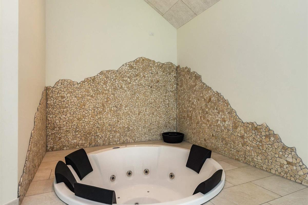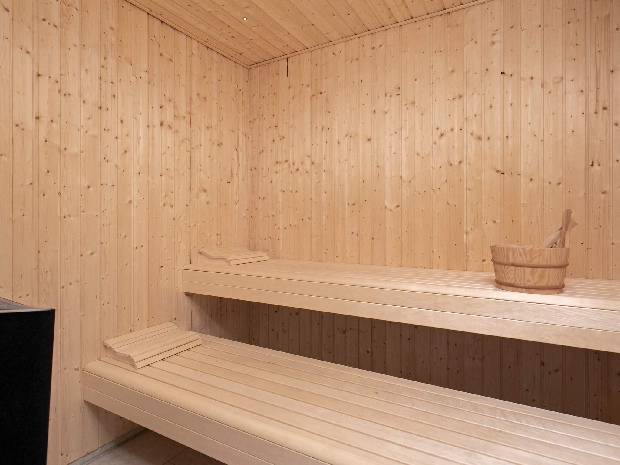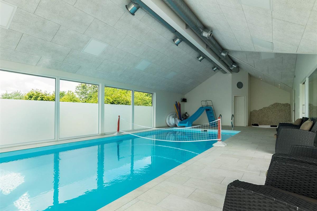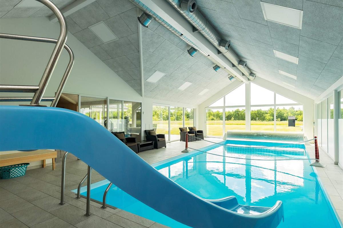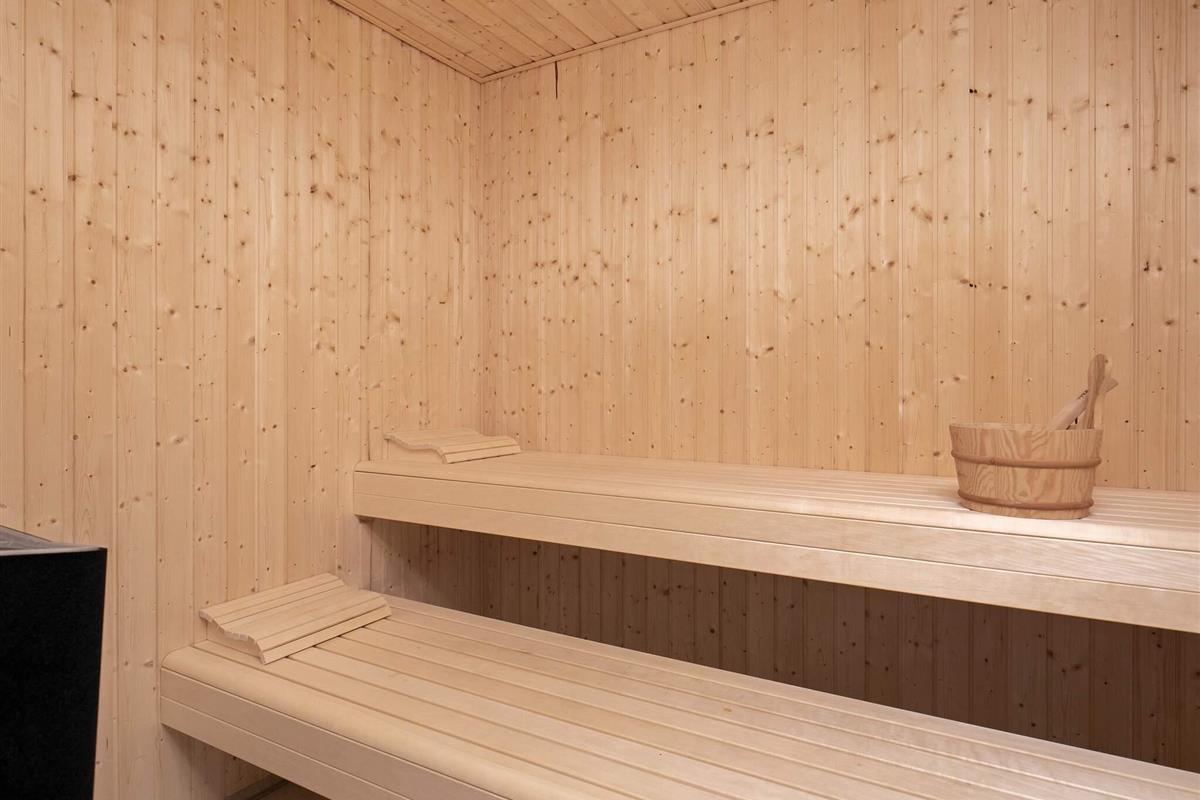 Im geräumigen Wellnessbereich des Ferienhauses findet man u.a. den ungewöhnlich großen Salzwasserpool mit 40 m2 Größe, der nur einen minimalen Einsatz von Chemikalien erfordert und Chlorgeruch vermeidet. Die Maße lauten 10 x 4 x 1,70 m. Es gibt auch eine Wasserrutsche und verstellbare Netze über dem Schwimmbecken für Ballspiele. Außerdem gibt es diverse Spielgeräte für die Kleinen, Schwimmgürtel/Flügel müssen selbst mitgebracht werden. Der Poolbereich hat auch bequeme Möbel, einen luxuriösen 5-Personen-Whirlpool sowie eine 10-Personen-Sauna. Außerdem schönes helles Badezimmer mit Dusche, WC und Fußbodenheizung.