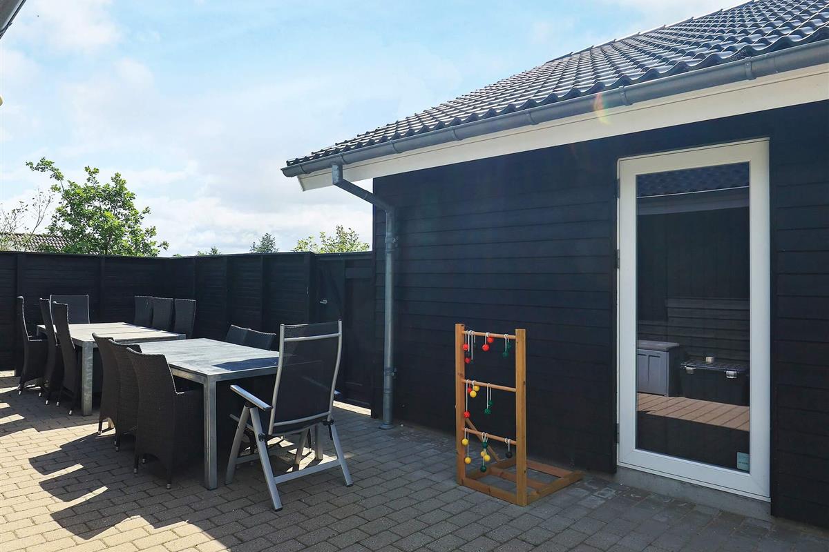 Das Ferienhaus hat mehrere offene Terrassen mit guten Gartenmöbeln, Sonnenliegen und sowohl einen Gasgrill als auch einen Kugelgrill für Sommerabende. Vom Wohnzimmer aus hat man direkten Zugang zu einer der großen Terrassen des Hauses.