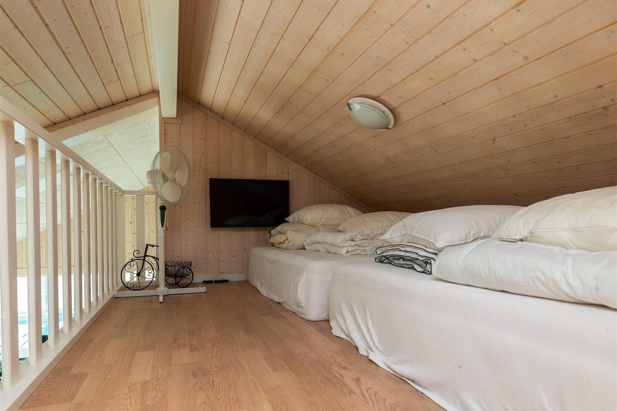 Umfassend ausgestattet und vom Architektenhand individuell gestaltetes Ferienhaus mit 40 m2 großem Swimmingpool sowie luxuriösem Whirlpool für max. 5 und geräumiger Sauna für max. 10 Personen zur Verfügung. Sie wohnen hier zudem nur etwa 600 m vom Fjordufer mit kinderfreundlichem Strand.
