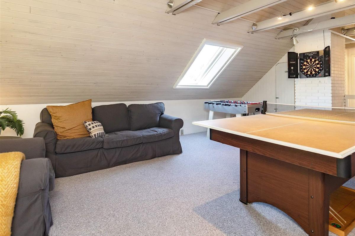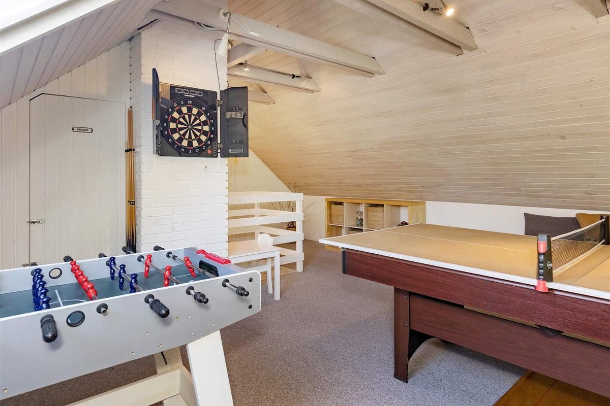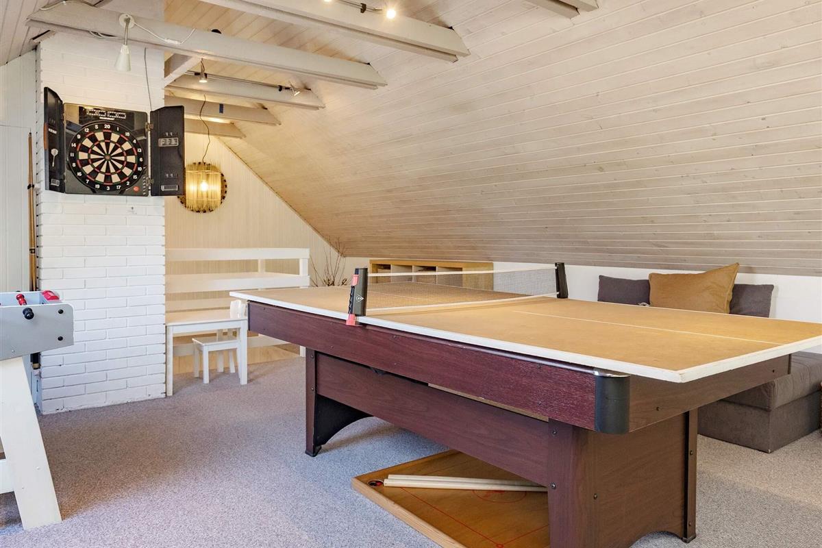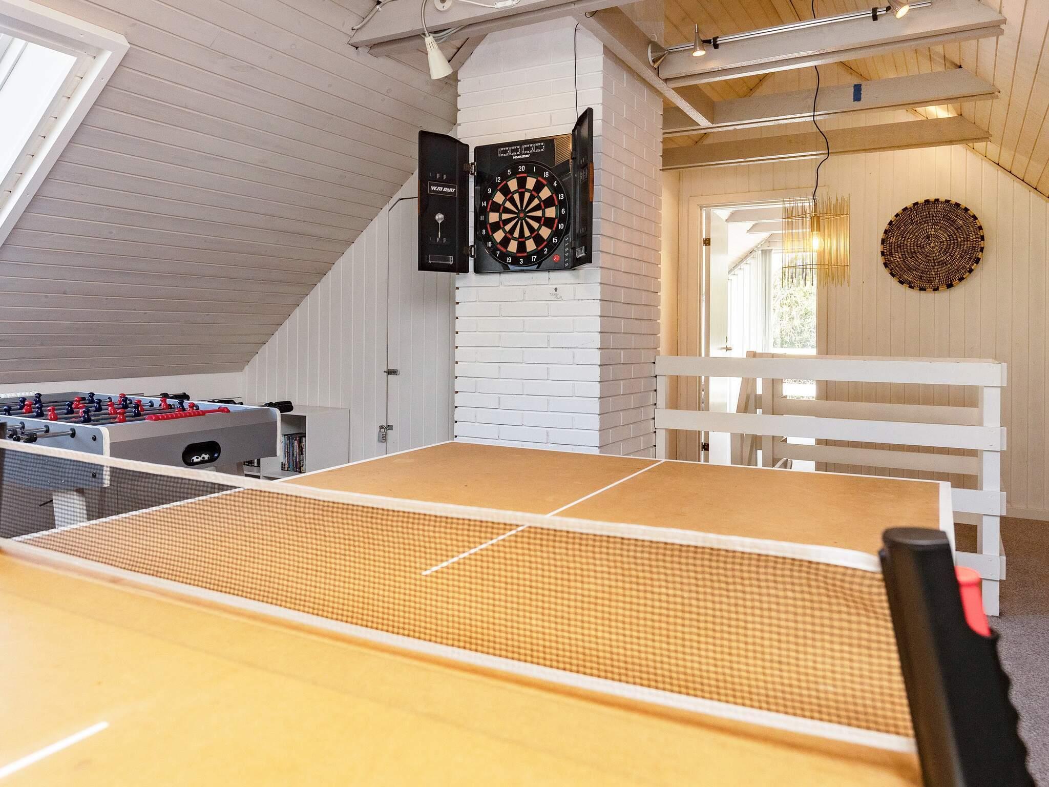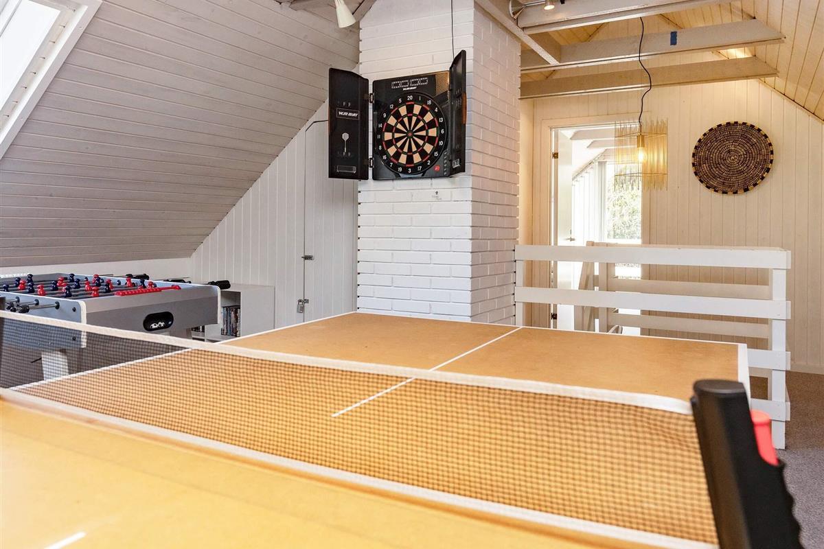 In der oberen Etage erwartet Sie einen großen Aufenthaltsbereich mit Sitzecke und TV mit deutschen Sendern zur Auswahl über Satellit sowie Chromecast zum Streamen eigener Anbieter. Für den Freizeitspaß stehen zudem Billard, Tischtennis, Kickertisch sowie elektronisches Darts bereit.