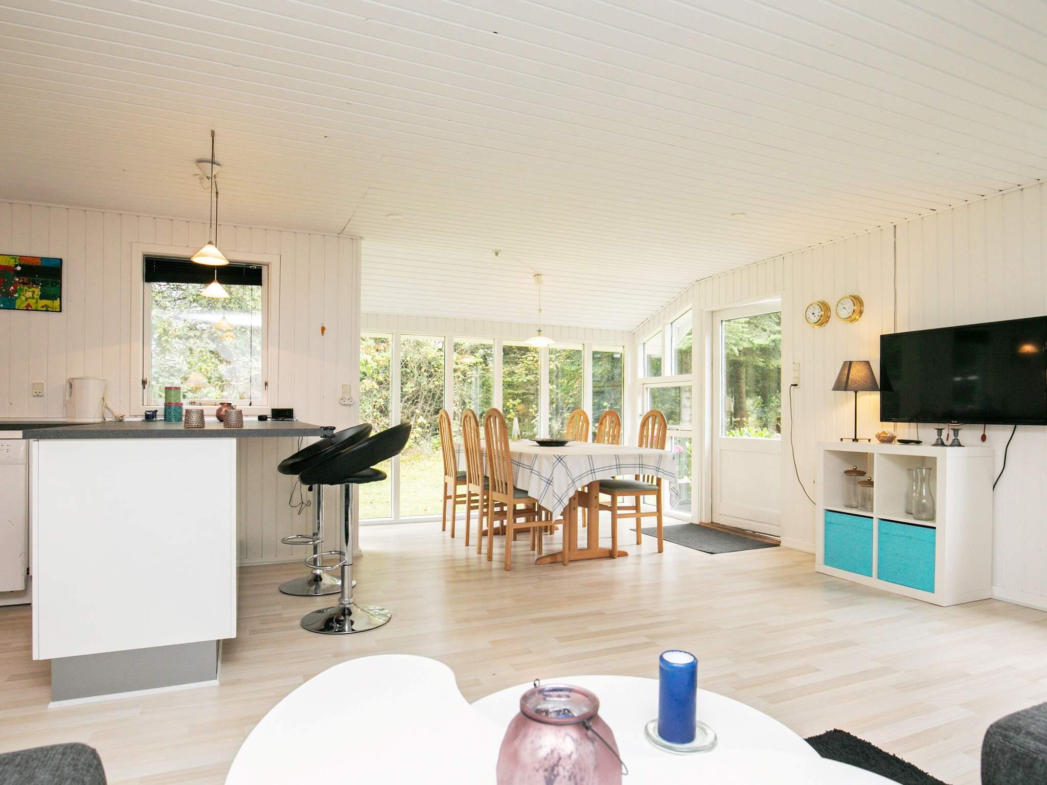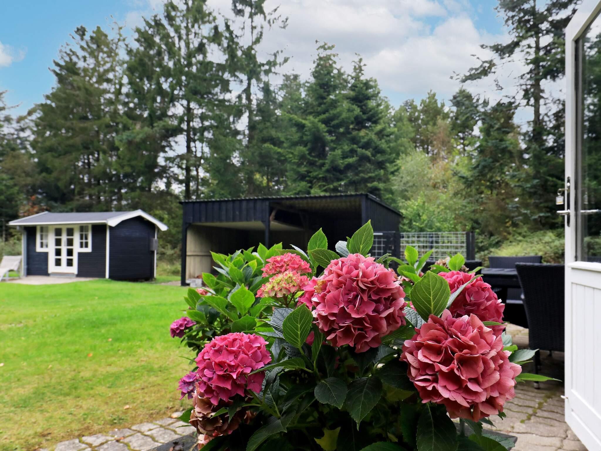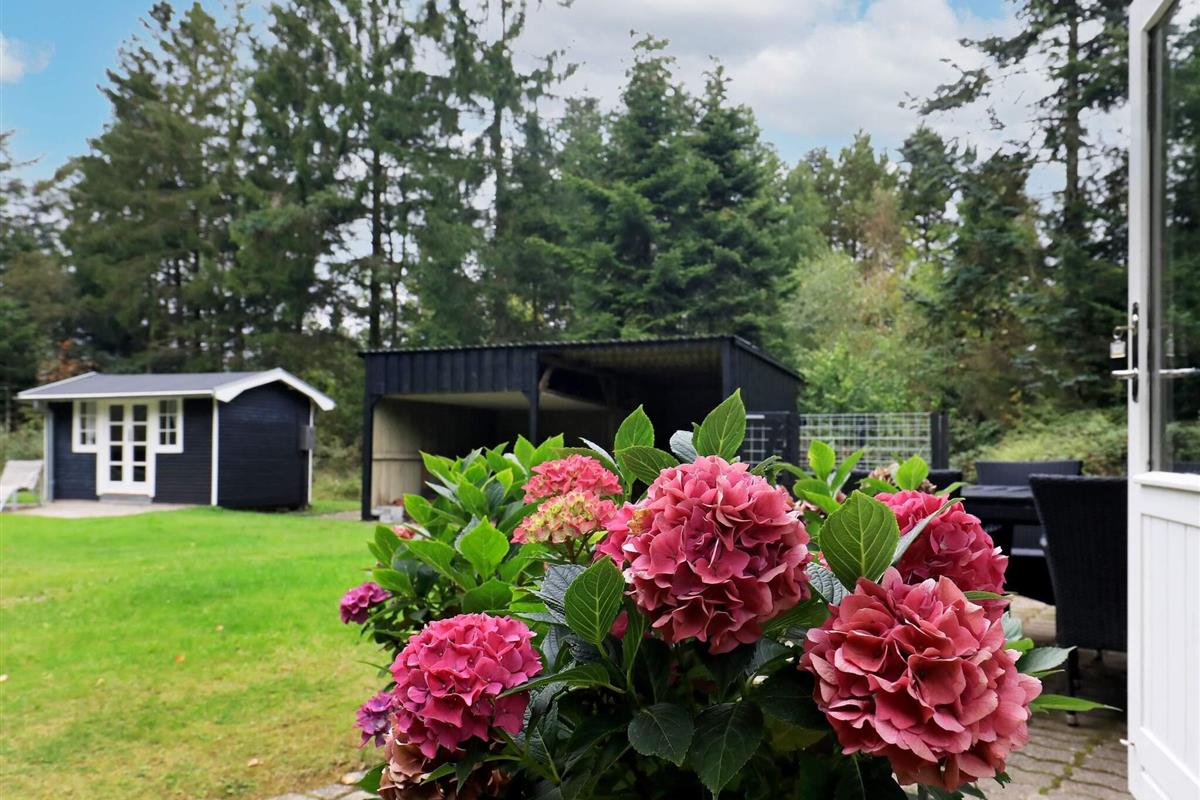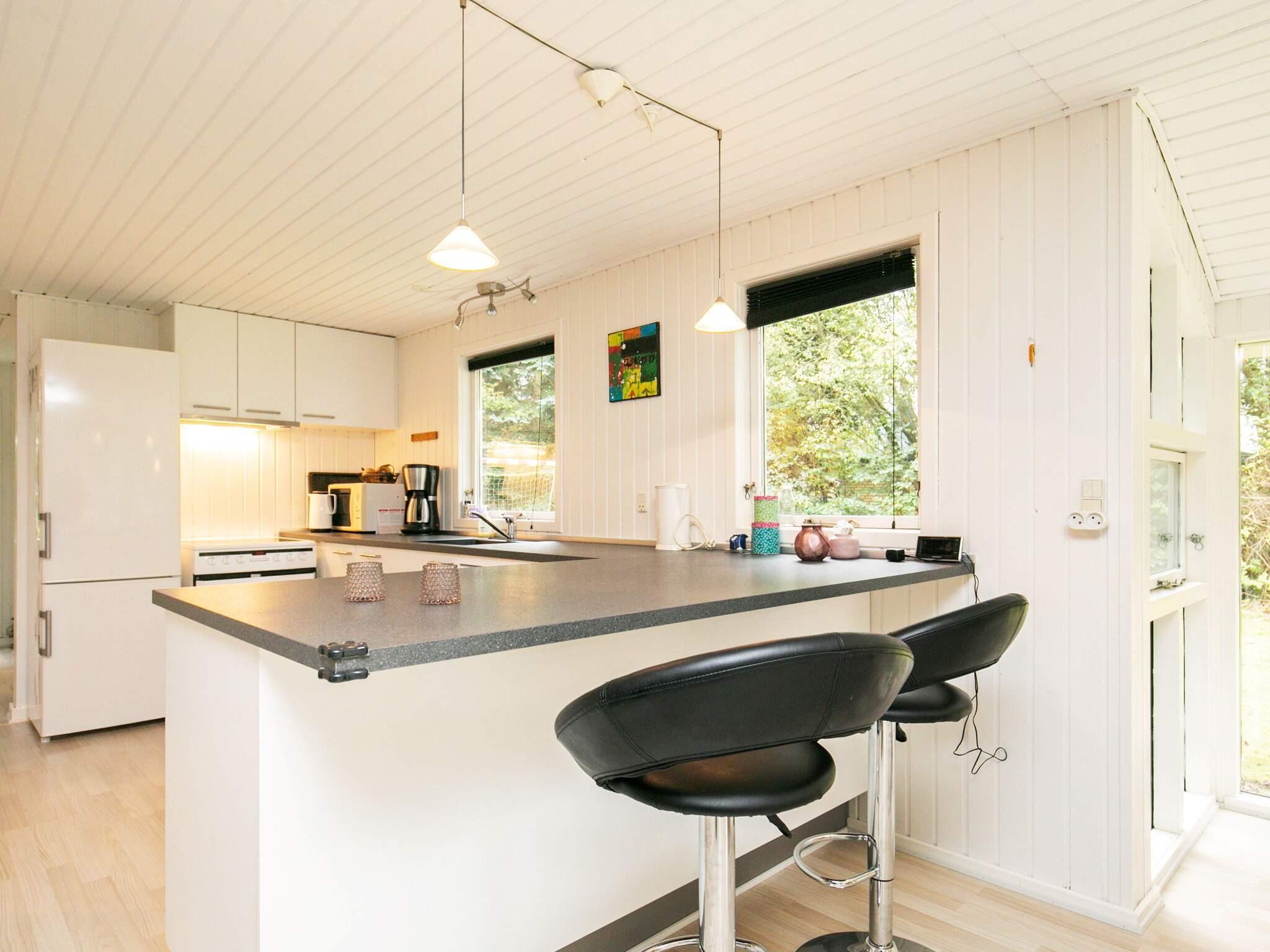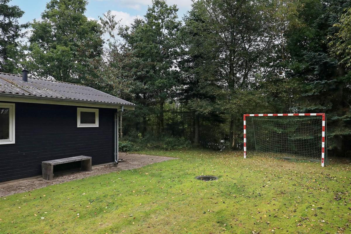 Das gepflegte Holzhaus wirkt hell und einladend. Es bietet ein Schlafzimmer mit Doppelbett und Schränken, ein Kinderzimmer mit zwei Kojen und einem Zustellbett, ein kleineres Badezimmer mit Dusche und einen hellen, offenen Küchen-/Wohnbereich für das Familienleben. Nebenan auf dem Grundstück steht zudem ein kleiner Annex mit zwei weiteren Schlafplätzen als Ausweichmöglichkeit. Das Ferienhaus liegt auf einem schönen Naturgrundstück mit Rasenfläche und Bäumen. Vom Grundstück führt ein kleiner Pfad hinunter ans Wasser.