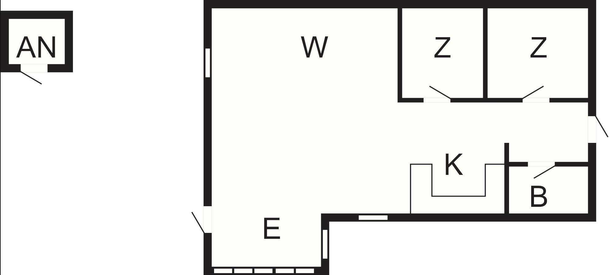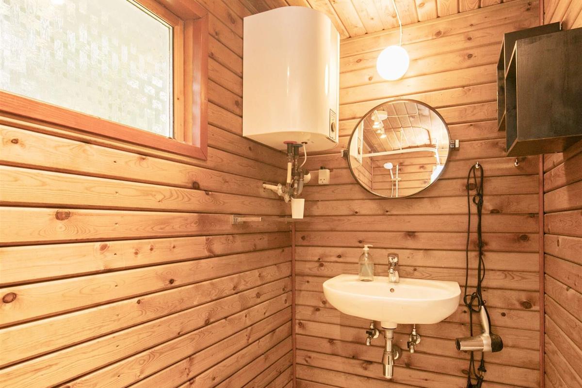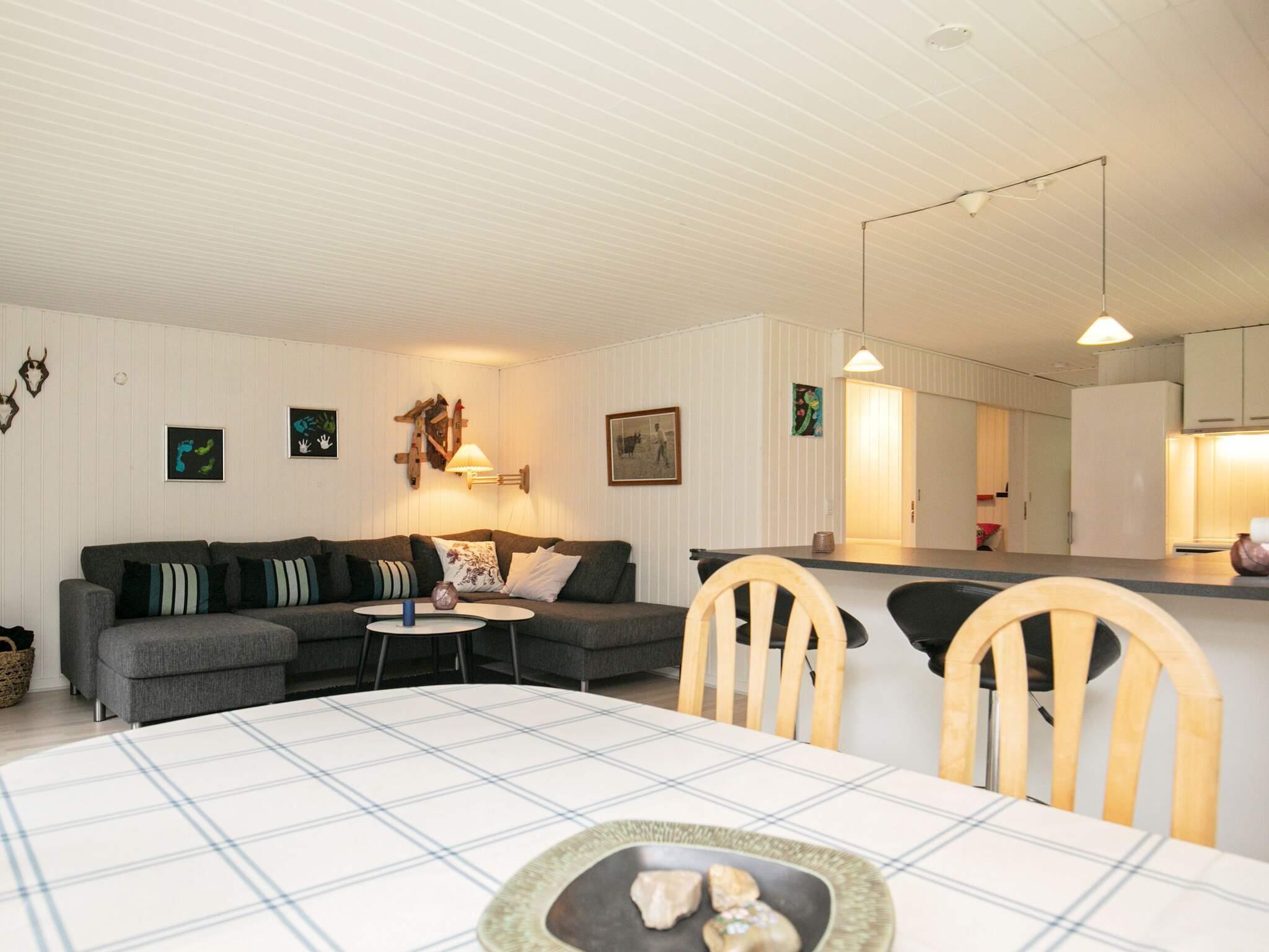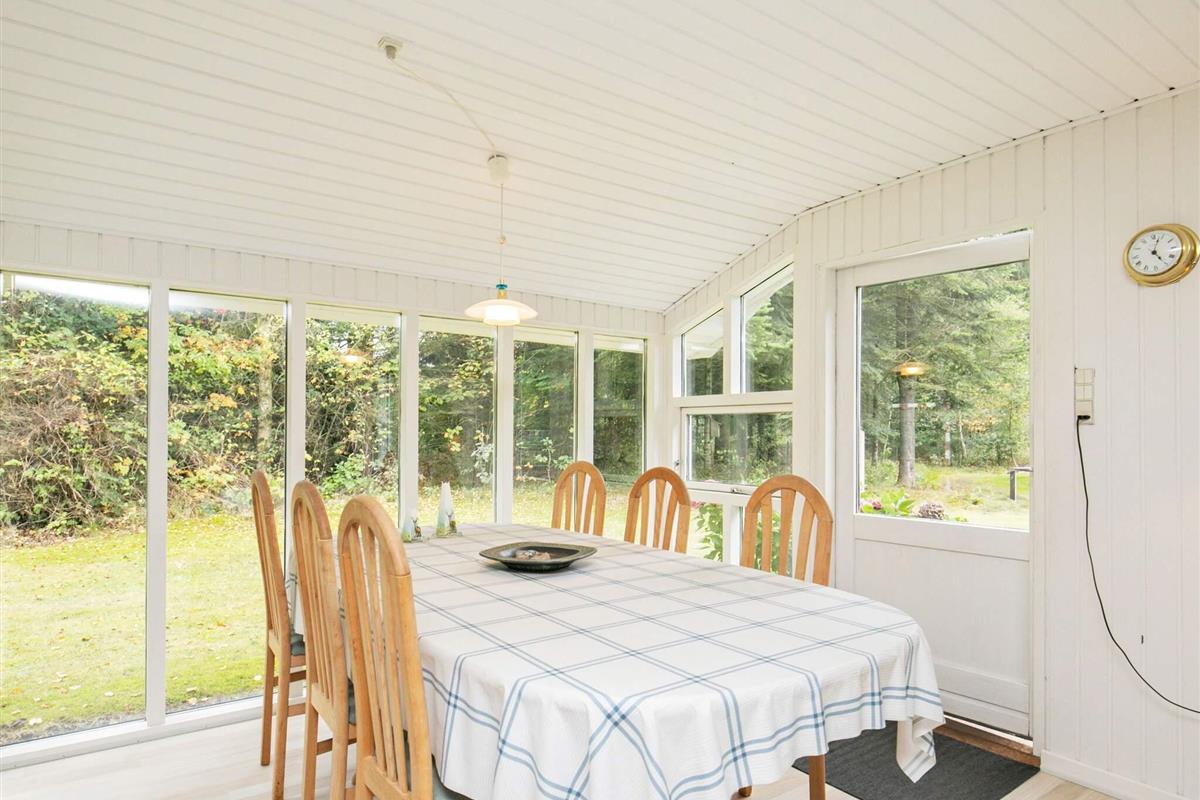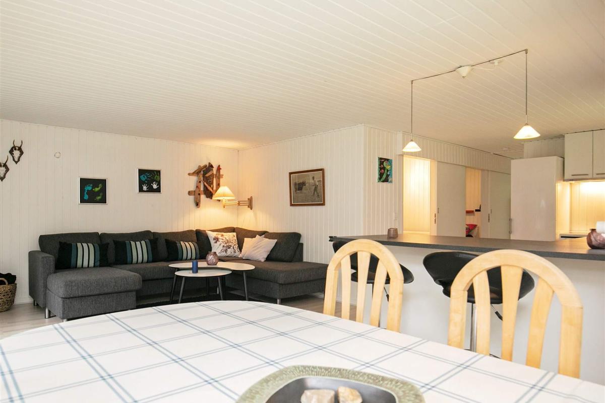 Das gepflegte Holzhaus wirkt hell und einladend. Es bietet ein Schlafzimmer mit Doppelbett und Schränken, ein Kinderzimmer mit zwei Kojen und einem Zustellbett, ein kleineres Badezimmer mit Dusche und einen hellen, offenen Küchen-/Wohnbereich für das Familienleben. Nebenan auf dem Grundstück steht zudem ein kleiner Annex mit zwei weiteren Schlafplätzen als Ausweichmöglichkeit. Das Ferienhaus liegt auf einem schönen Naturgrundstück mit Rasenfläche und Bäumen. Vom Grundstück führt ein kleiner Pfad hinunter ans Wasser.