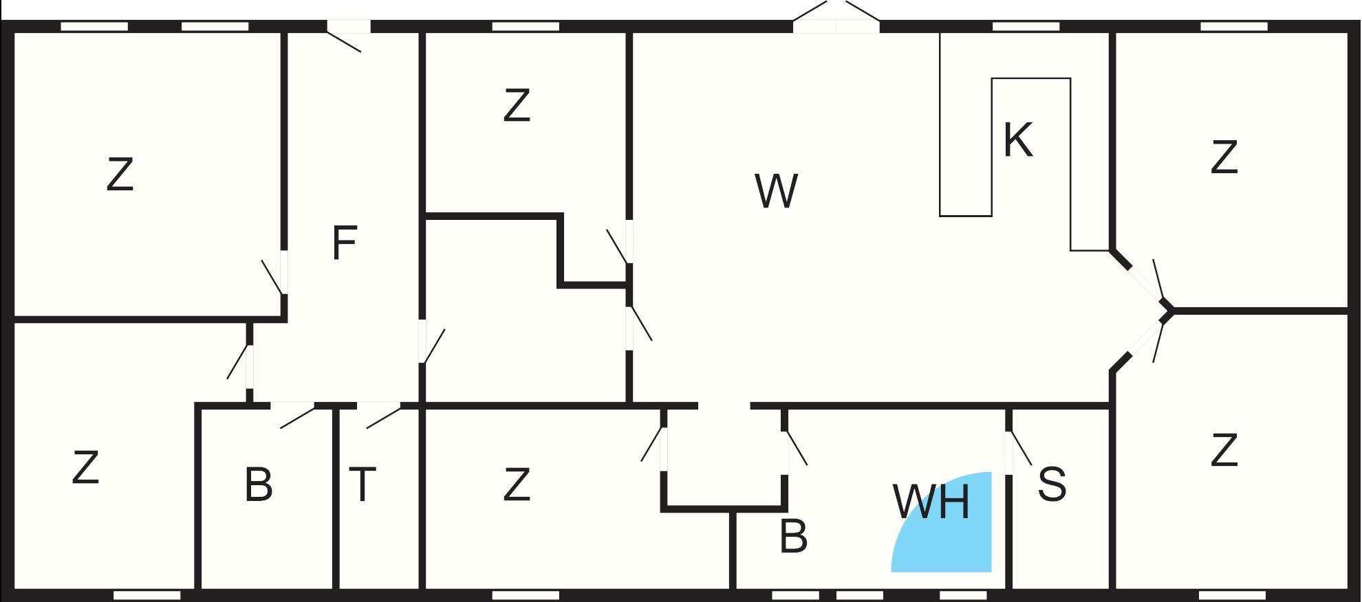 6 Schlafz.: (1DB)+(2B)+(2B)+(2B)+(2B)+(2B), Kinderbett