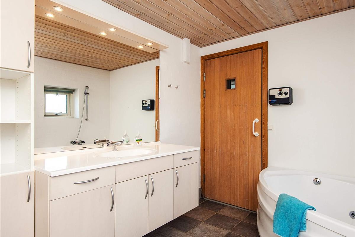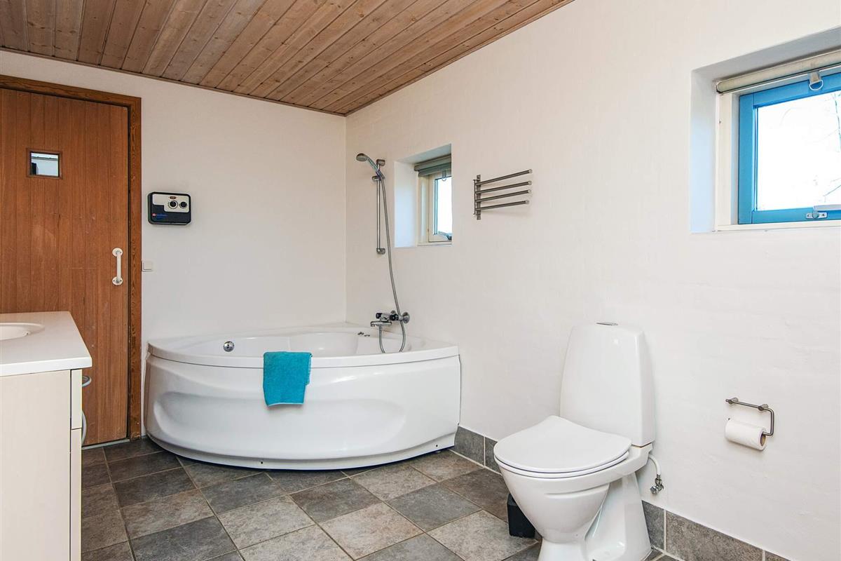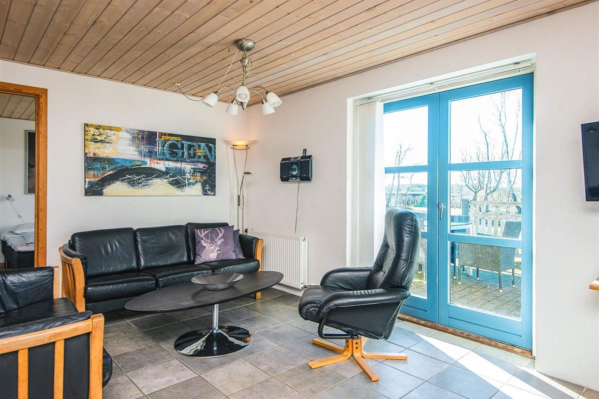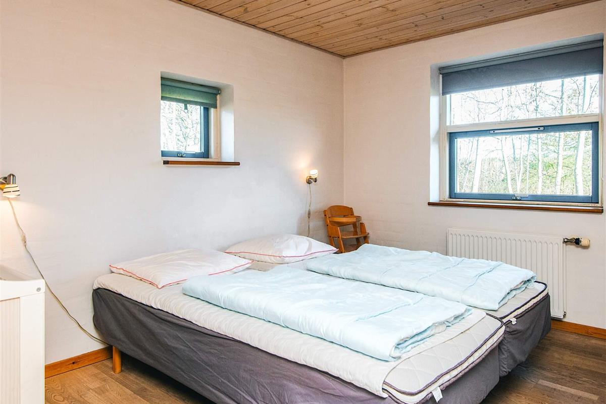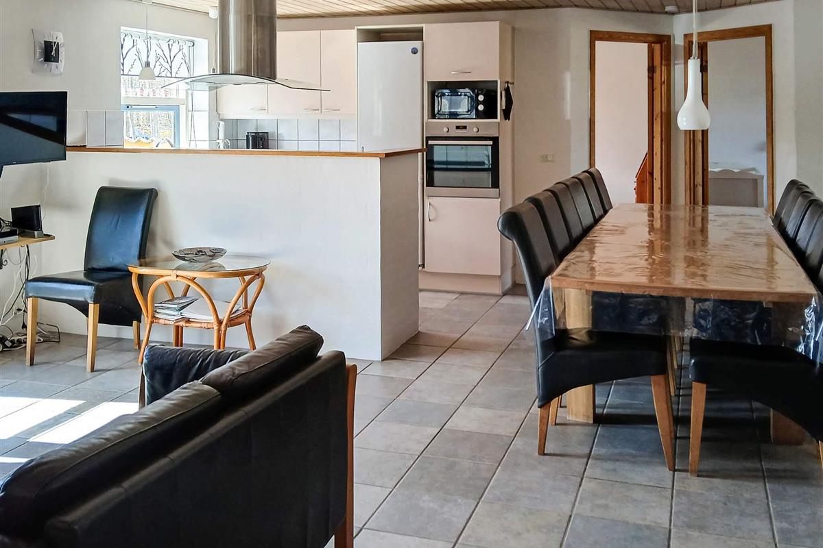 Geräumiges und gut ausgestattetes Ferienhaus auf einem Naturgrundstück in einem schönen Ferienhausgebiet in Højslev. Das Haus hat eine kombinierte Wohnküche mit einem Holzofen. Die Küche ist modern eingerichtet. Es gibt eine Waschmaschine, einen Wäschetrockner und einen Weinkühlschrank im Haus.