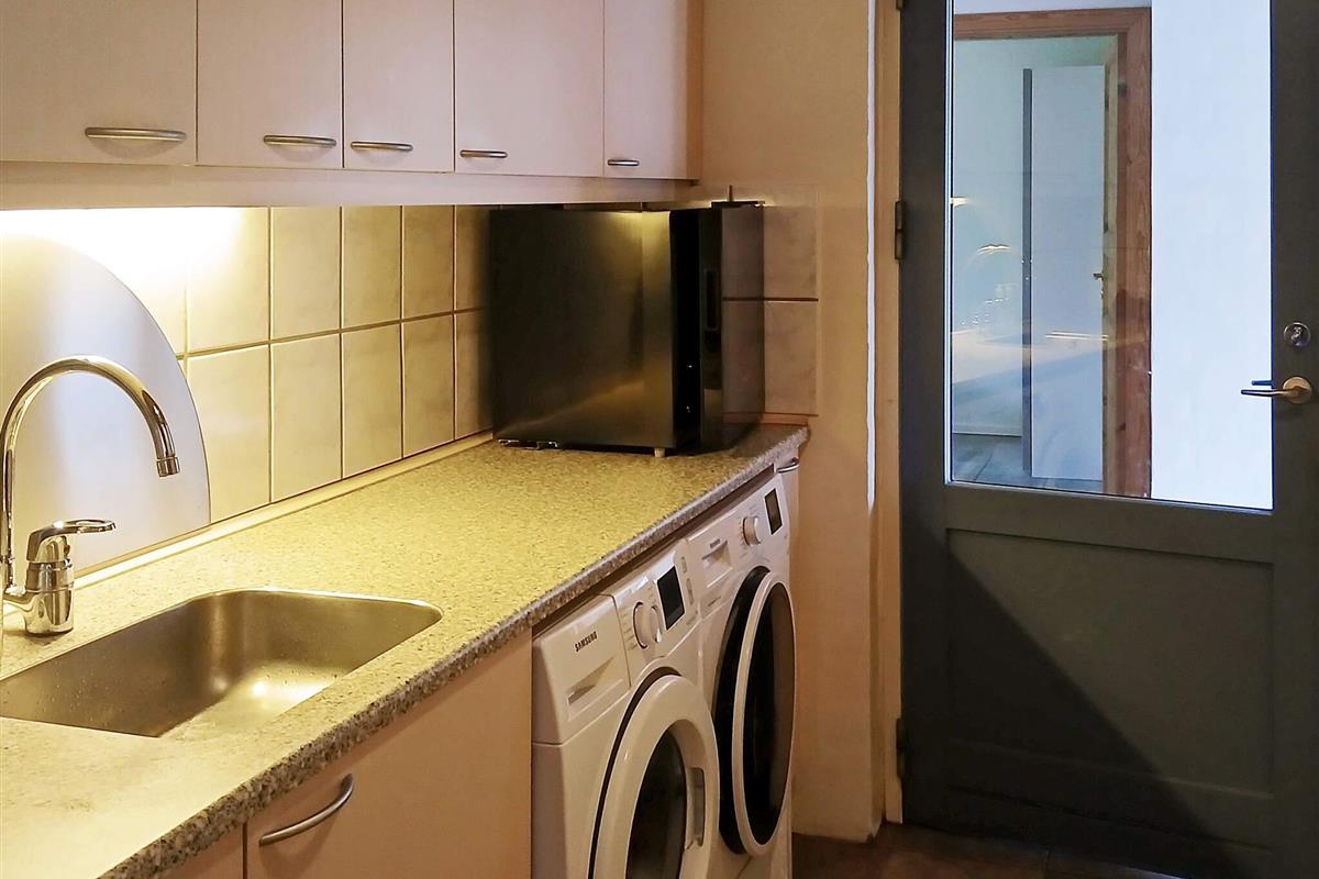 Off. Küche: E-Herd, Kühlschr. m. Gefrierfach, Gefriertruhe 60-99 l., Mikrow., Abzugsh., Kaffeem., Spülm., Waschm, Trockner