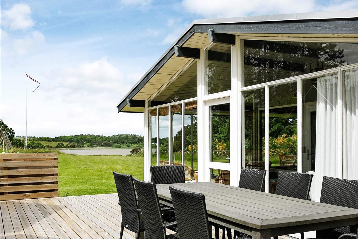 Die verglaste Veranda wird an Sonnentagen schnell aufgewärmt. Im Außenbereich finden Sie sowohl offene als auch überdachte Terrassenflächen, von denen aus Sie den Blick zum See genießen können.