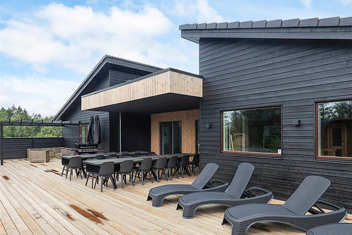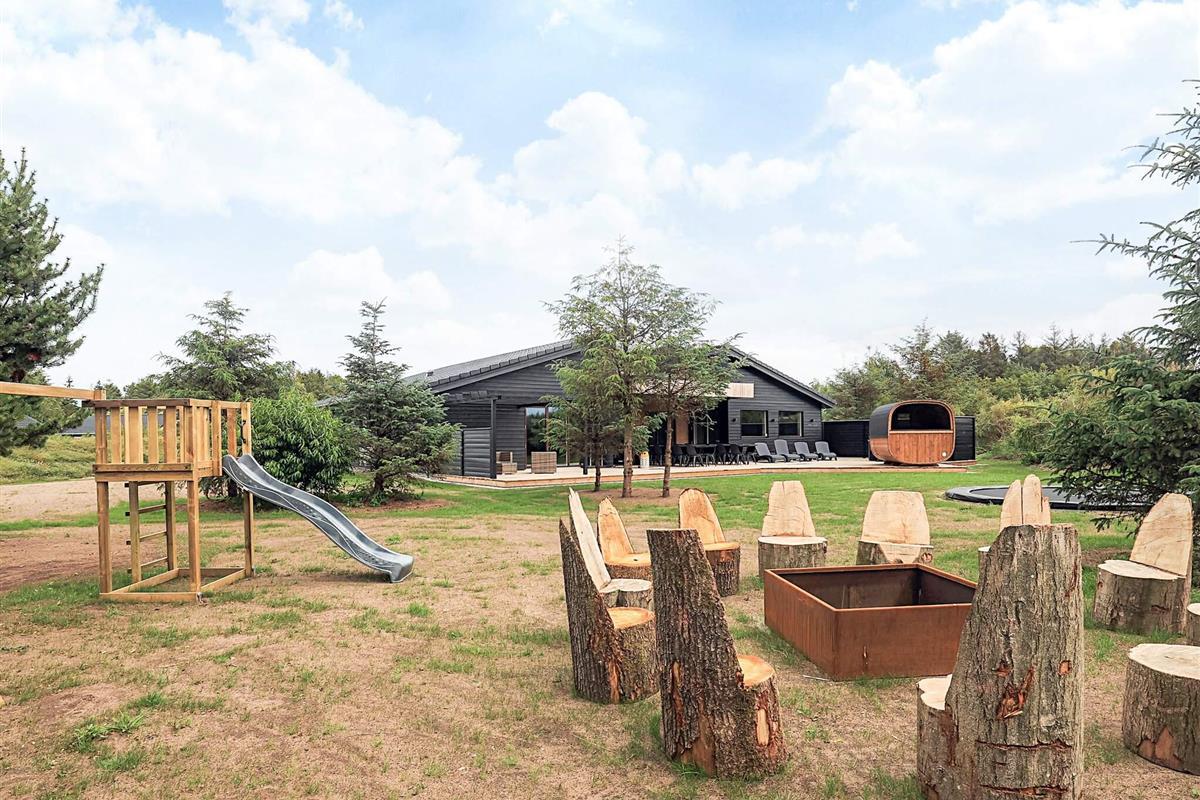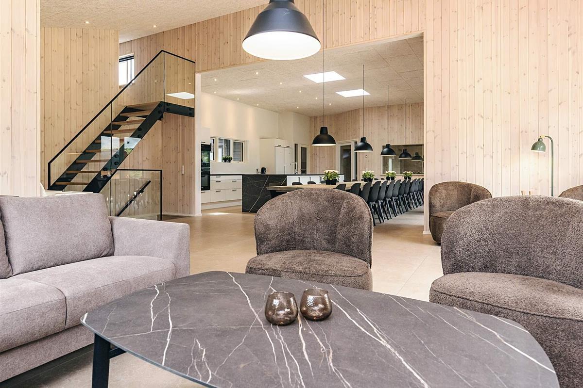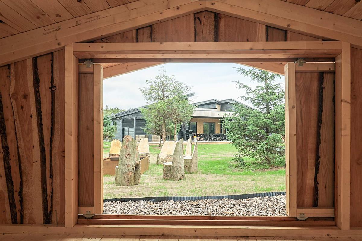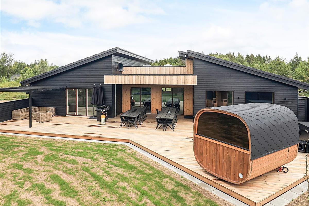 Hochwertiges, außergewöhnliches Architekten-Sommerhaus (2025) mit Swimmingpool, luxuriösem Whirlpool für 6 Personen und Saunafass für 4 Personen, ca. 500 m von Limforden mit seinem kinderfreundlichen Strand entfernt.