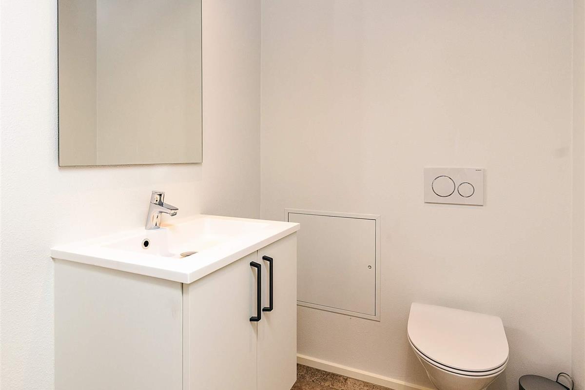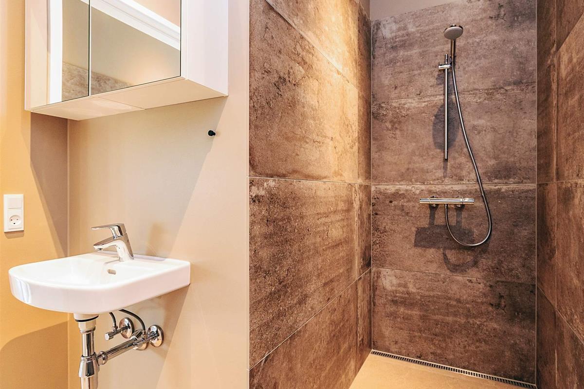 Das Gartenhaus ist hell und einladend, mit hohen Decken und Spots. Es ist praktisch eingerichtet und verfügt über eine kombinierte Wohnküche.