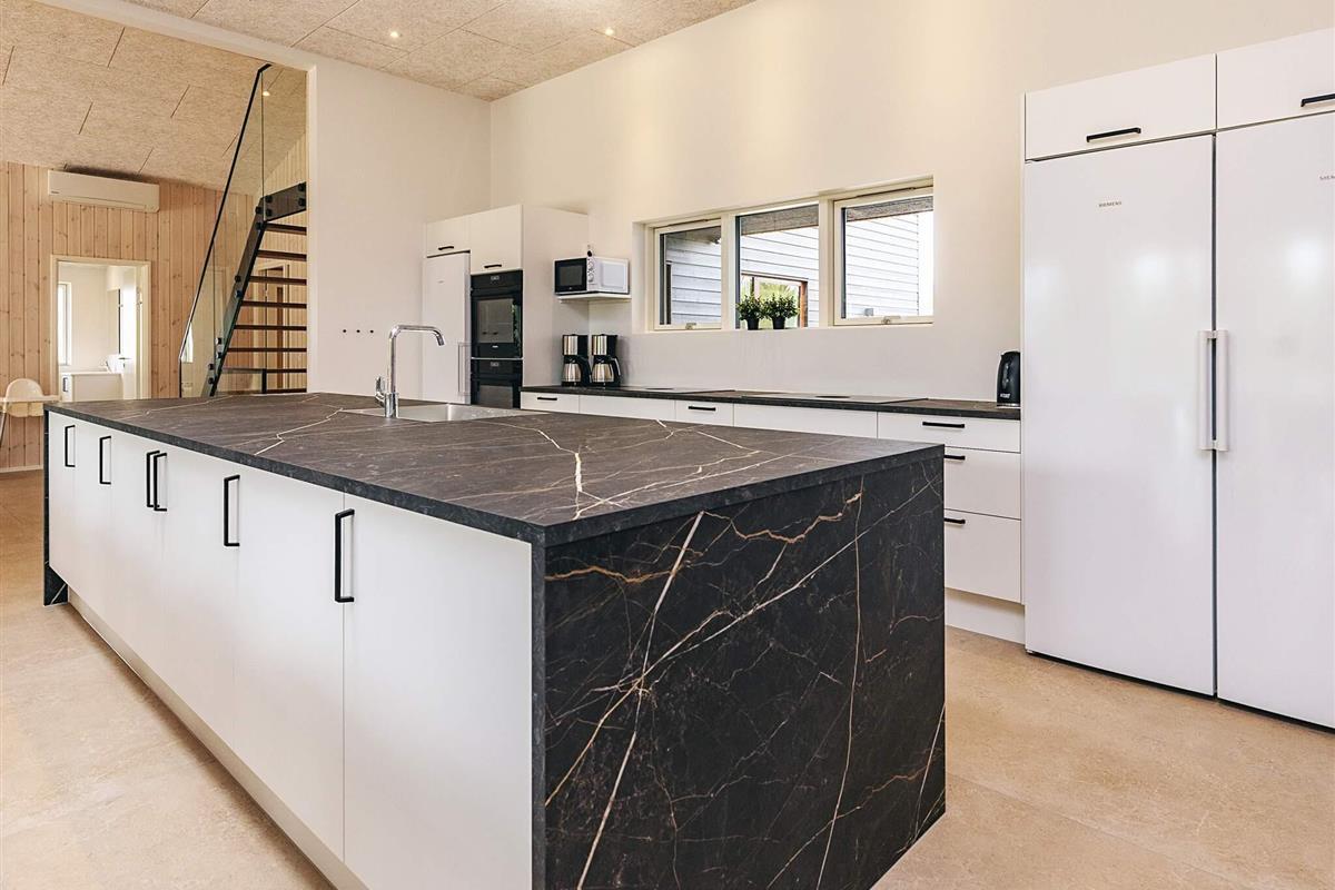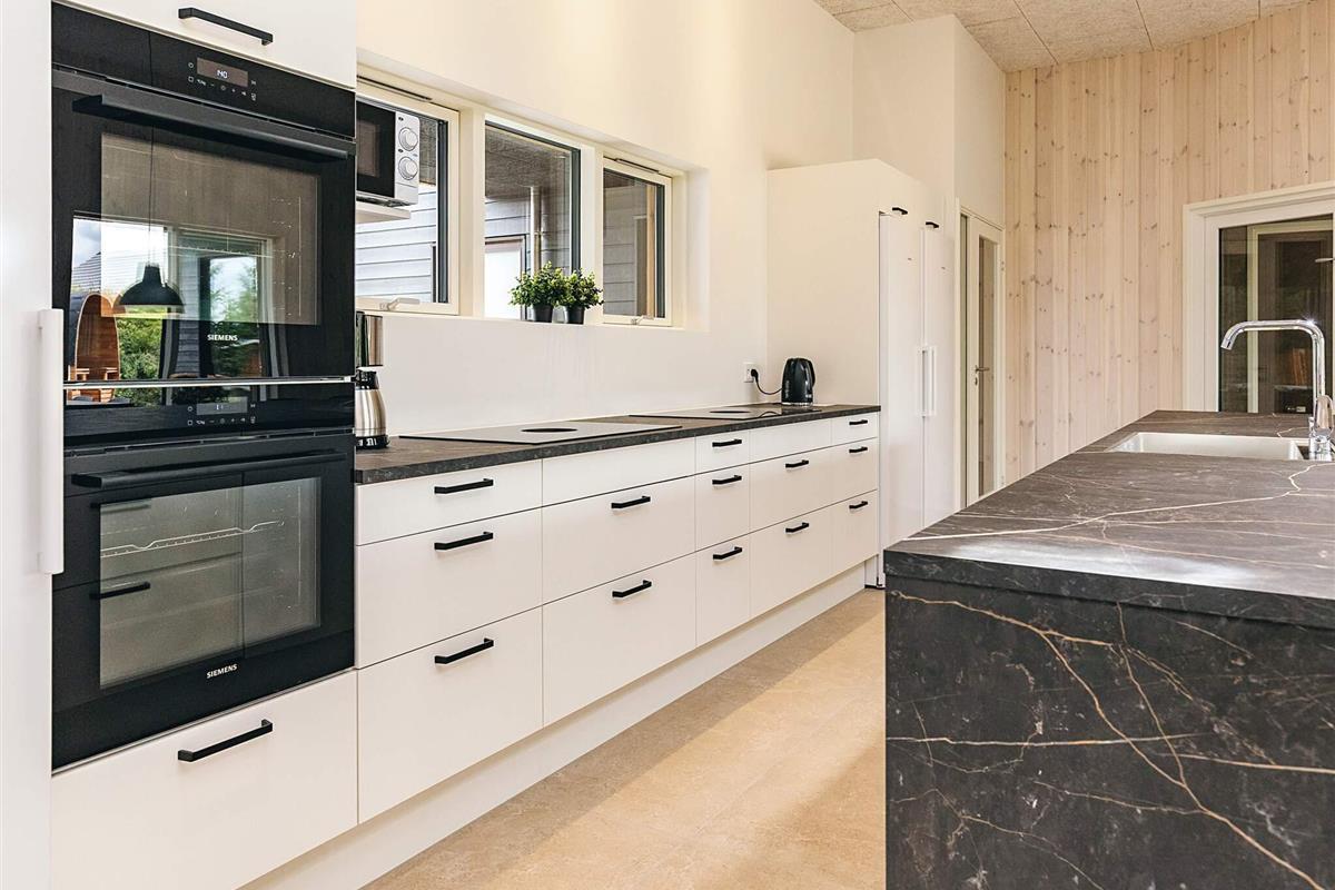 Die Wohnküche verfügt über ein Cerankochfeld, eine Dunstabzugshaube, einen separaten Backofen mit Grill, eine Mikrowelle, einen Geschirrspüler, eine Kaffeemaschine, einen Kühlschrank und einen separaten Gefrierschrank mit mindestens 140 Litern Fassungsvermögen.