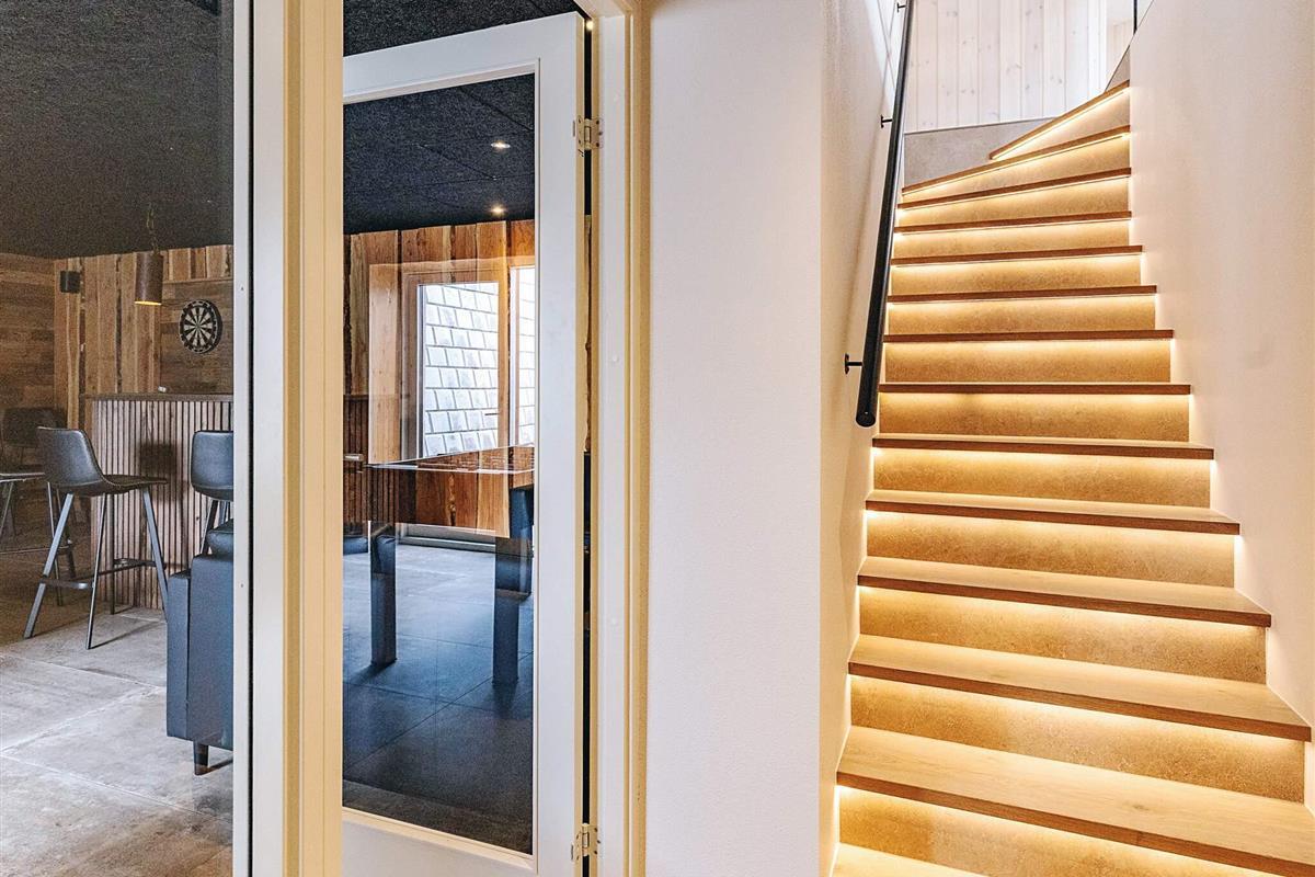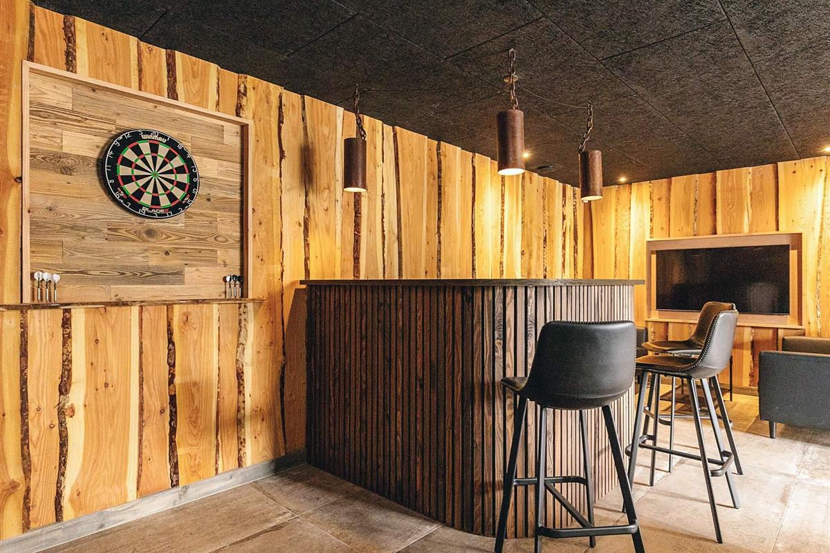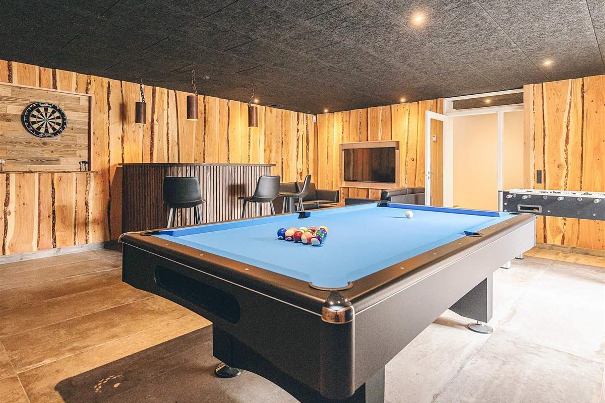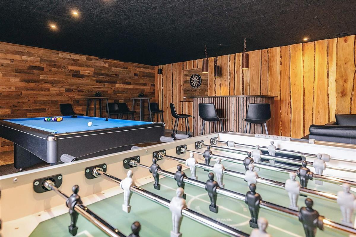Der große Aktivitätsraum mit Barbereich befindet sich im Untergeschoss und ist direkt vom Erdgeschoss aus zugänglich. Er verfügt über ein Badezimmer mit Dusche und WC.