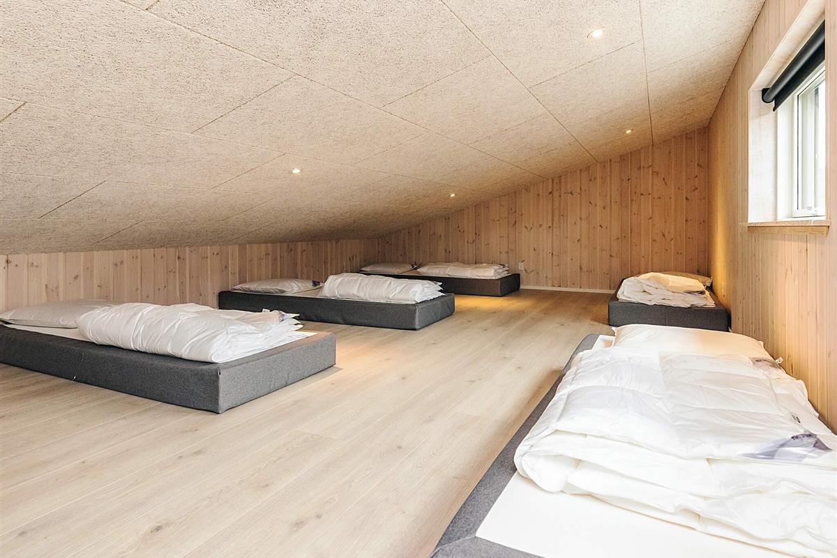 Das Ferienhaus bietet 9 Schlafzimmer mit hochwertigen Betten, davon 6 mit je 2 Einzelbetten und 3 mit je 2 Einzelbetten und 1 Etagenbett. Zusätzlich gibt es einen Dachboden mit 5 Betten und 2 Wochenendbetten für die Kleinen.