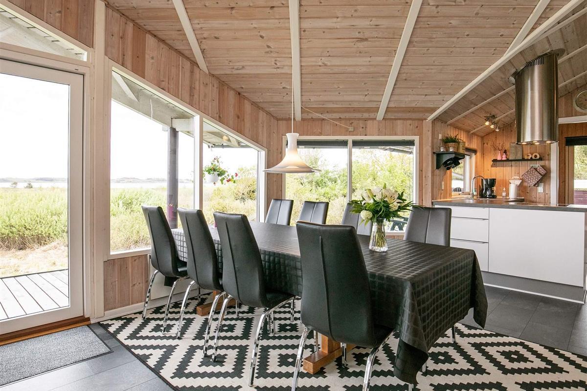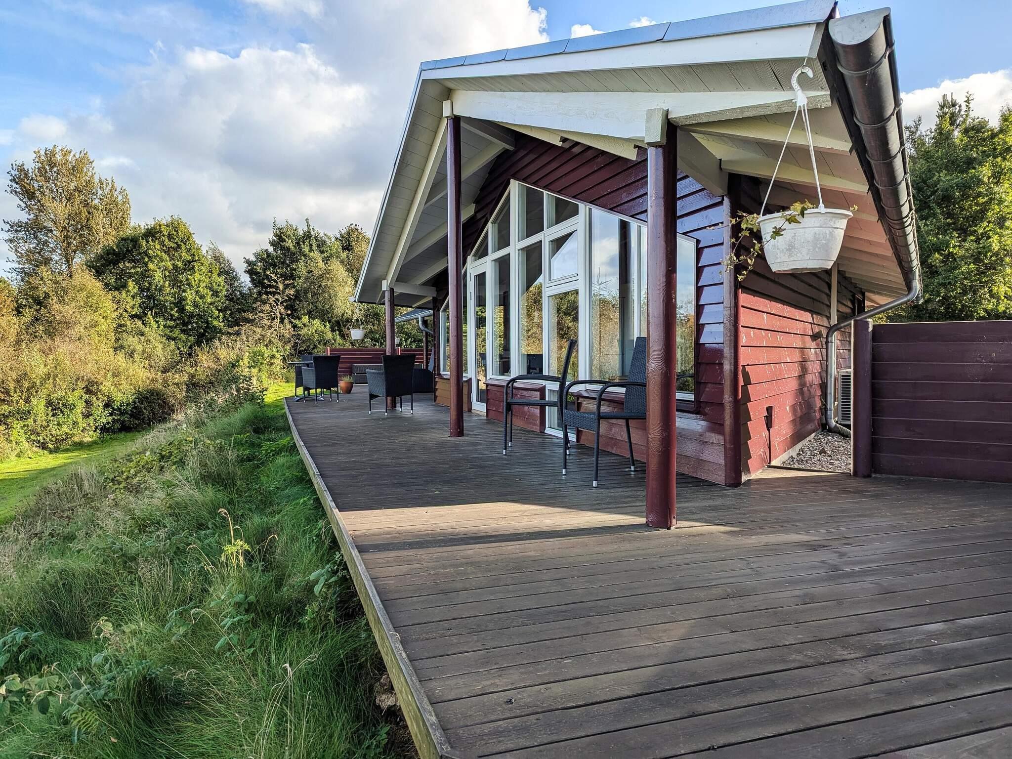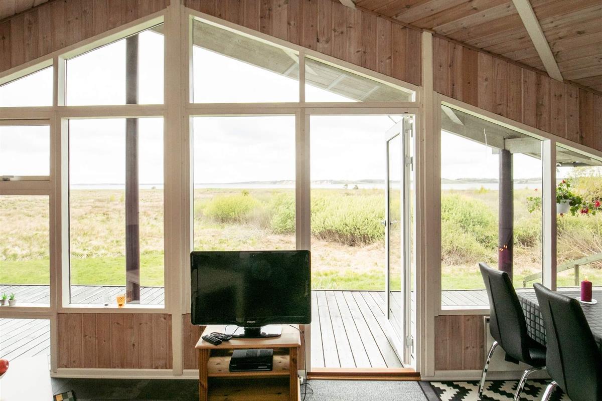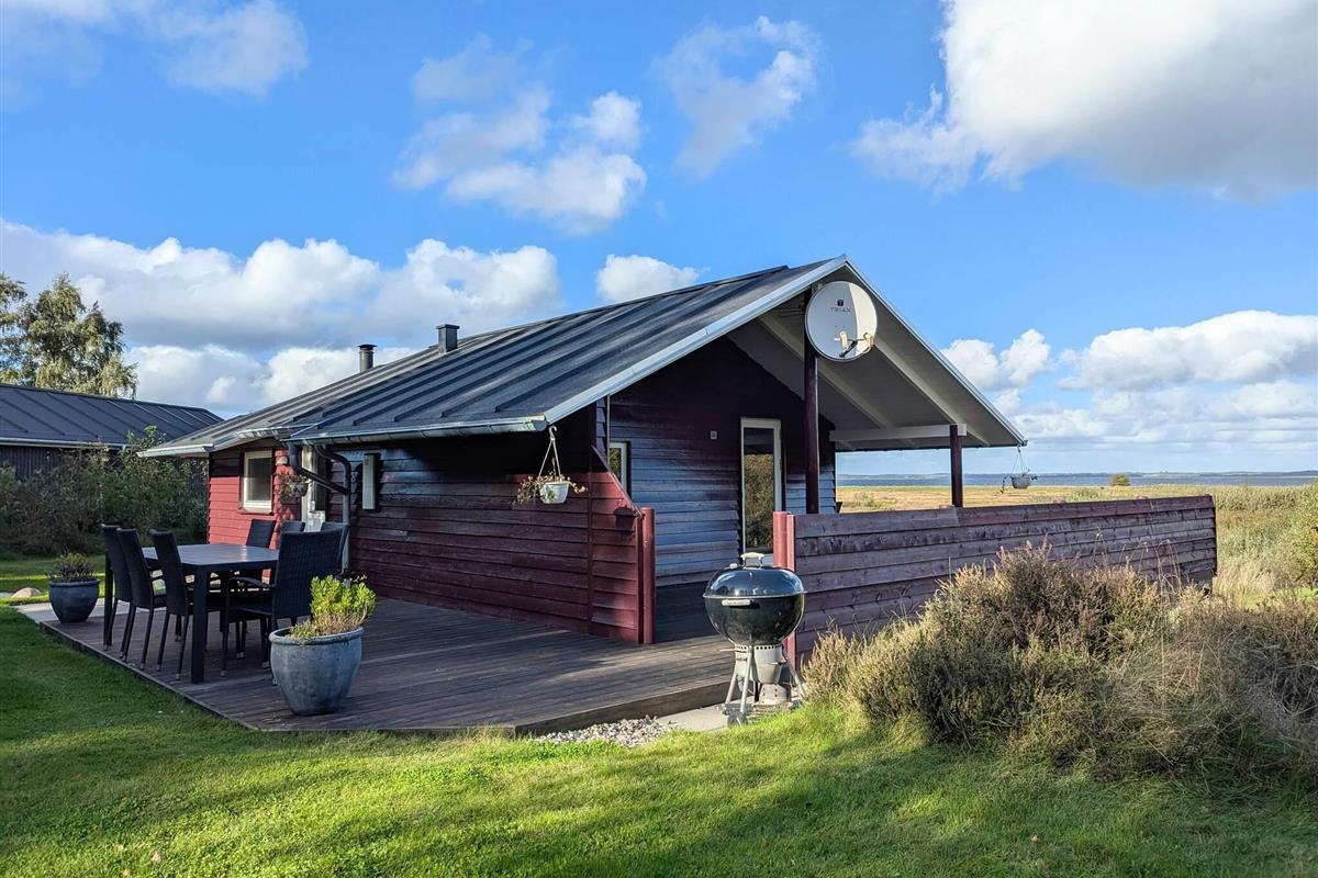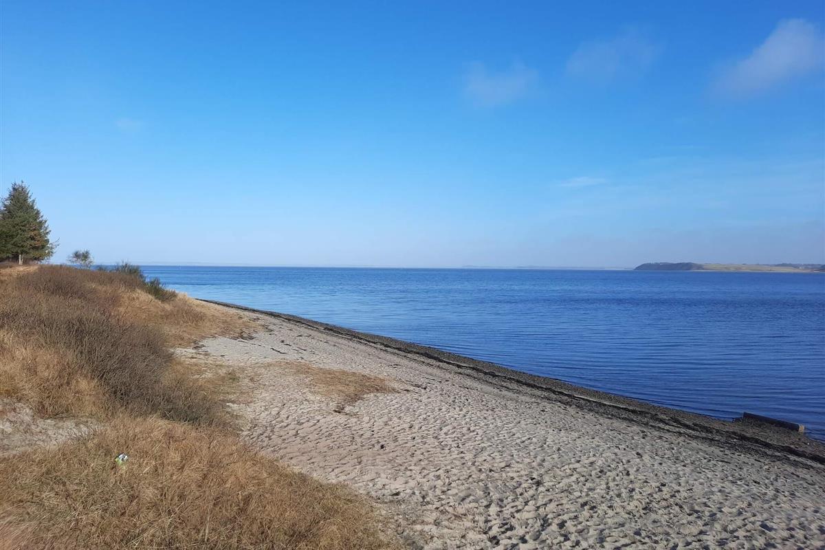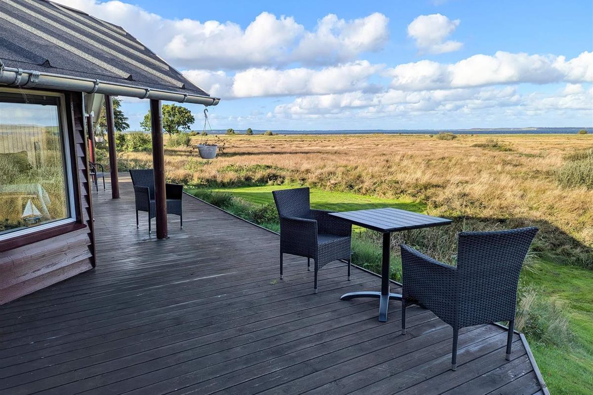 Dieses Ferienhaus liegt erhöht in der 1. Reihe zum Wasser hin, auf einem ca. 3000 m² großen, teilweise mit Heide bewachsenen Naturgrundstück. Sowohl vom Haus als auch vom Grundstück aus haben Sie Panorama-Aussicht auf den Limfjord!