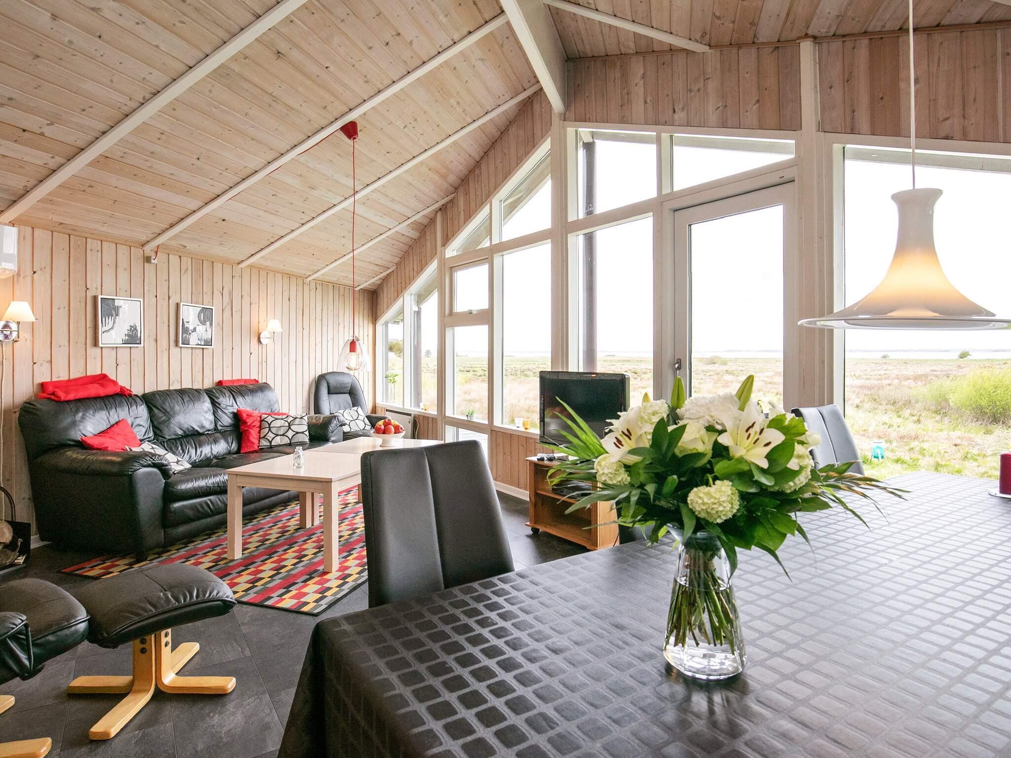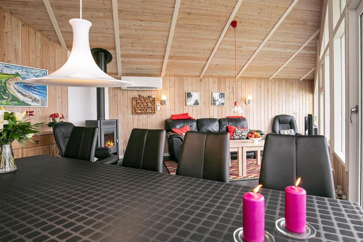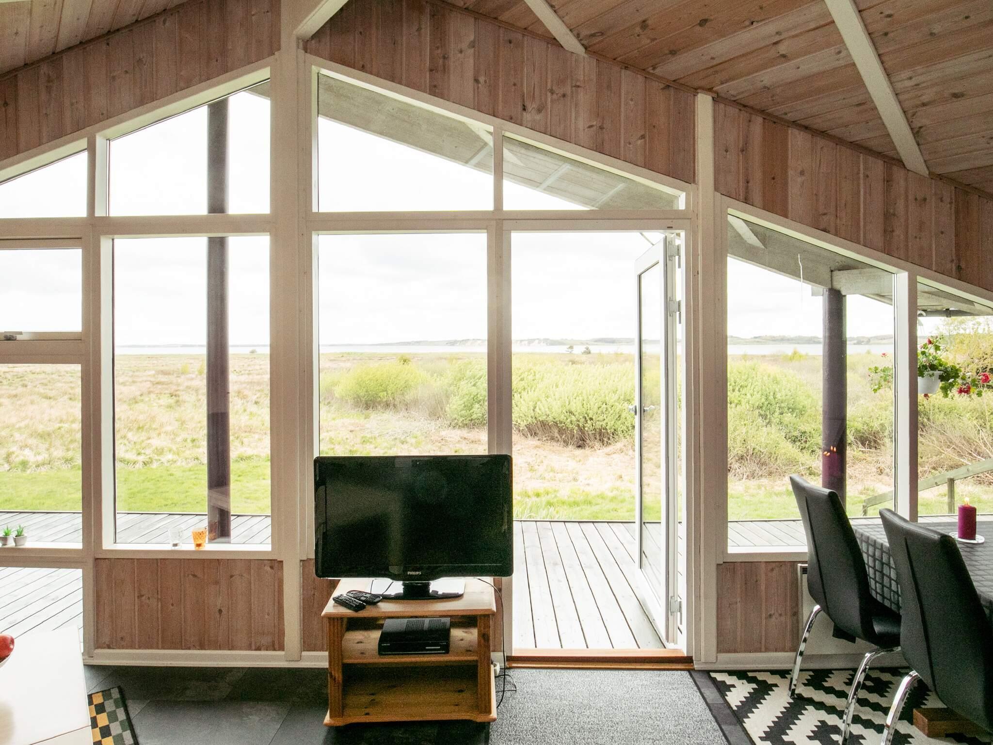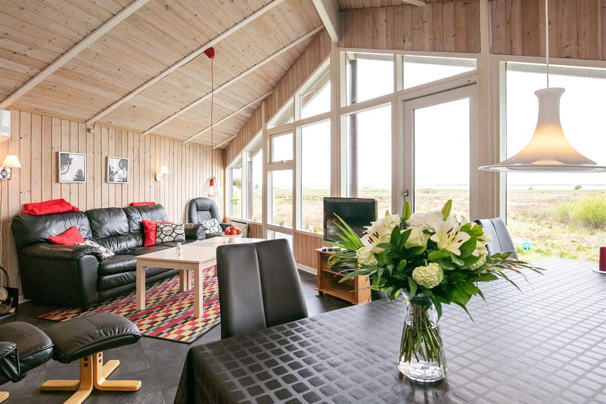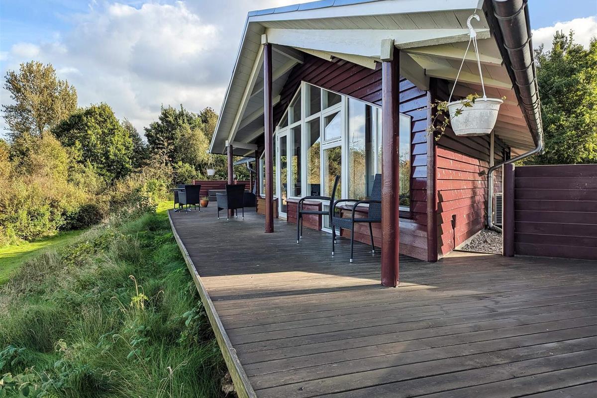 Dieses Ferienhaus liegt erhöht in der 1. Reihe zum Wasser hin, auf einem ca. 3000 m² großen, teilweise mit Heide bewachsenen Naturgrundstück. Sowohl vom Haus als auch vom Grundstück aus haben Sie Panorama-Aussicht auf den Limfjord!
