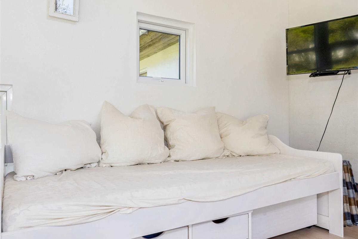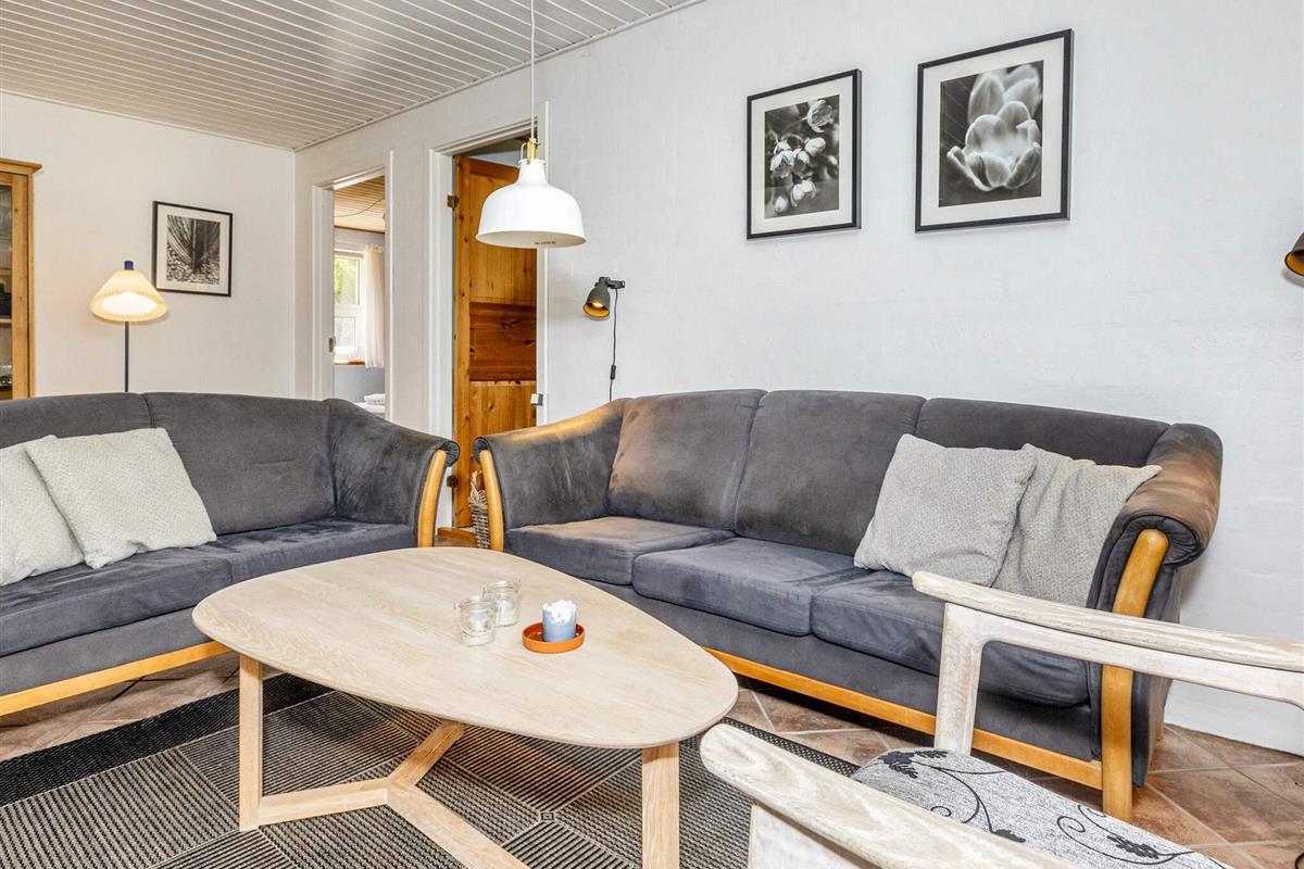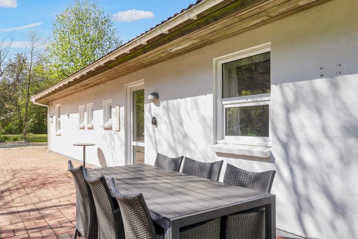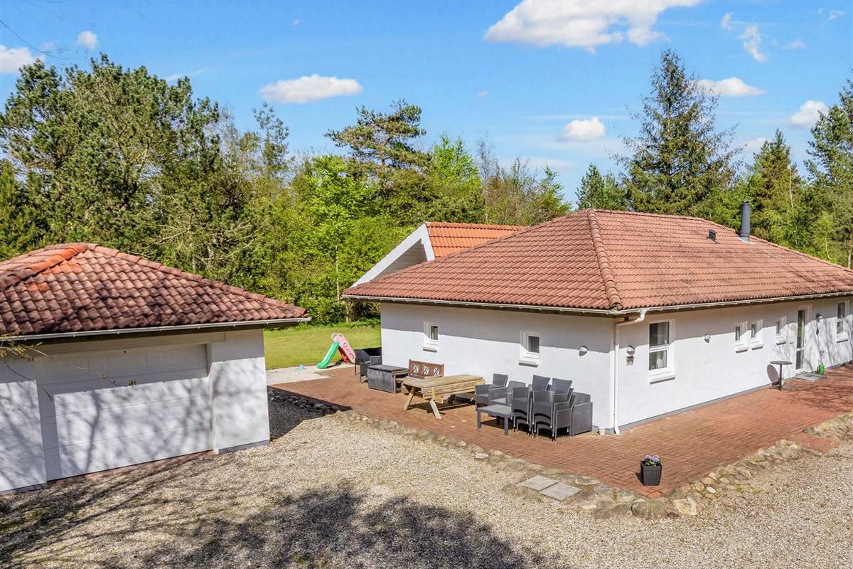 Das gut instand gehaltene Ferienhaus steht auf einem gut 3.800 m2 großen Rasengrundstück mit viel Platz für Aktivitäten der ganzen Familie. Zusätzlich zu einer gefliesten Terrasse stehen auf dem Grundstück Petanquebahn und Volleyballfeld sowie ein abgesenktes Gartentrampolin (Nutzung nur auf eigenes Risiko), Sandkasten und ein Schaukelgerüst bereit. Außerdem gibt es eine Garage mit einem vergittertem Hundezwinger an der Rückwand.