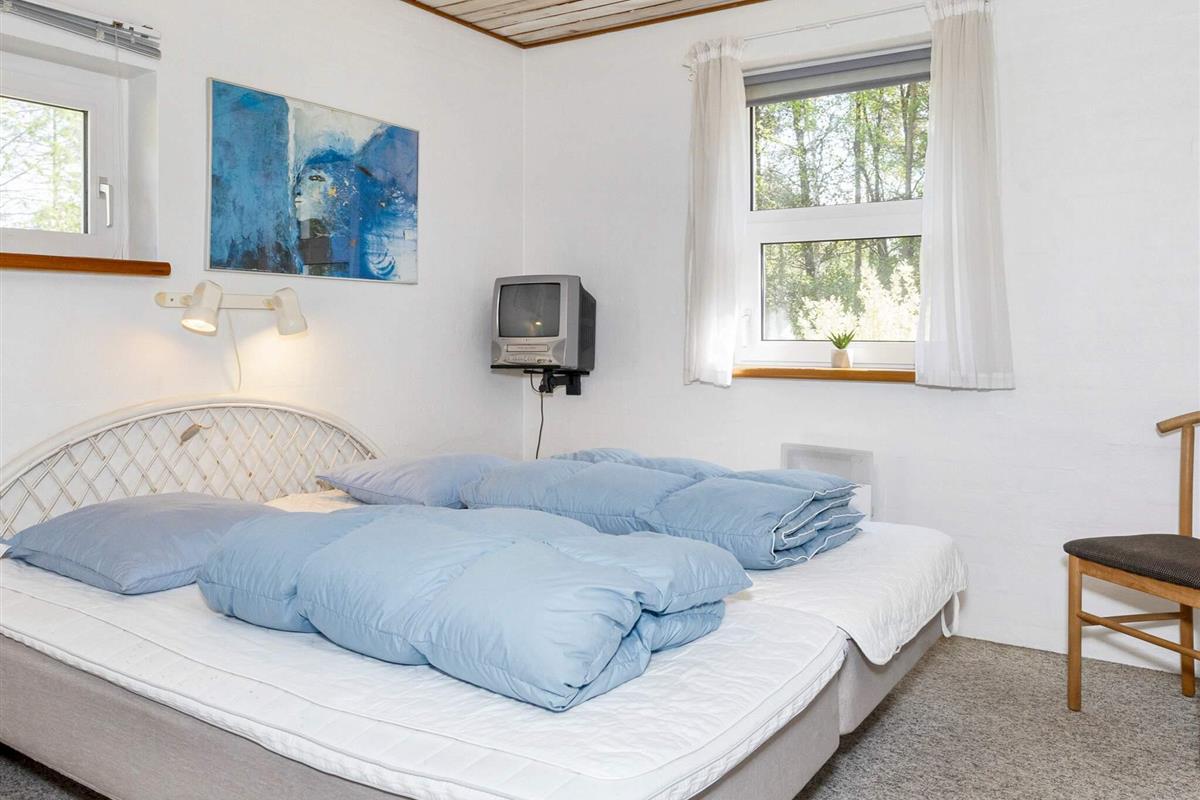 Gemütliches Ferienhaus in schön geschützter Lage bei Virksund. Vom Ferienhausgebiet führen kleine Pfade hinunter ans nahe Badeufer am Limfjord sowie zum kleinen Yachthafen etc.