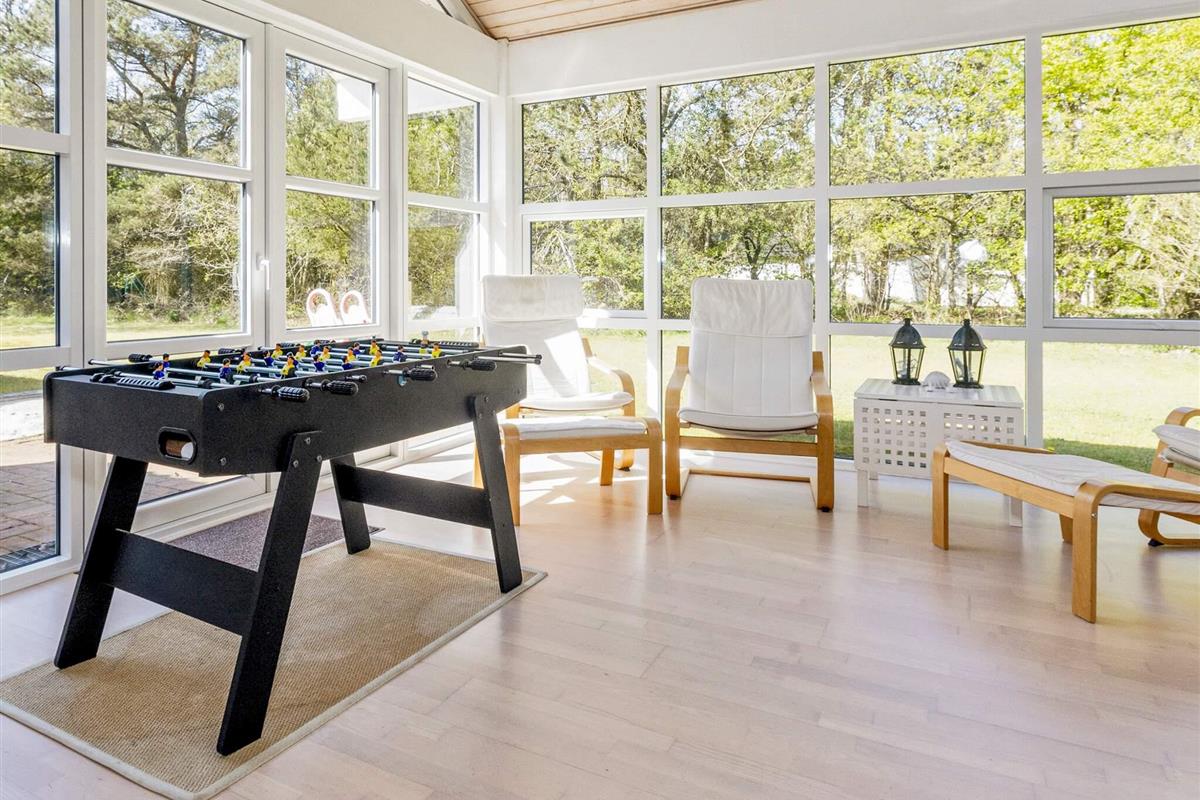 Das familienfreundliche Ferienhaus ist gut ausgestattet und bietet auch einen hellen, 25 m2 großen Wintergarten mit Bio-Kaminofen, Holzfußboden und einer extra Schlafgelegenheit. Zudem stehen ganze vier Schlafzimmer mit jeweils einem Doppelbett zur Verfügung. Außerdem Bad mit Sauna und Whirlpool für erholsame Stunden. Für das Familienleben steht ein offener Küchen-/Wohnbereich mit einer halbhohen Mauer als Abgrenzung und einem Oberlicht über dem Essplatz bereit. Zur technischen Ausstattung gehören u.a.deutsche TV-Sender sowie WLAN und eine energieeffiziente Wärmepumpe zur Reduzierung der Nebenkosten. Für die Jüngsten stehen Kinderbett und Hochstuhl bereit.