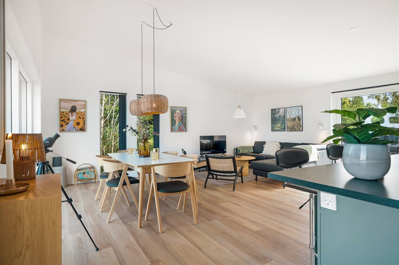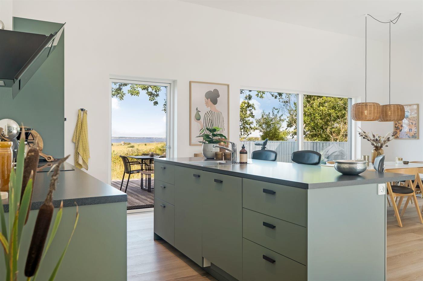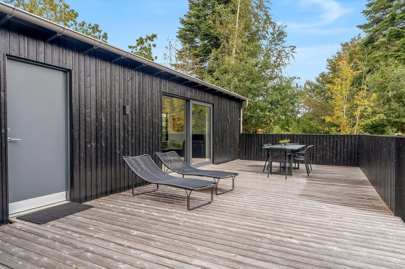 De vakantiewoning is gelegen op een 3427 m² groot grond in bos/park. Afstand tot de fjord 500 m. Er is een zwemsteiger in de buurt. Dichtstbijzijnde winkel 3500 m. Bij de vakantiewoning hoort terras. Carport ter beschikking. Parkeerplaats bij het huis.