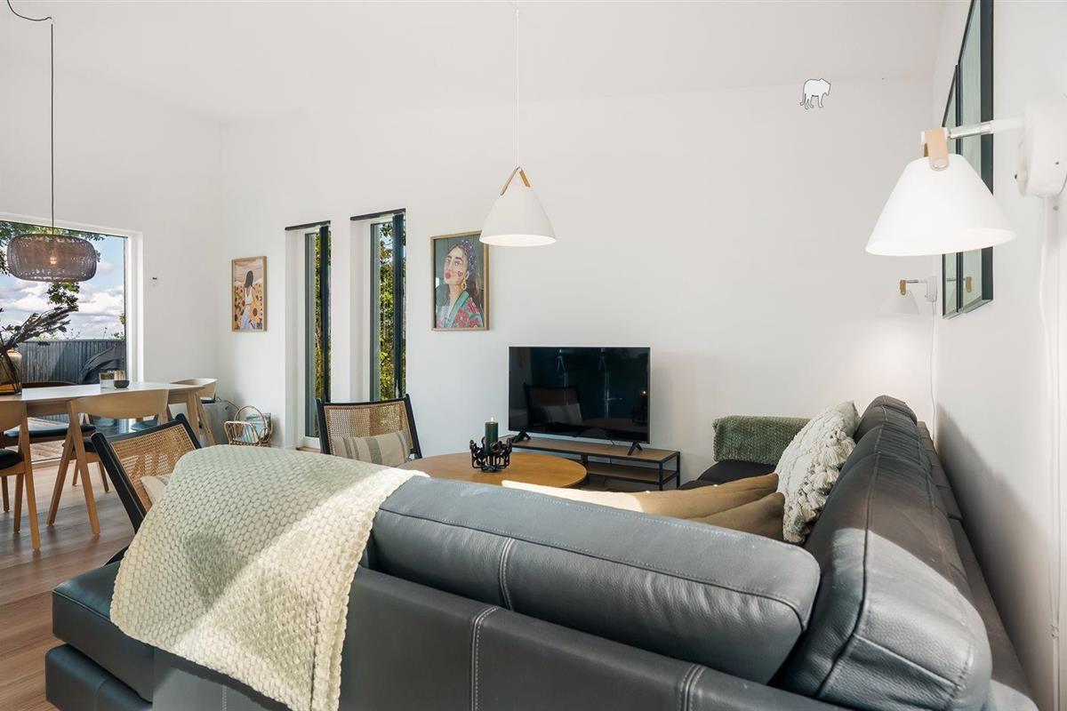 Modern vakantiehuis in Højslev met sauna, bubbelbad en uitzicht op de fjord, vlak bij het water en omgeven door bos.