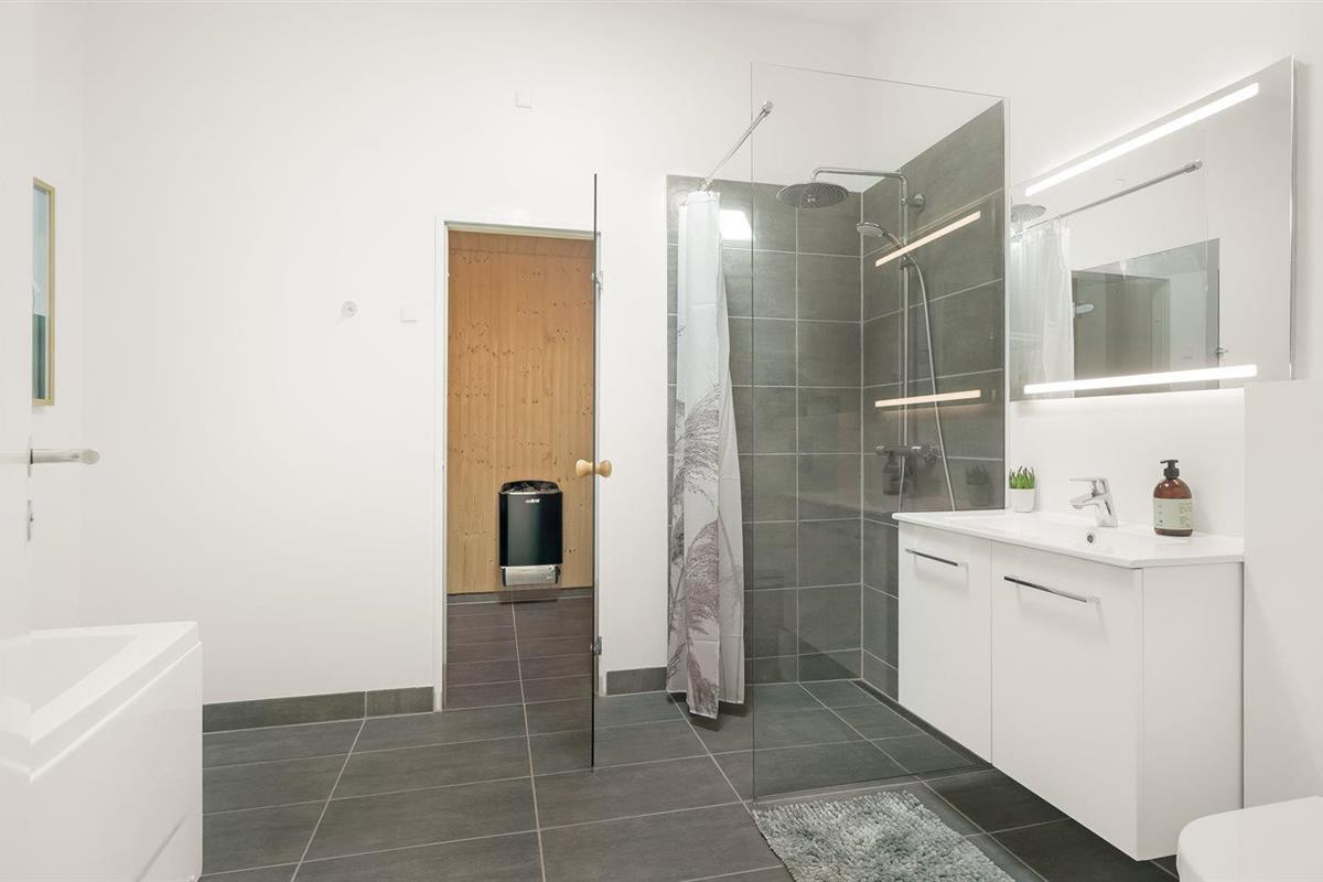 Er is 2 badkamers met douchehok en 2 toiletten. Er is vloerverwarming in 2 van de badkamers. De sauna biedt de gelegenheid tot ontspanning.