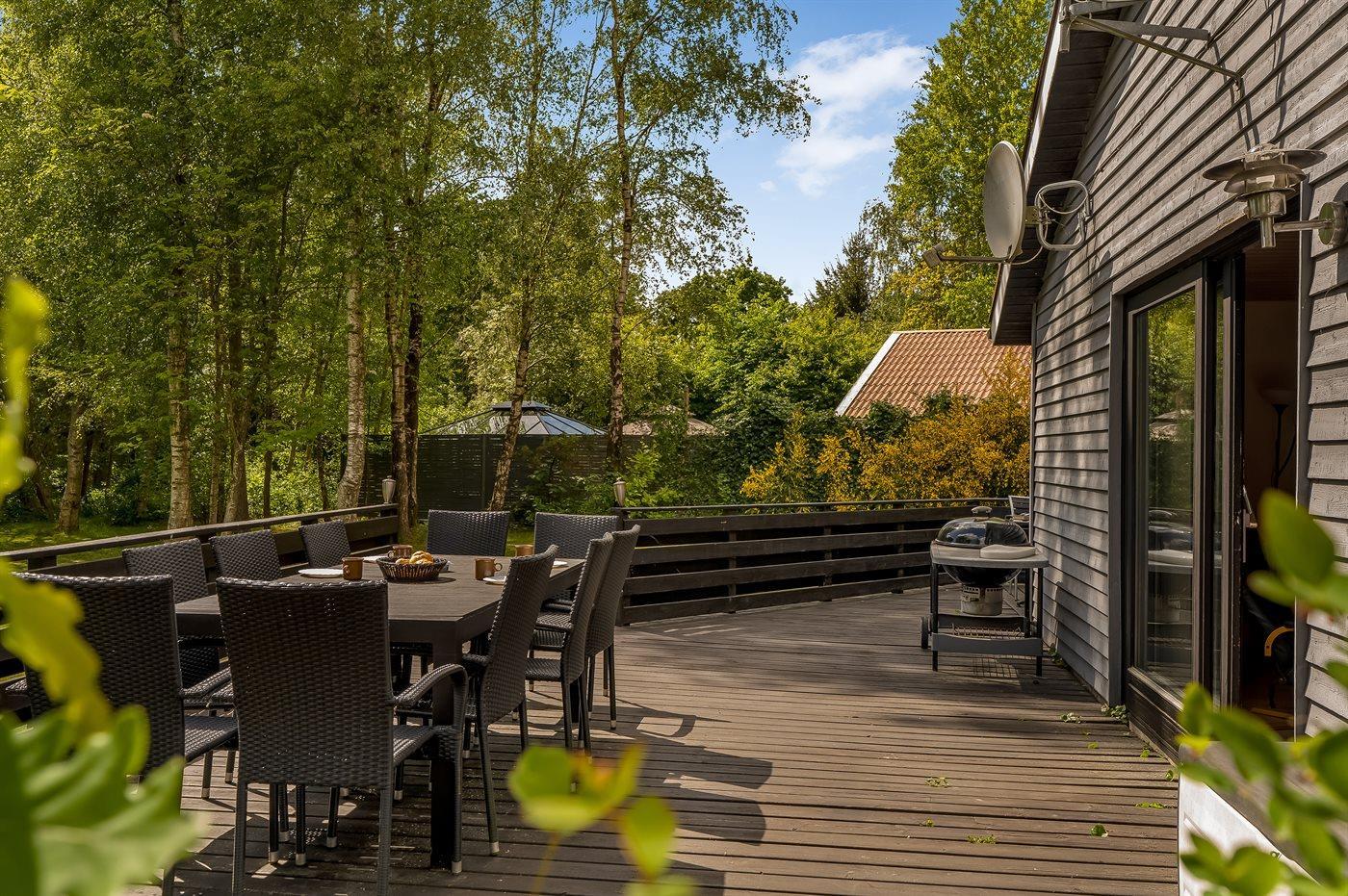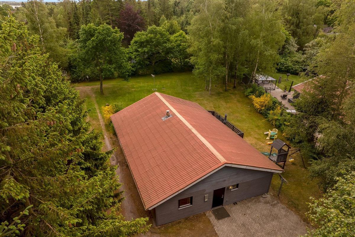 Ruim vakantiehuis in Virksund met sauna, bubbelbad en speeltoestellen op groot terrein.