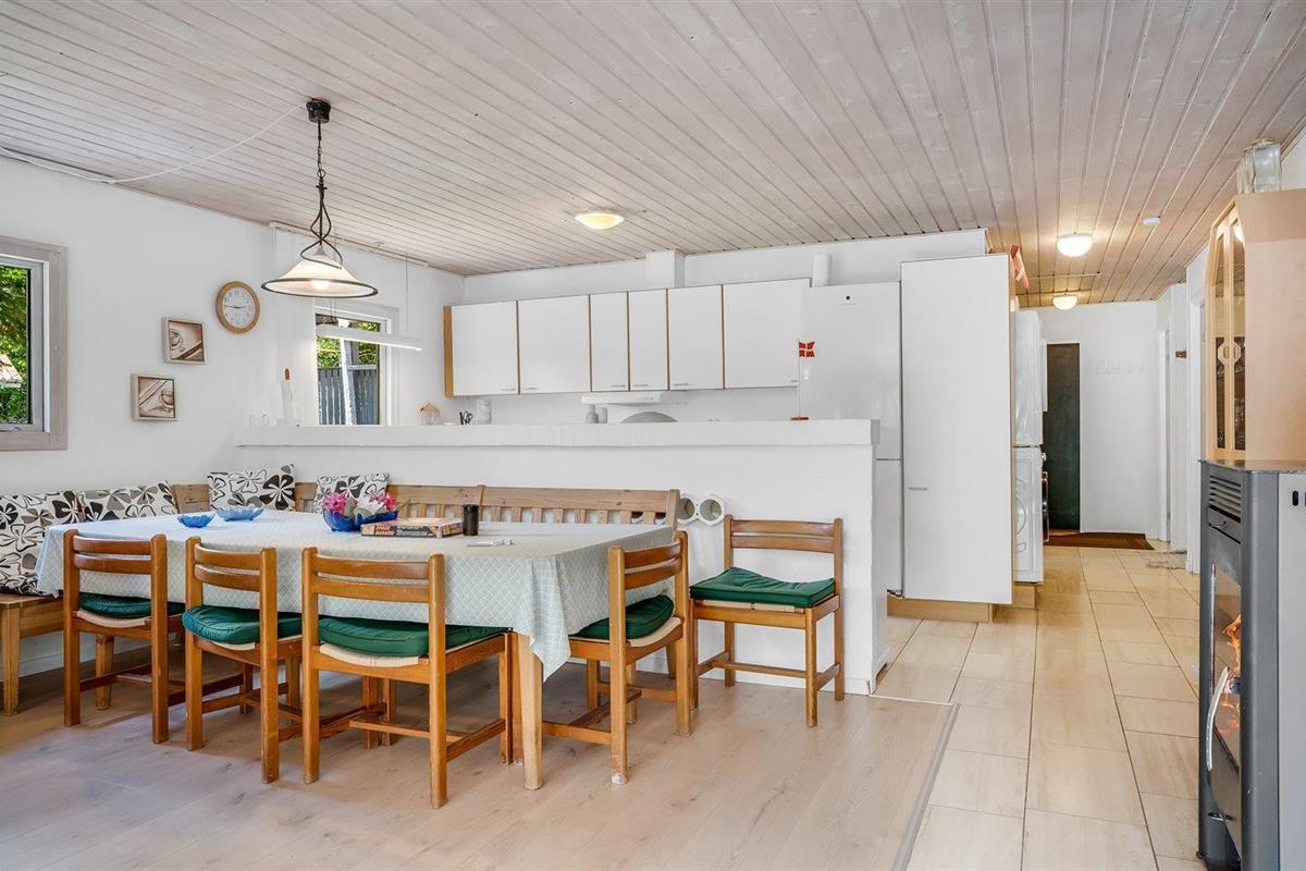 De vakantiewoning is gelegen op een 1250 m² groot natuural grond. Afstand tot de fjord 200 m. Dichtstbijzijnde winkel 750 m. Bij de vakantiewoning hoort 50 m² terras. Schommel. Zandbak. Speeltoren. Glijbaan. Parkeerplaats bij het huis.