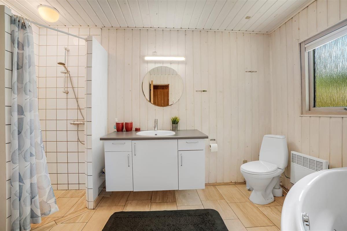 Er is 2 badkamers met douche en 2 toiletten. Er is vloerverwarming in 1 badkamer. De sauna biedt de gelegenheid tot ontspanning.