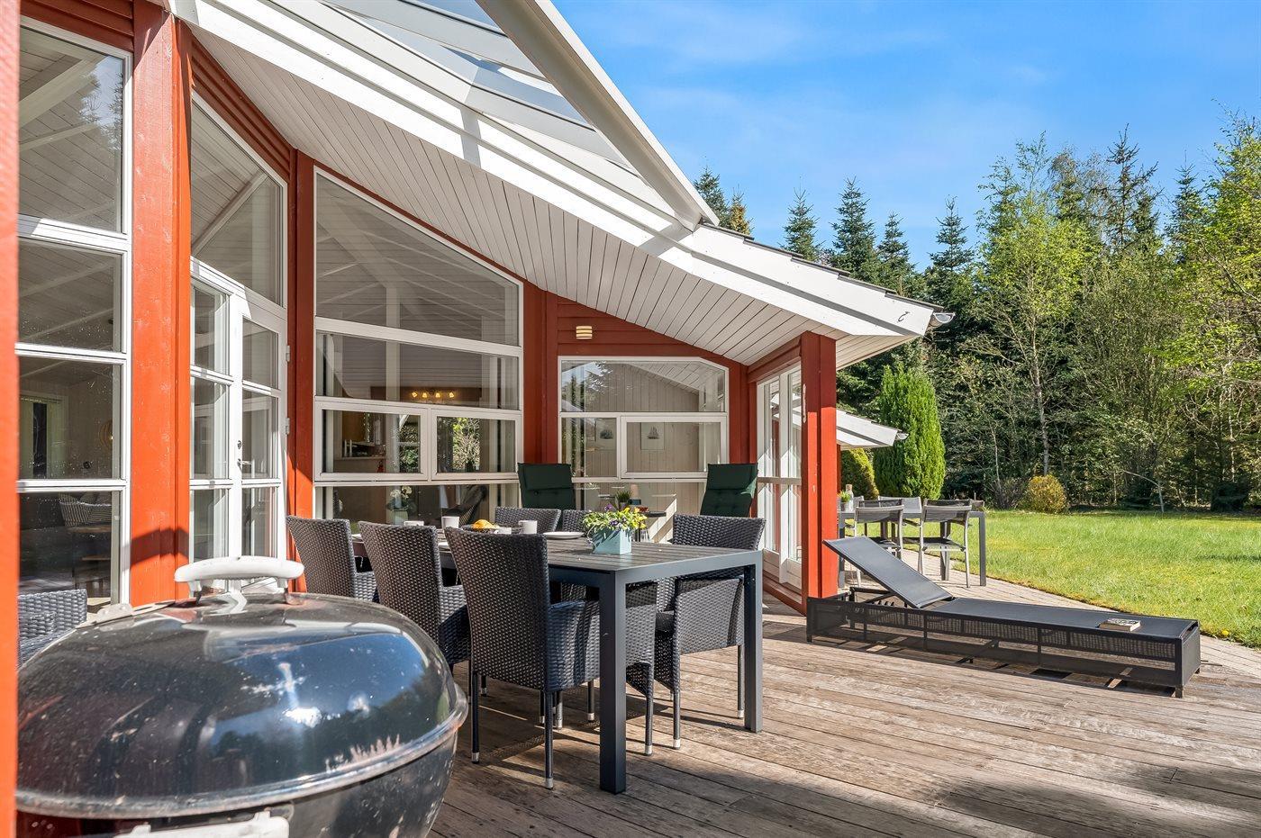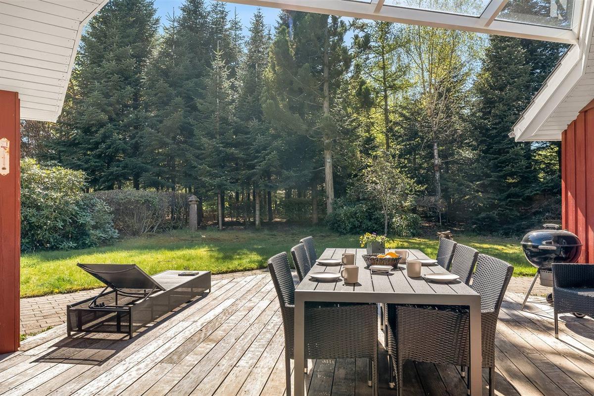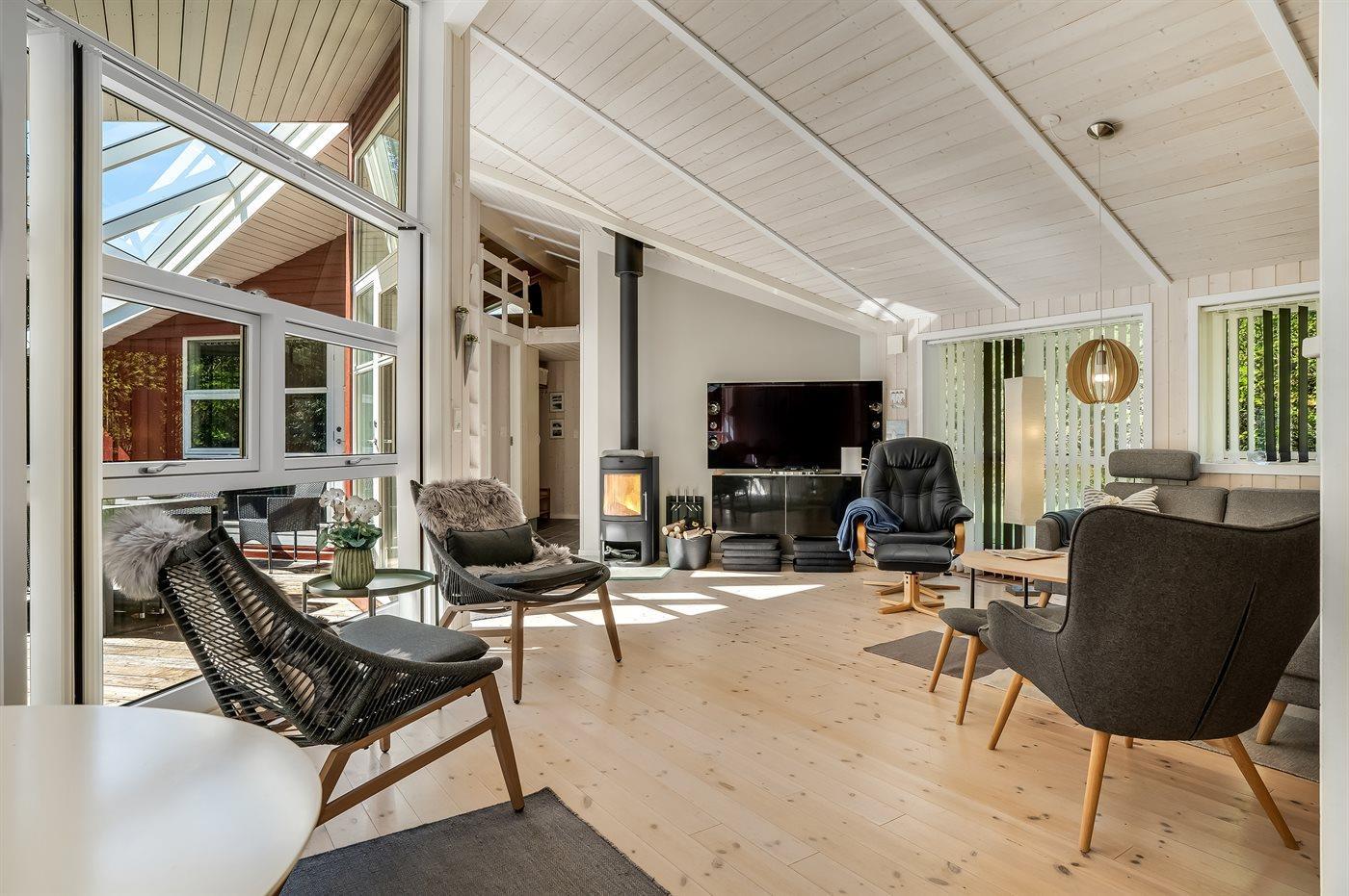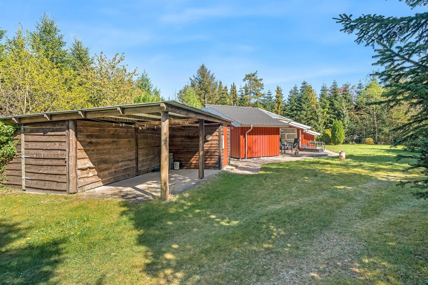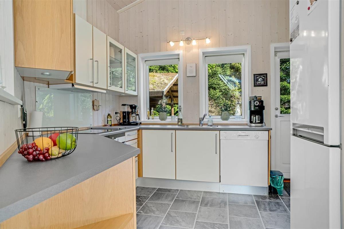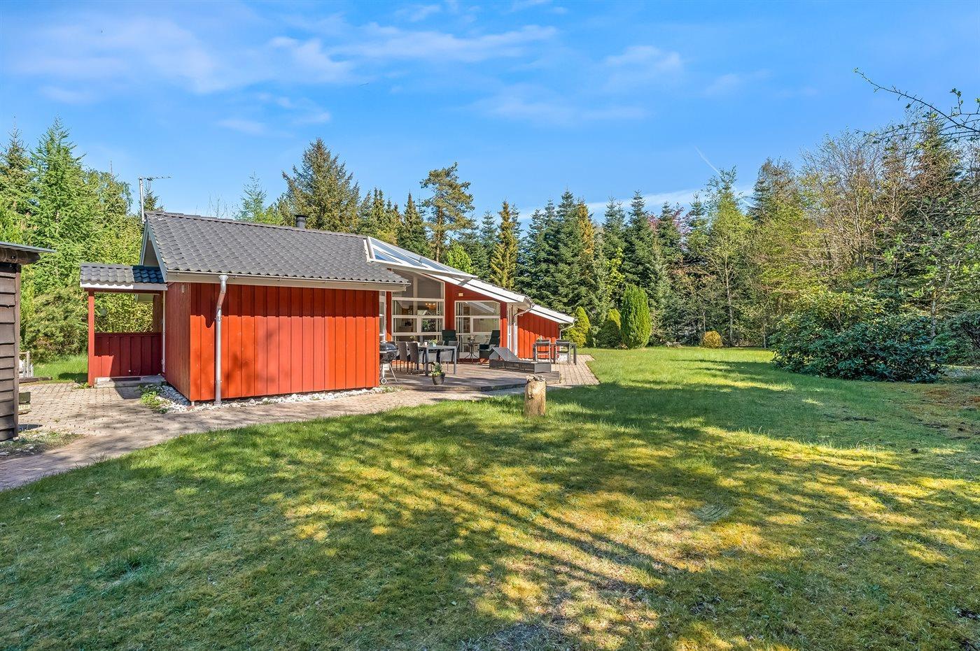 De vakantiewoning is gelegen op een 3228 m² groot grond in bos/park. Afstand tot de fjord 500 m. Dichtstbijzijnde winkel 4000 m. Er is een golfbaan op een afstand van 5000 m. Bij de vakantiewoning hoort terras. Daarnaast is er een overdekt terras. Gereedschapsruimte. Parkeerplaats bij het huis.