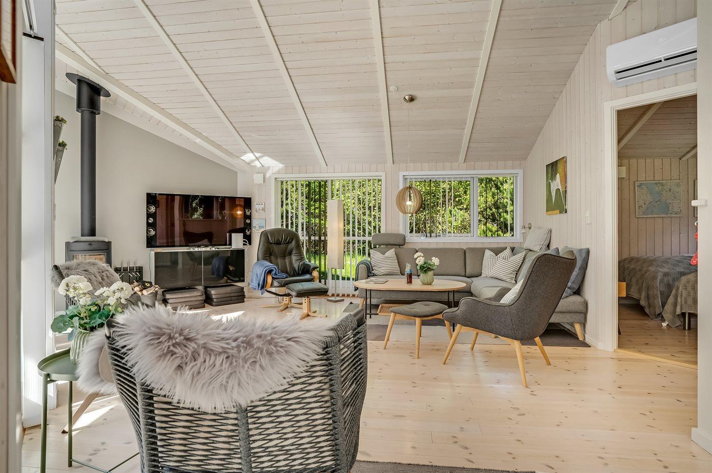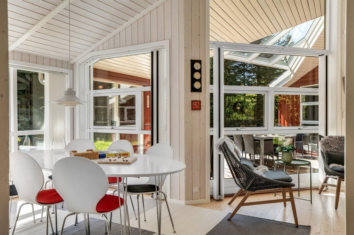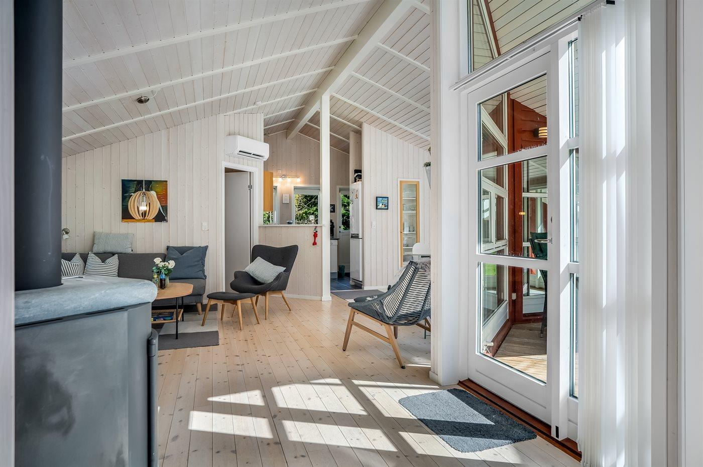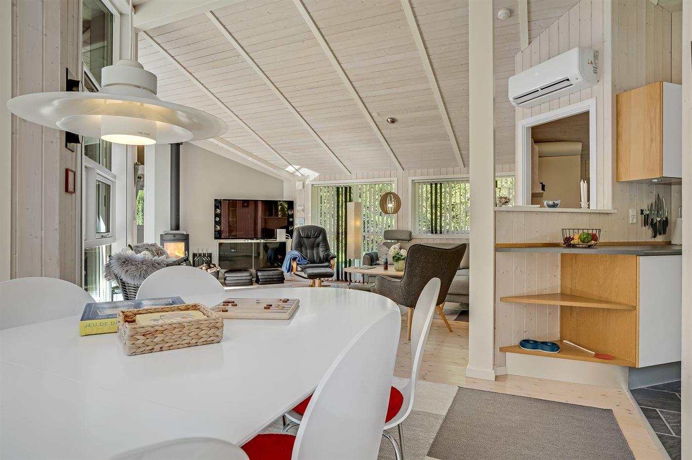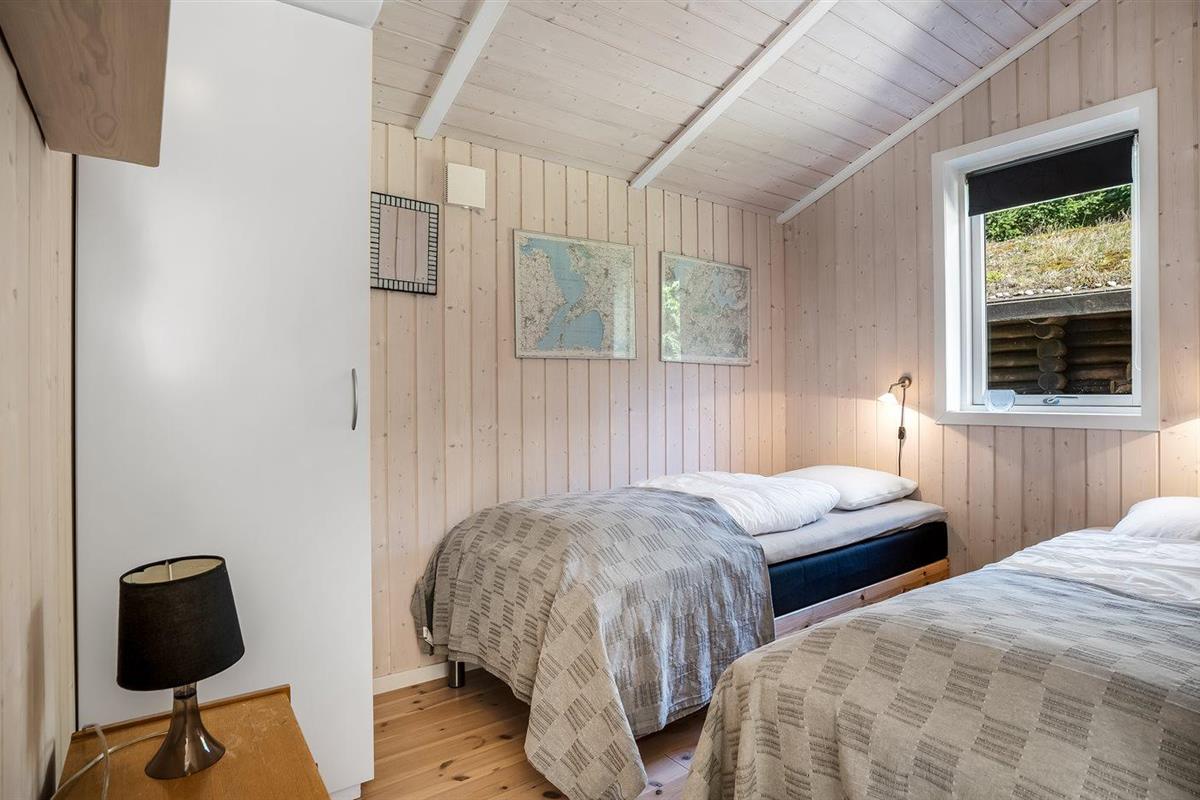 De vakantiewoning is gelegen op een 3228 m² groot grond in bos/park. Afstand tot de fjord 500 m. Dichtstbijzijnde winkel 4000 m. Er is een golfbaan op een afstand van 5000 m. Bij de vakantiewoning hoort terras. Daarnaast is er een overdekt terras. Gereedschapsruimte. Parkeerplaats bij het huis.