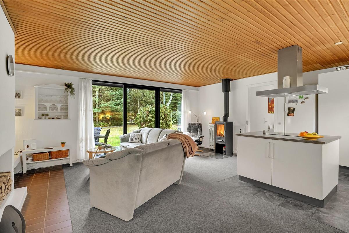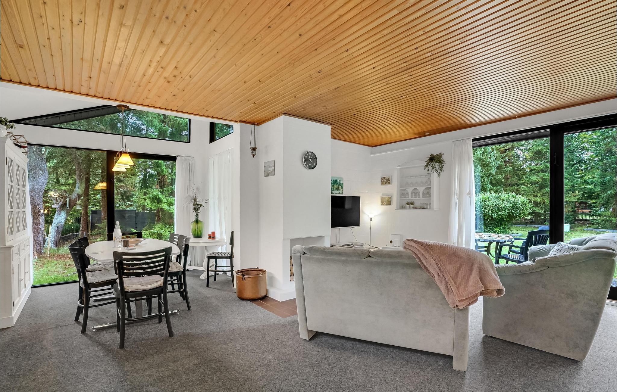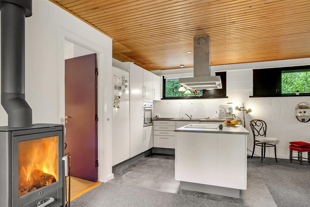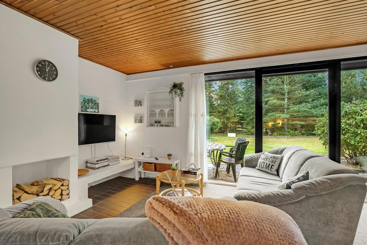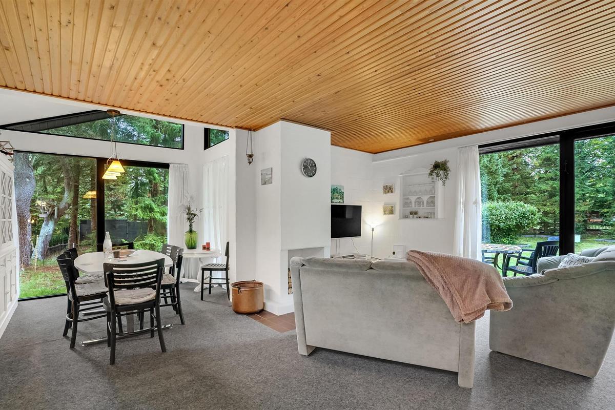 Dit goed uitgeruste vakantiehuis ligt op een mooi natuurperceel omgeven door bomen. Het lichte interieur maakt een verzorgde, warme indruk. Profiteer van de vele ramen in de woonkamer, die zelfs op bewolkte dagen veel licht binnenlaten. Geniet van je vakantiemaaltijden met uitzicht op het groen en ontspan 's avonds voor de houtkachel.