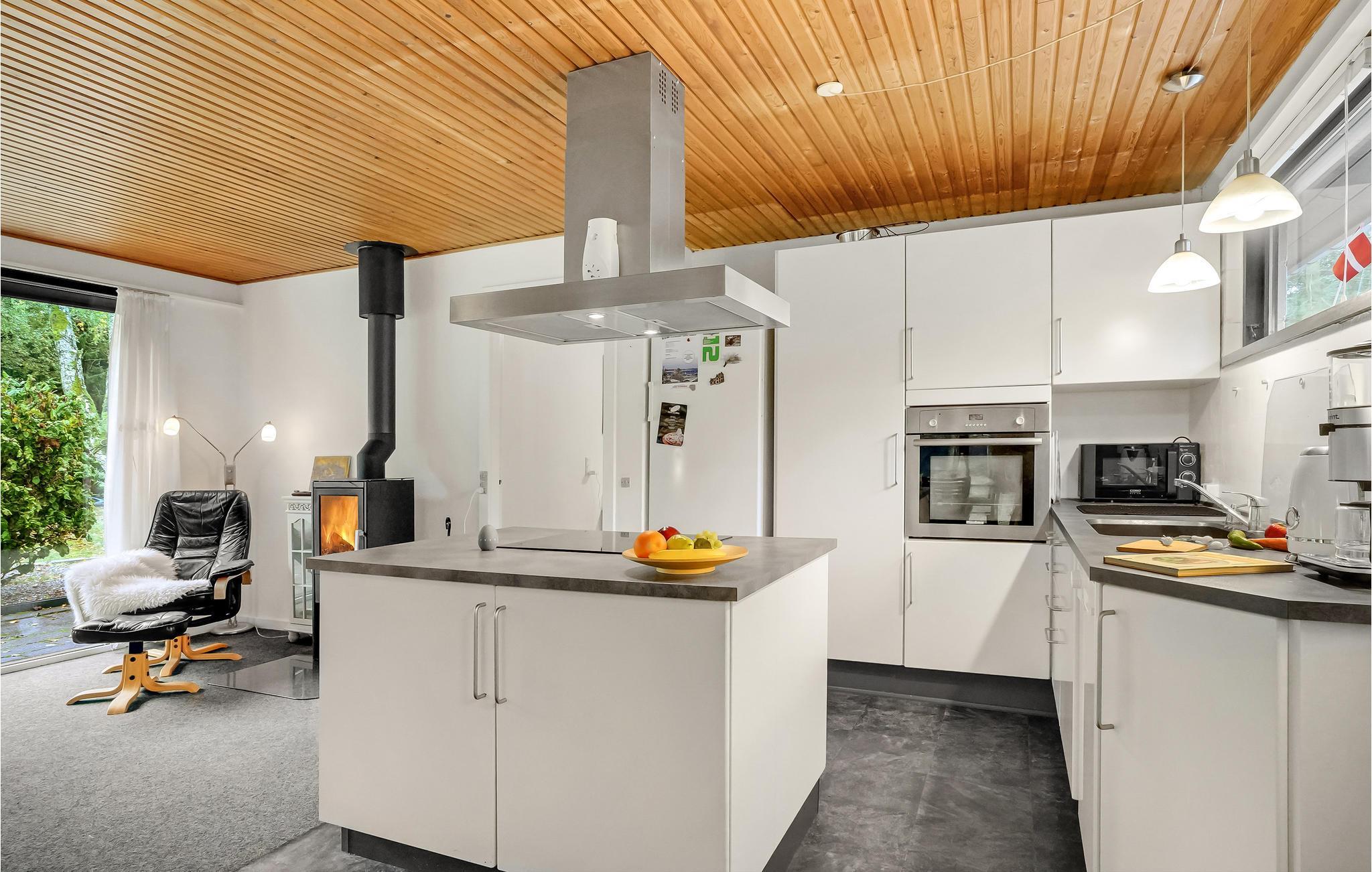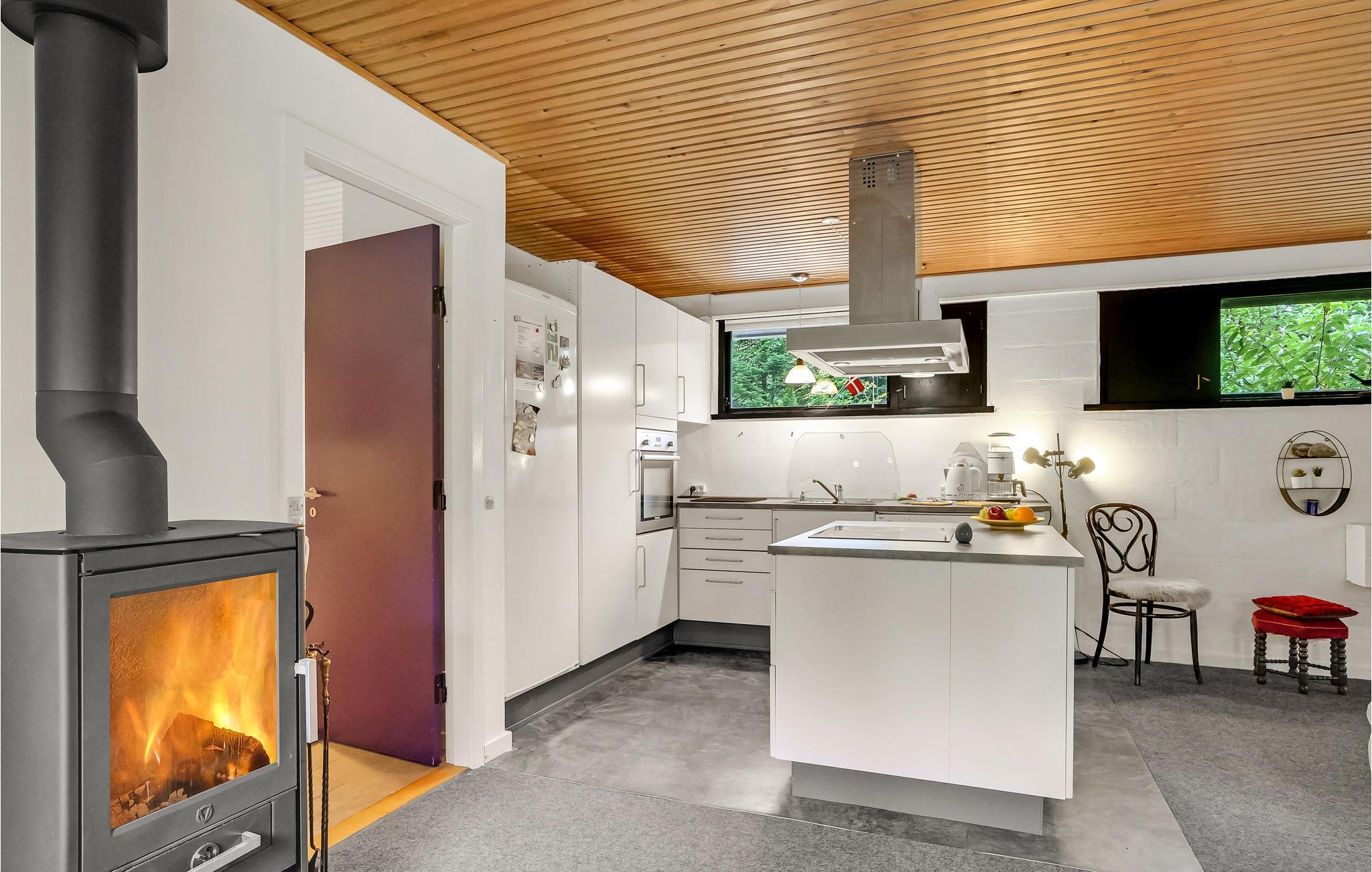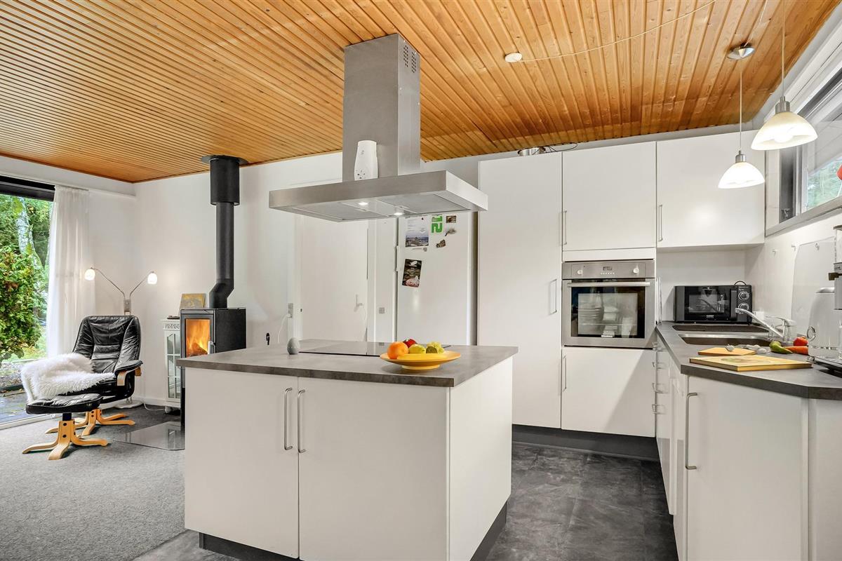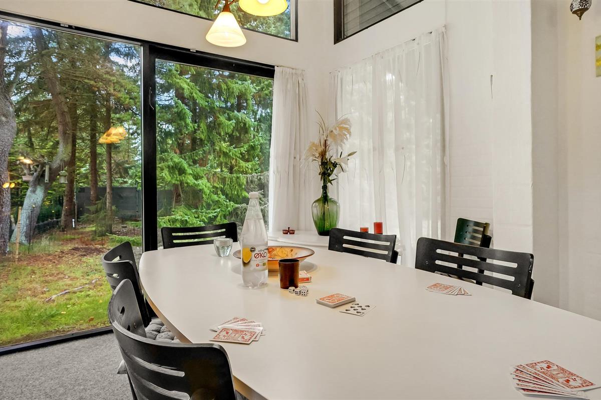 Dit goed uitgeruste vakantiehuis ligt op een mooi natuurperceel omgeven door bomen. Het lichte interieur maakt een verzorgde, warme indruk. Profiteer van de vele ramen in de woonkamer, die zelfs op bewolkte dagen veel licht binnenlaten. Geniet van je vakantiemaaltijden met uitzicht op het groen en ontspan 's avonds voor de houtkachel.
