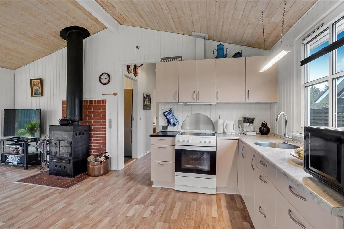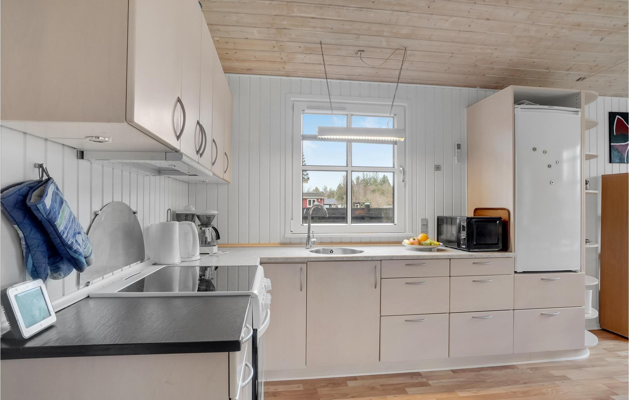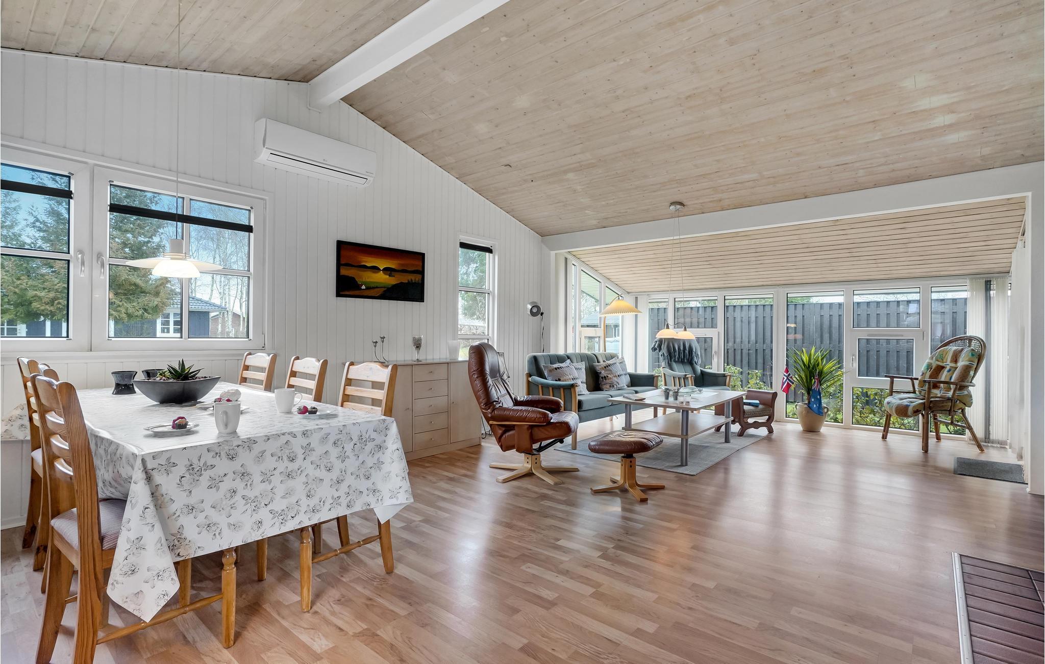 Bent u op zoek naar rust en ontspanning in de vredige omgeving van een rustig vakantieoord? Dan is dit mooie vakantiehuis precies het juiste adres voor u. Midden in het dorp Virksund verwelkomt dit mooie vakantiehuis u en biedt u en uw geliefden alles wat u nodig heeft om u goed te voelen. De lichte woonkamer zal uw familie ontmoetingspunt zijn, want het combineert koken, eten, spelen en ontspannen, en op koelere dagen ook een verwarmende open haard.