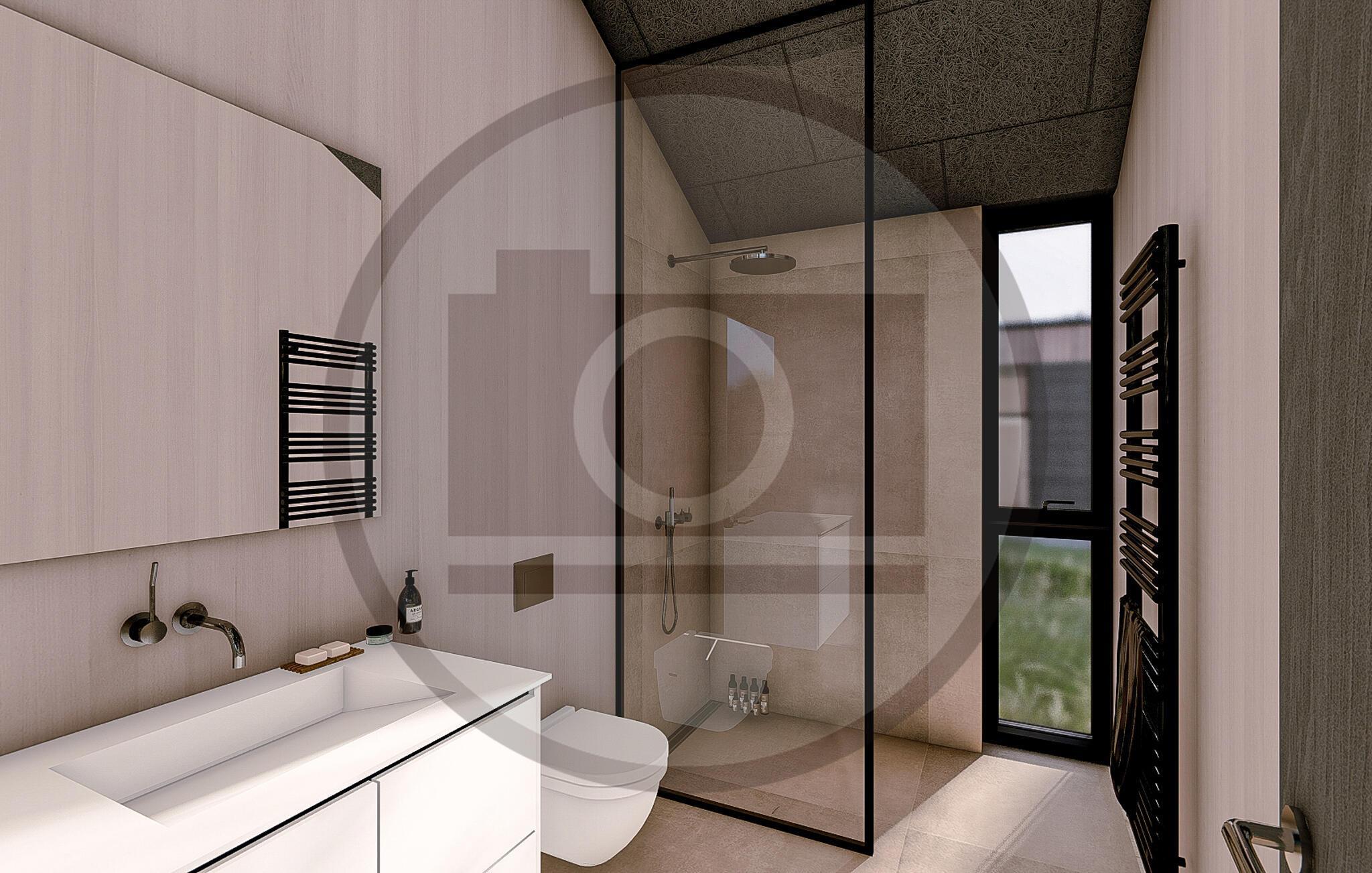 Badkamer (nr. 1) - Toilet: warm en koud water. Douche