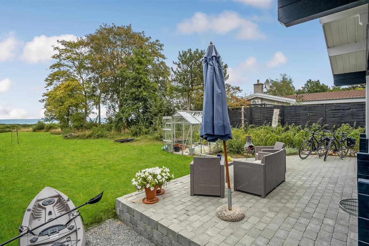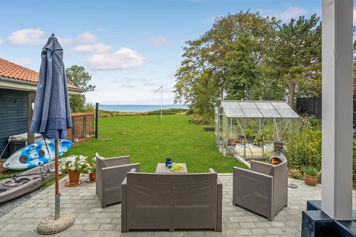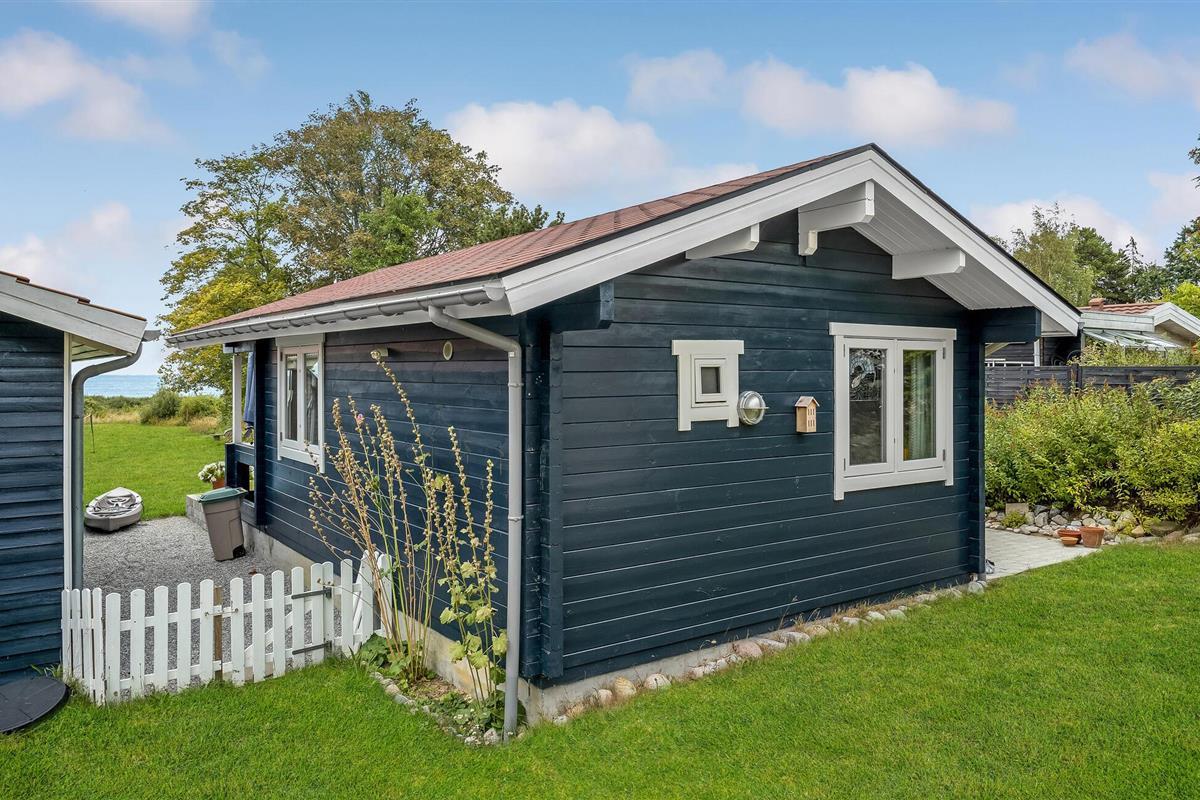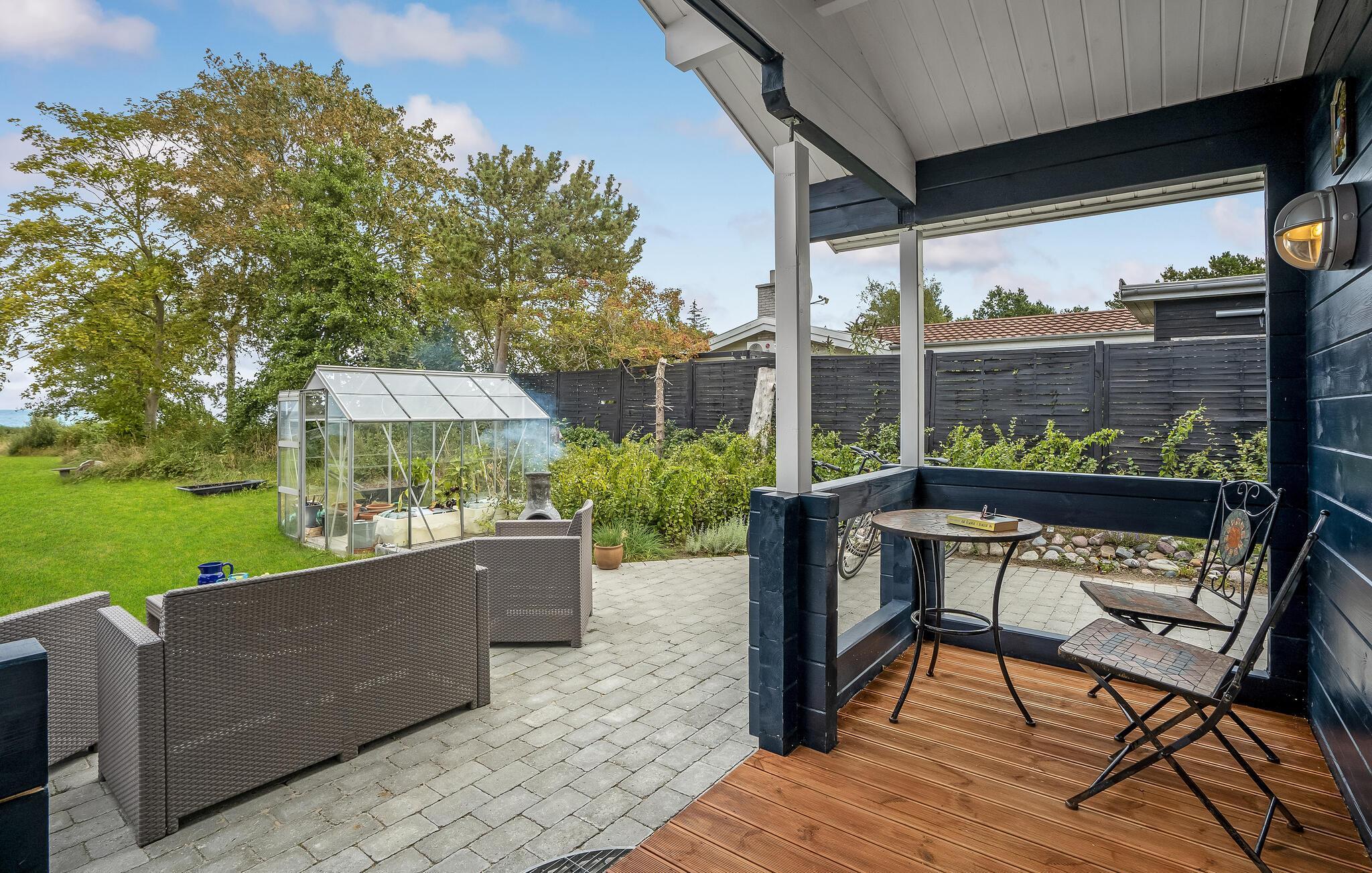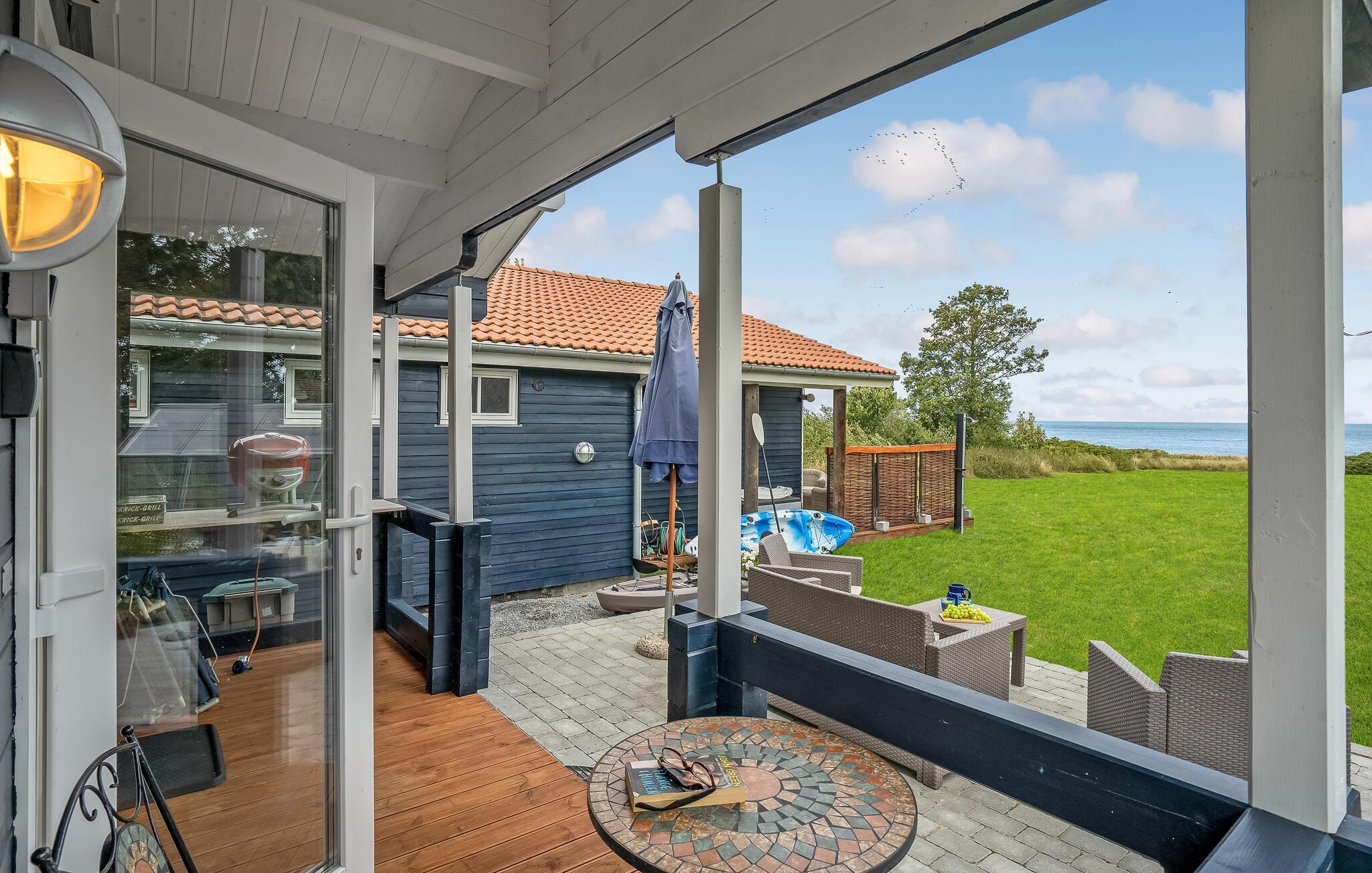 Ontspan in een stijlvol houten vakantiehuis met zeezicht aan het kiezelstrand van Vollerup.