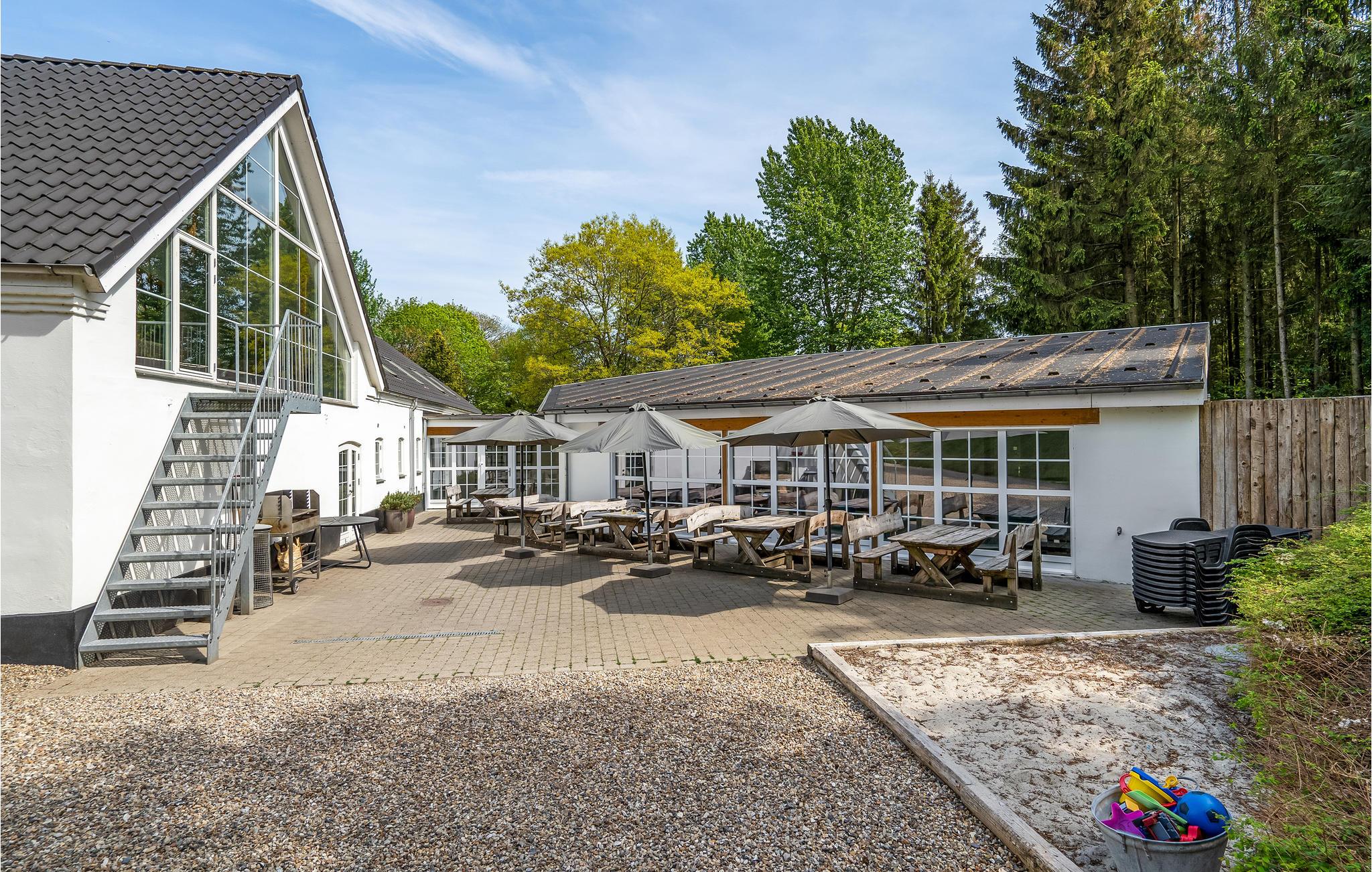 Hier brengt u uw vakantie door in een authentieke omgeving. In een Deens landhuis, samen met familie of vrienden. Accommodatie Nebelgård maakt uw vakantiedroom waar. Het is een unieke vakantiebestemming in een landelijke omgeving. De oude stallen, de schuur en de hooizolder bieden u uitstekende accommodatie op 950 m² sinds de renovatie in 2009. Er is een groot zwembad met glijbaan, whirlpool en sauna. De speelkamer heeft tafeltennis, PlayStation, tafelvoetbal en meer. Er is ook een minibioscoop met bioscoopstoelen en een groot scherm. De grote schuur herbergt een woonkamer van 200 m² met een grote tafel waar alle bewoners kunnen zitten. Er zijn ook verschillende zithoeken, een pooltafel en een 50" flatscreen-tv. De keuken is professioneel uitgerust met 8 kookplaten, 2 ovens, 2 koelkasten, een vrieskast en 2 vaatwassers. In het stalgebouw bevinden zich de tweepersoons slaapkamers, de badkamers en een salon met raam. Er is ook een bijkeuken met wasmachine en droger. Buiten wacht een prachtige tuin met zitjes om te genieten van romantische zomeravonden bij kaarslicht. De boerderij ligt in een rustige omgeving die uitnodigt tot het maken van mooie wandelingen. Er is ook een meer op het grote natuurlijke perceel, waar u wilde dieren kunt bekijken. Een prachtig vakantiehuis in de ongerepte natuur.