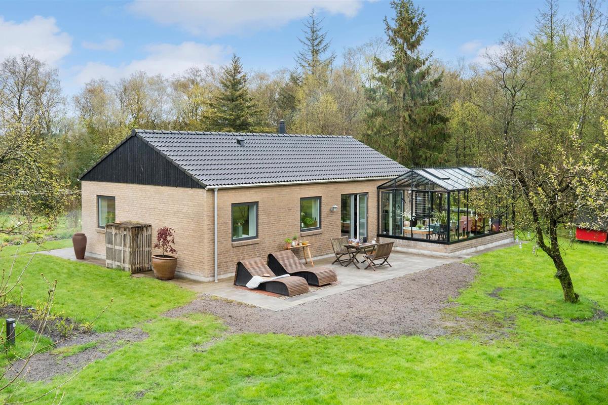 Idyllisch gelegen in het hart van Jutland, verwelkomt dit comfortabele en gezinsvriendelijke vakantiehuis je met een prachtige tuin en serre.