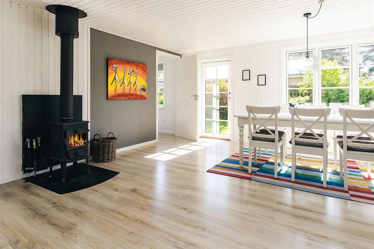 Draußen laden ein großer Garten und eine Terrasse zum Entspannen und Spielen ein. Genießen Sie die Sonne auf zwei Liegestühlen, essen Sie auf den Gartenmöbeln oder grillen Sie eine köstliche Mahlzeit auf dem Holzkohlegrill. Kinder können sicher im Sandkasten spielen, und eine begrenzte Anzahl von Fahrrädern steht nach vorheriger Anmeldung zur Verfügung. Das Haus wird mit energieeffizienten Wärmepumpen und einem Holzofen beheizt, sodass auch an kühleren Tagen eine gemütliche Atmosphäre herrscht.