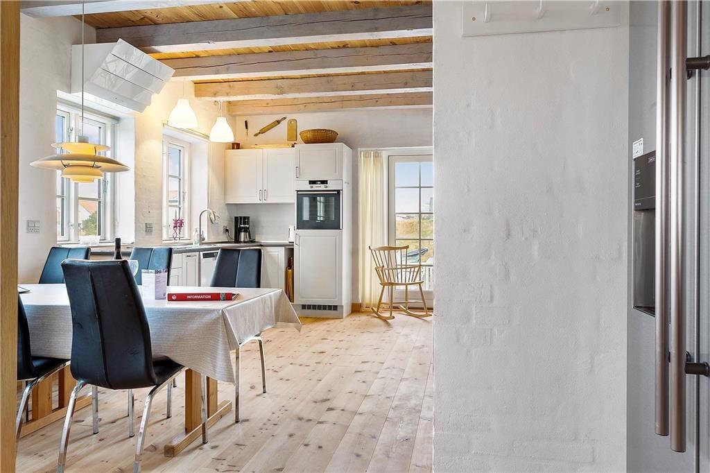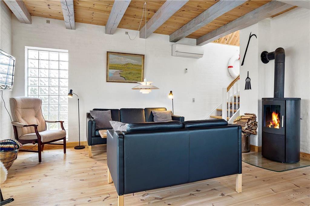 Beim Betreten des Ferienhauses auf Fiskervej 7 wirst du von einer warmen und einladenden Atmosphäre begrüßt. Das gemütliche Wohnzimmer mit Kamin bietet den perfekten Rahmen für gemütliche Stunden, sei es bei einem guten Buch, Spielen mit der Familie oder einfach beim Betrachten des tanzenden Feuers. Die gut ausgestattete Küche macht es einfach, leckere Mahlzeiten zuzubereiten, während der geräumige Essbereich zu langen, geselligen Abendessen einlädt. Nach einem erlebnisreichen Tag kannst du dich im hauseigenen Wellnessbereich mit Whirlpool und Sauna verwöhnen – der perfekte Abschluss eines Tages voller Entdeckungen.