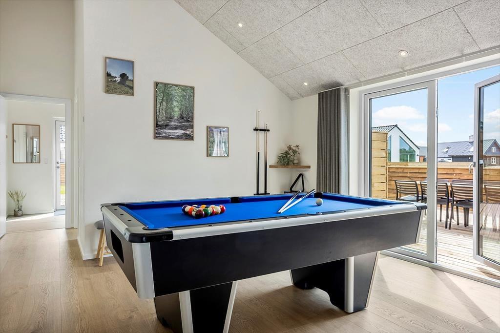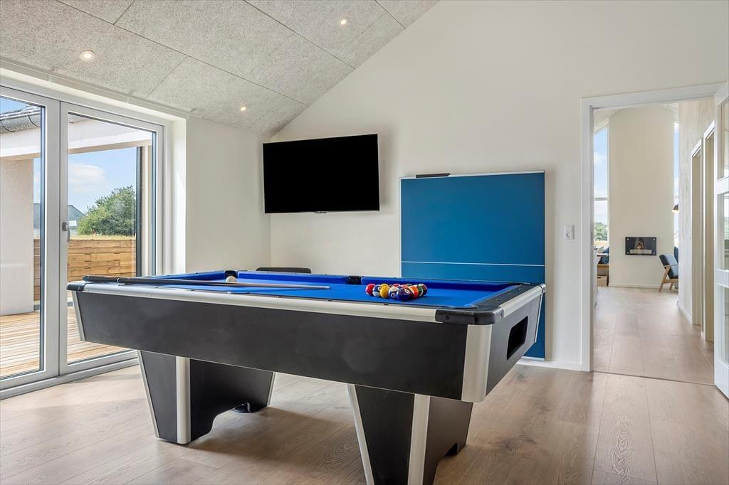 Tritt ein in dieses stilvoll eingerichtete Ferienhaus, wo helle und geräumige Umgebungen dich willkommen heißen. Große Fenster durchfluten das Wohnzimmer mit natürlichem Licht und schaffen eine warme und einladende Atmosphäre. Im Aktivitätsraum kannst du bei unterhaltsamen Spielen wie Tischtennis und Billard entspannen, was diesen Raum ideal für Erholung und Unterhaltung macht. Die sorgfältig ausgewählte Einrichtung und komfortablen Annehmlichkeiten machen dieses Ferienhaus perfekt für einen unvergesslichen Urlaub.