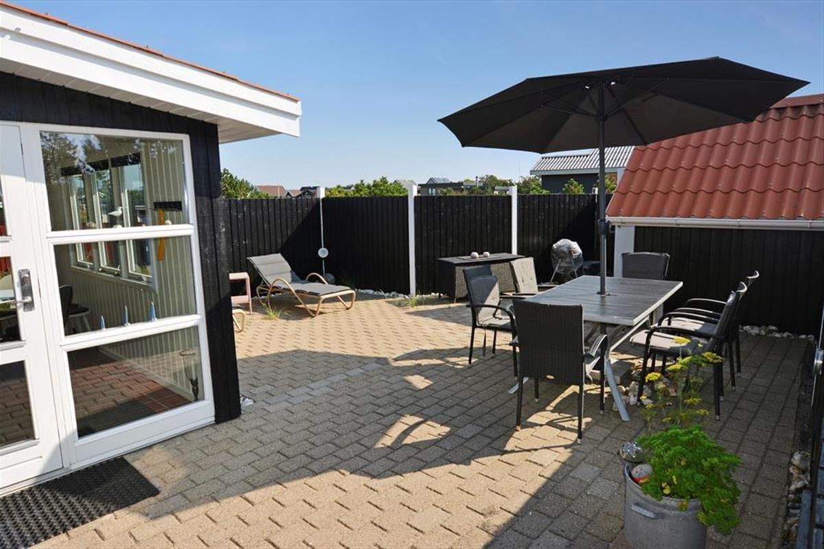 Draußen erwartet Sie die große, komplett eingezäunte Terrasse, auf der Sie das Leben im Freien ungestört genießen können. Die Terrasse lädt die ganze Familie zu Spiel und Entspannung ein. Es gibt reichlich Platz, um die Sonne zu genießen, mit Familie und Freunden zu grillen oder in einer ruhigen Ecke die Stille auf sich wirken zu lassen. Der große Wintergarten öffnet sich zur Terrasse und schafft einen natürlichen Übergang zwischen Innen- und Außenleben, was den Urlaub besonders angenehm macht – unabhängig vom Wetter.