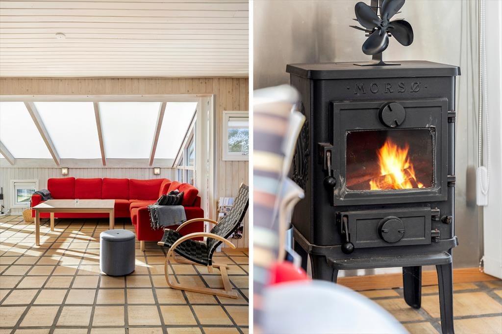 Tritt ein in dieses gut eingerichtete Ferienhaus mit einem großen, hellen Wohn-/Essbereich, der zum Verweilen einlädt. Küche und Wohnzimmer verschmelzen zu einem einladenden Raum, wo das gemeinsame Kochen und Beisammensein zum Erlebnis werden. Dank des Holzofens und der Wärmepumpe herrscht hier das ganze Jahr über ein angenehmes Klima – und besonders die kühleren Abende lassen sich gemütlich am knisternden Holzofen genießen. Eine besondere Ergänzung ist das neu gebaute Anbau mit Doppelbett, ideal für Gäste oder ältere Kinder, die etwas Privatsphäre wünschen.
