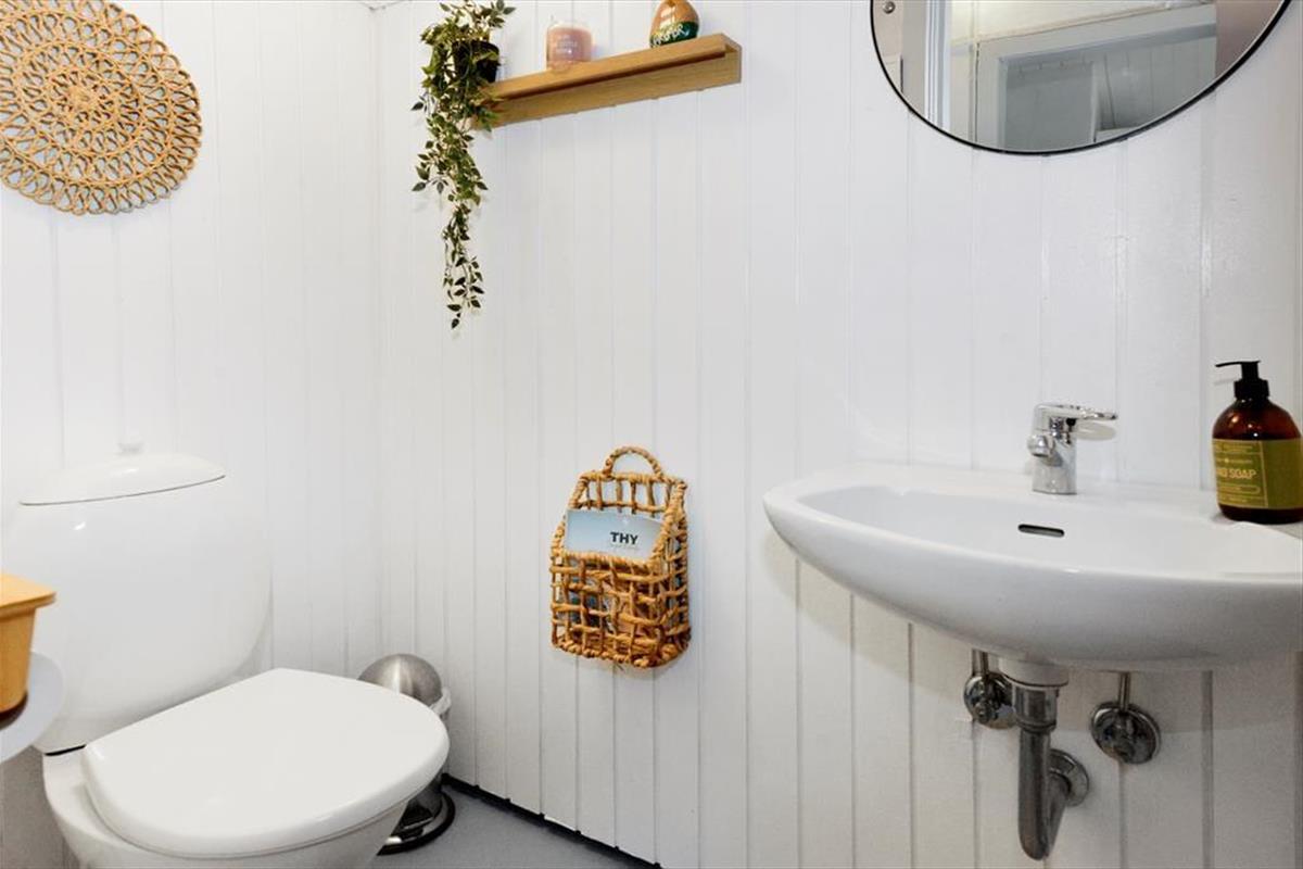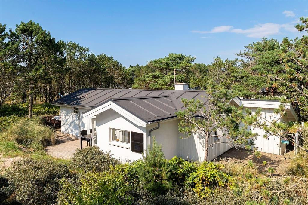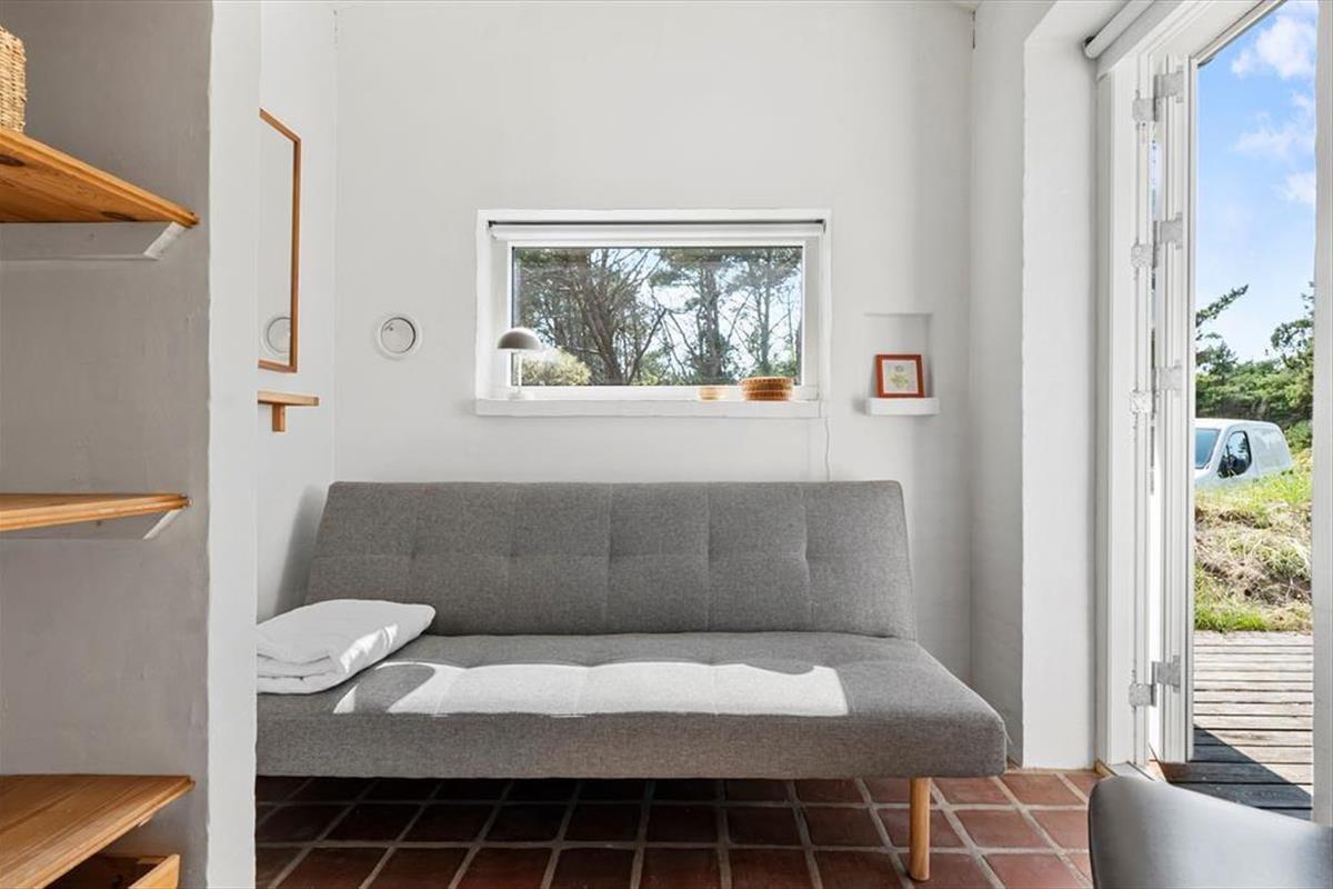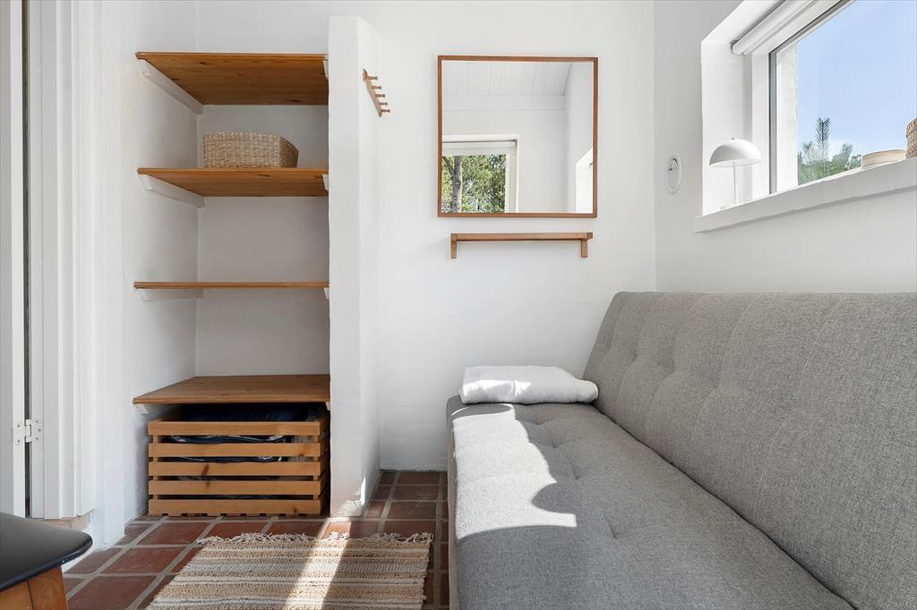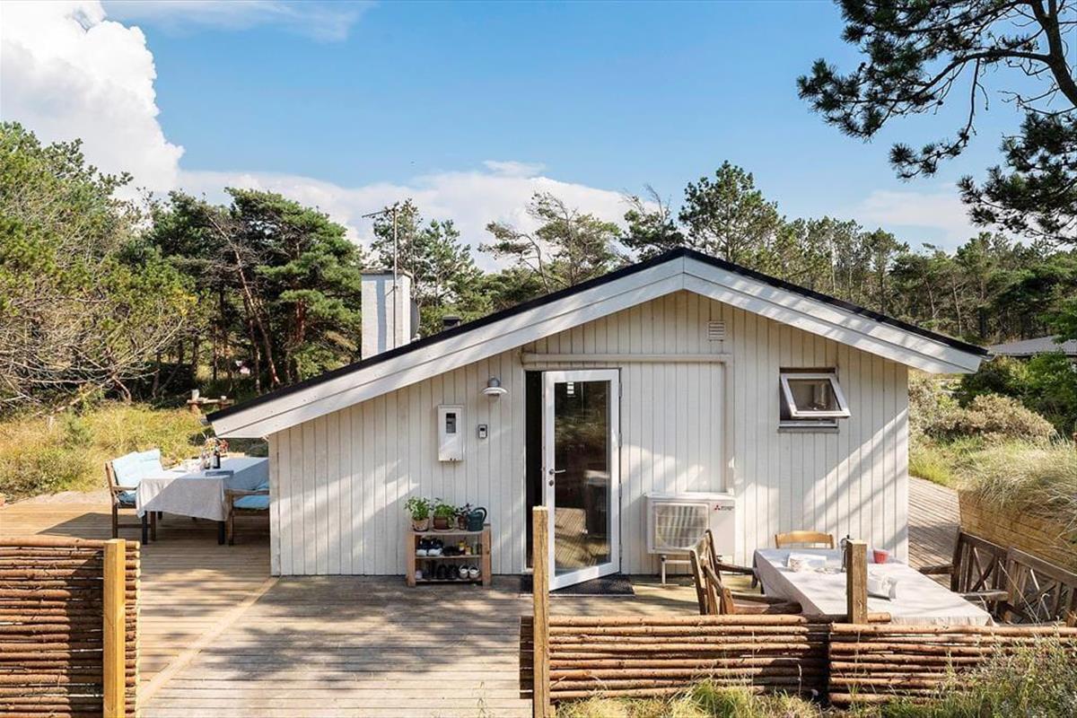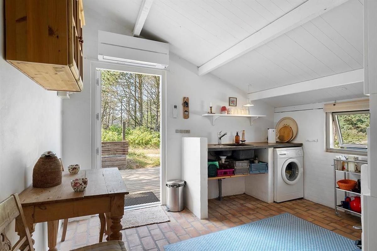 Draußen erwarten dich neu angelegte Terrassenflächen, die sowohl Sonnenliebhaber als auch Schattensucher glücklich machen. Ob Frühstück im Freien, ein gutes Glas Wein am Abend oder einfach ein Buch in der Nachmittagssonne – hier findest du immer einen Platz für dich. Die umliegende Natur sorgt für Ruhe und Privatsphäre, während du die typische Dünenlandschaft von Vorupør Klit genießt. Die Terrasse wird schnell zum Lieblingsplatz – vielleicht mit einer Decke um die Schultern und dem Klang der Natur im Ohr.