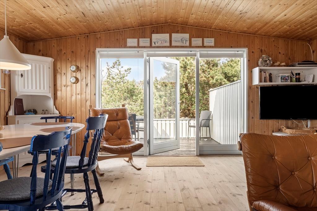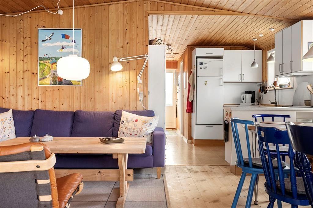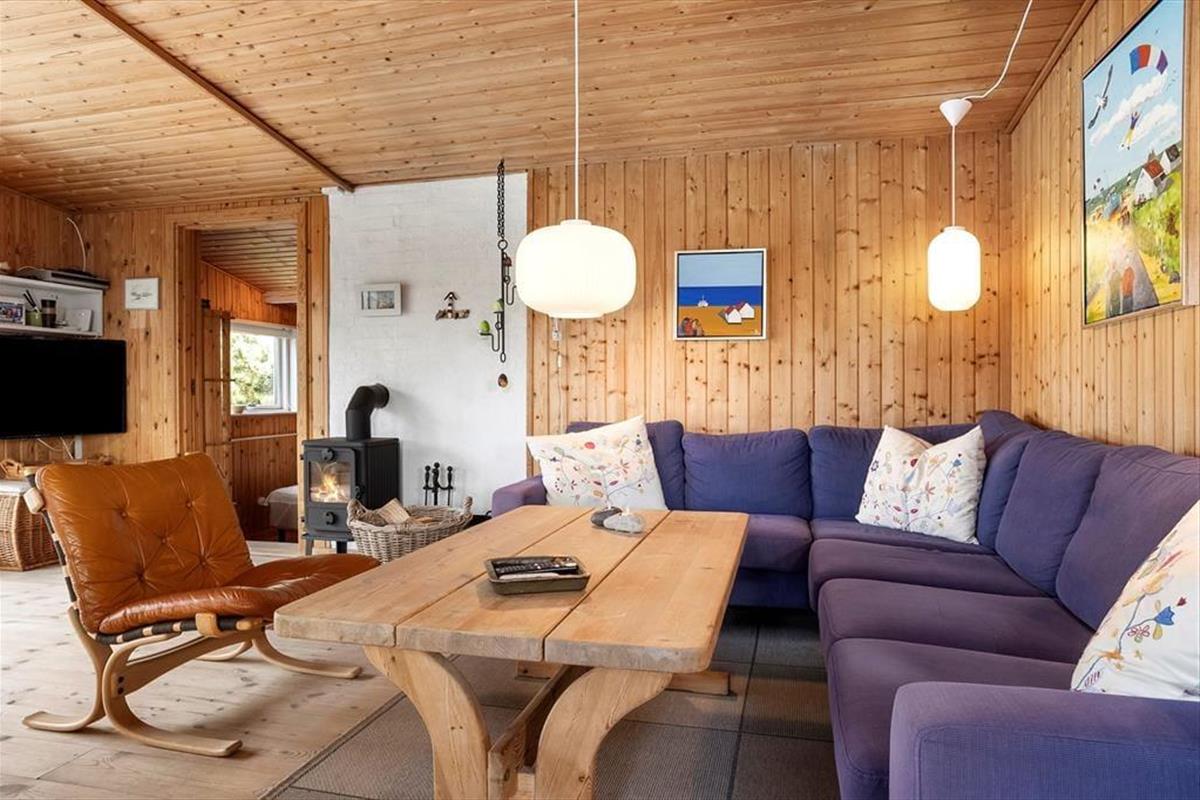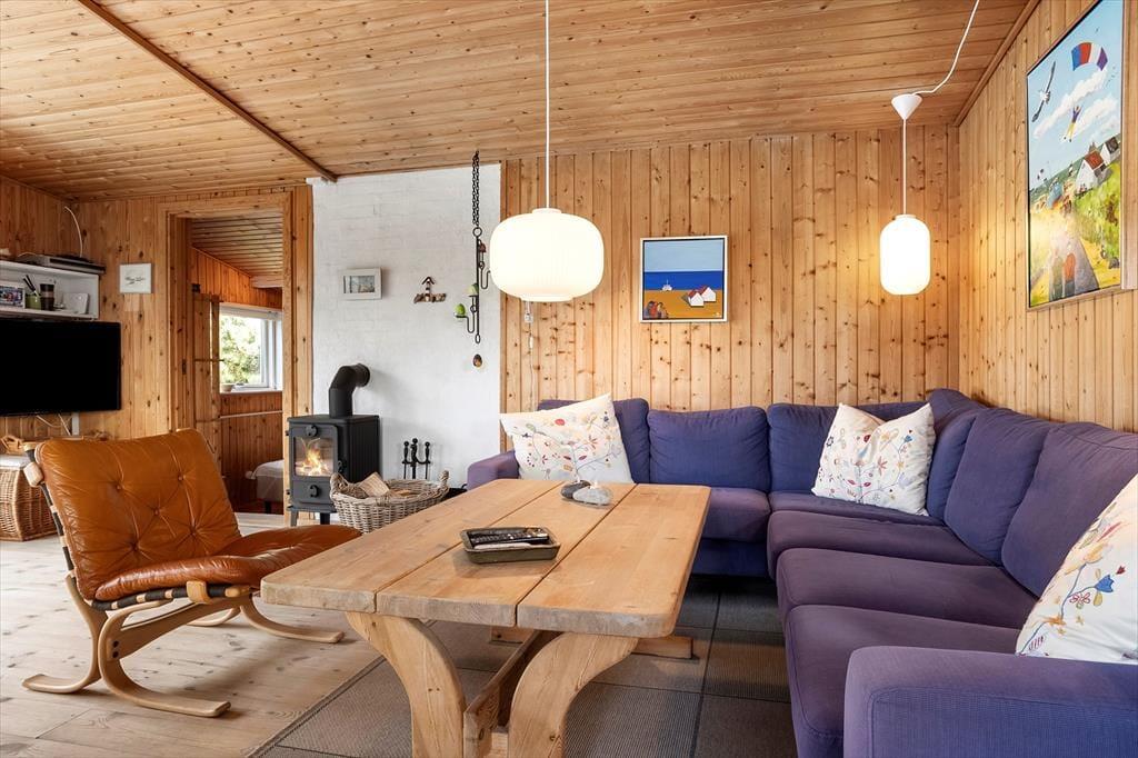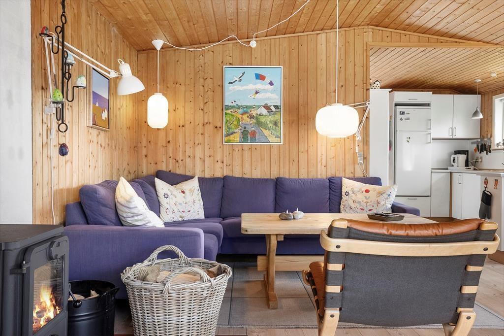 Wenn du die Tür zu „Holfri“ in der Nordsøvej 50 öffnest, trittst du gleichzeitig in eine Atmosphäre von Ruhe, Wärme und Urlaubsgefühl ein. Hier erwartet dich kein protziges Luxushaus und keine übertriebenen Lösungen – im Gegenteil: Gerade die Schlichtheit und der Charme machen dieses Ferienhaus so besonders. Das helle Wohnzimmer empfängt dich mit weichen Möbeln und einem knisternden Holzofen, der an kühlen Abenden Wärme spendet und zu Gemeinschaft, Gesprächen und Kartenspielen einlädt. Das Haus strahlt eine gemütliche und entspannte Atmosphäre aus, bei der Nähe und Zusammenhalt wichtiger sind als übermäßiger Komfort – und genau das macht es so angenehm. Ob mit einem guten Buch, bei einem Brettspiel mit den Kindern oder einfach beim ziellosen Dahintreiben – hier findest du zur Ruhe. Das Ferienhaus verströmt eine heimelige Stimmung, bei der sich deine Schultern wie von selbst entspannen – und du dich vom ersten Urlaubsmoment an rundum wohlfühlst.