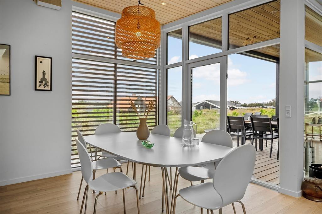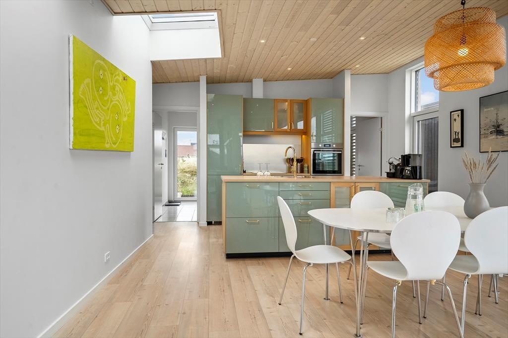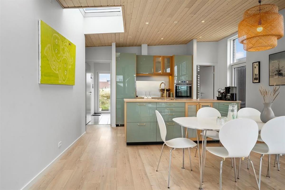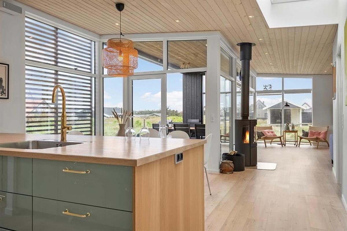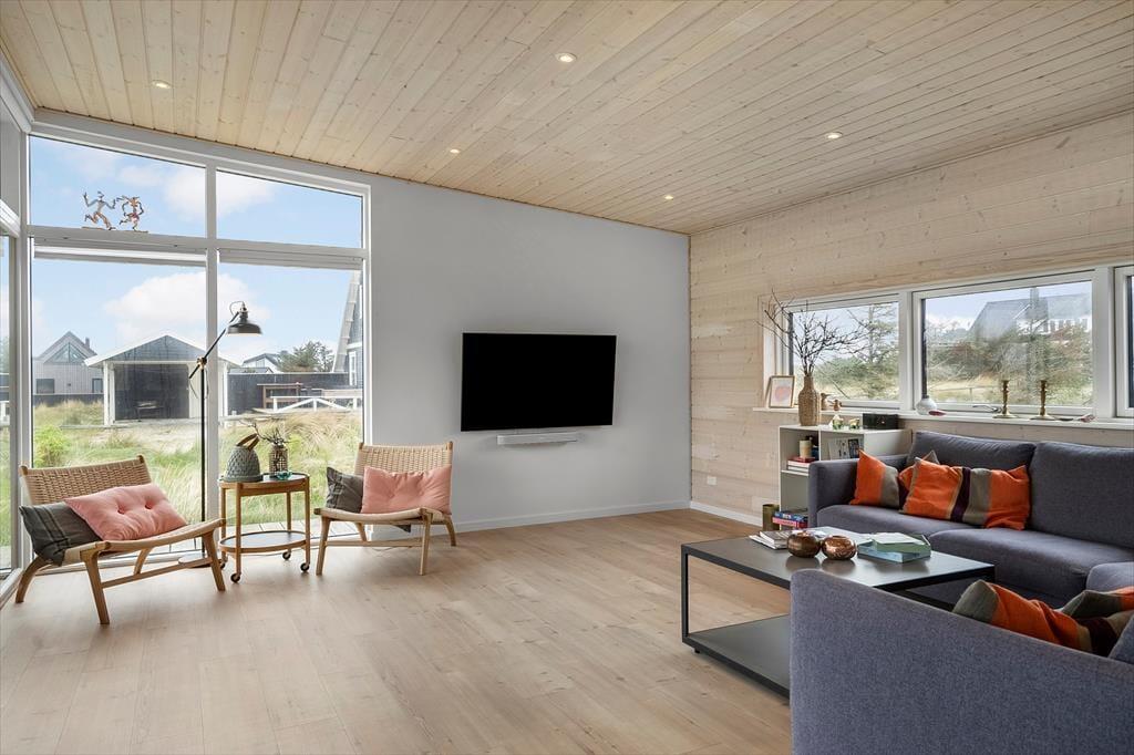 Das Ferienhaus in der Havbovej 15 in Vorupør hat etwas ganz Besonderes an sich. Mit seinem modernen Erscheinungsbild und der warmen Atmosphäre trifft es eine seltene Balance zwischen Luxus und Gemütlichkeit. Schon beim Betreten wirst du von großzügigen Räumen und einer Einrichtung empfangen, die Qualität und Stil ausstrahlt. Es gibt drei schöne Schlafzimmer mit bequemen Betten, die nach einem Tag an der frischen Meeresluft zu Ruhe und Erholung einladen. Im offenen Wohnbereich kann sich die Familie vor dem Kamin versammeln, während das Knistern der Flammen eine wohlige Stimmung verbreitet. Die Küche ist bestens ausgestattet und macht es leicht, leckere Mahlzeiten zu zaubern – sei es ein schnelles Frühstück vor dem Surftrip oder ein langes, gemütliches Abendessen mit Wein und Gesprächen am Esstisch. Alles im Haus ist durchdacht und mit Liebe zum Detail gestaltet, was den Aufenthalt für Groß und Klein zu einem echten Genuss macht.