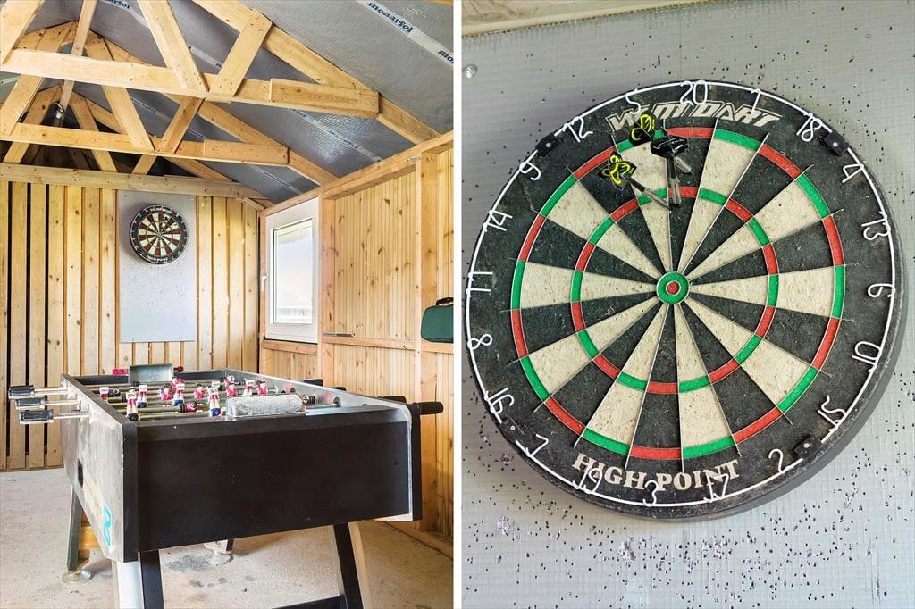 Die Außenbereiche dieses Ferienhauses sind genauso einladend wie das Innere. Die große Terrasse lädt zu entspannten Tagen unter freiem Himmel ein, wo du deinen Morgenkaffee mit Vogelgezwitscher genießen oder laue Sommerabende beim Grillen verbringen kannst. Mit viel Platz rund um das Haus haben Kinder und Haustiere reichlich Gelegenheit zum Spielen, während die Erwachsenen sich mit einem Buch oder einem Glas Wein zurücklehnen können. Hier findest du die perfekte Kombination aus Privatsphäre und offenen, einladenden Umgebungen – alles vor der Kulisse der Natur.