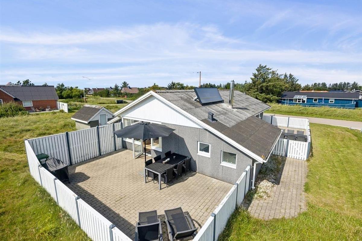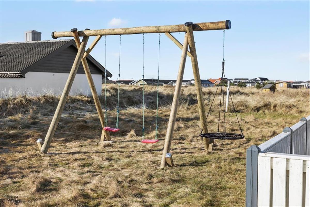 Draußen erwartet dich ein herrliches Grundstück, das sowohl Aktivitäten als auch Entspannung ermöglicht. Die sonnige Terrasse ist der perfekte Ort, um den Morgenkaffee zu genießen, an lauen Abenden zu grillen oder einfach die Stunden verstreichen zu lassen. Auf dem Rasen können die Kinder frei spielen, während der Hund das Grün erkundet. Hier kannst du Erinnerungen schaffen und tief durchatmen in der frischen Meeresluft Vorupørs.