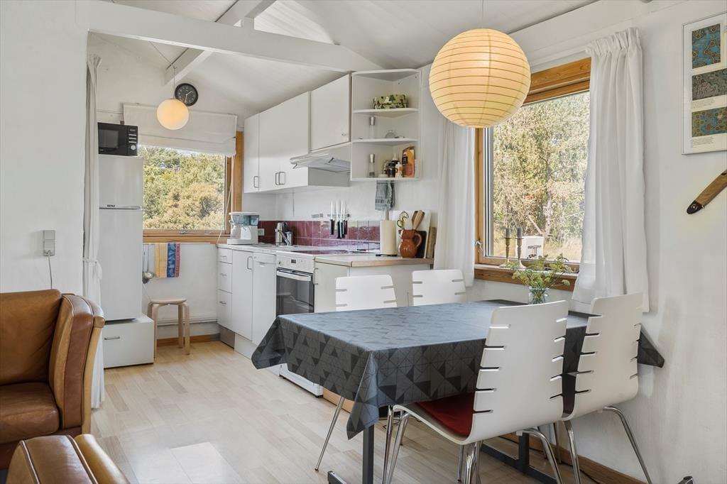 Das Ferienhaus liegt in der charmanten Küstenstadt Nr. Vorupør, wo die Natur und das Meer die Hauptrolle spielen. Ein kurzer Spaziergang bringt euch zu den tosenden Wellen der Nordsee, wo ihr schwimmen, am Strand entlang spazieren oder einfach den Anblick des offenen Meeres genießen könnt. Das gemütliche Stadtzentrum lädt mit kleinen Geschäften, Cafés und Restaurants dazu ein, die lokale Atmosphäre zu erleben. Für Abenteurer liegt der Nationalpark Thy in der Nähe und wartet darauf, mit Wanderschuhen oder dem Fahrrad entdeckt zu werden.